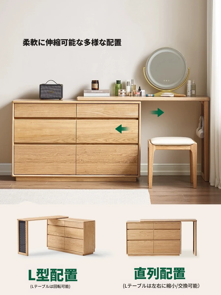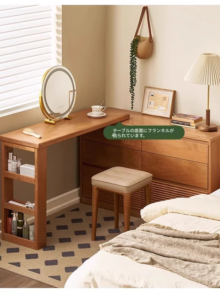 オーガニックソリッドウッド化粧台&ドレッサー一体型 オーク製書 desk 伸縮L型コーナー化粧台 洗練されたデザインでお部屋を美しく演出し、心地よいメイクタイムを実現!