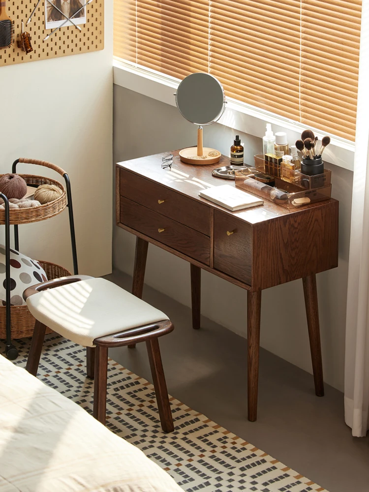 オリジナルエレメント 全木製ドレッサー 北欧風オーク材 小型化粧台 ナチュラルウッドスタイル 寝室の窓辺を彩るおしゃれな化粧台