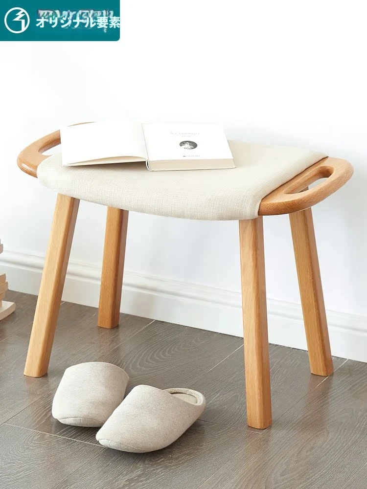 オリジナルエレメンツ北欧スタイルの実木ドレッシングスツール|小型住宅に最適な低くてかわいいオーク製シューズベンチ|シンプルで快適なソフトパッキング化粧スツール!