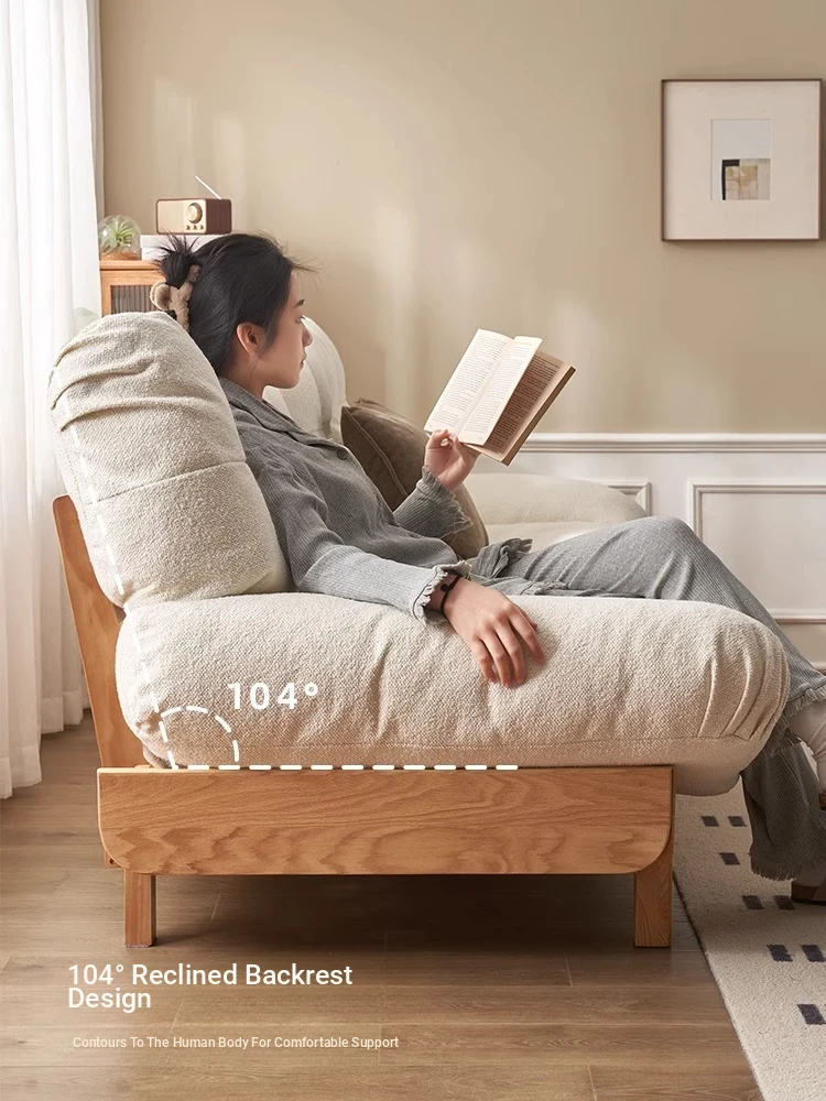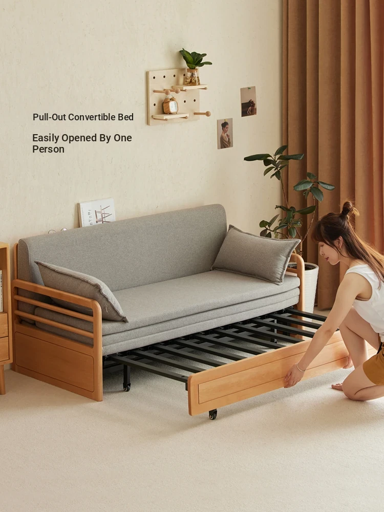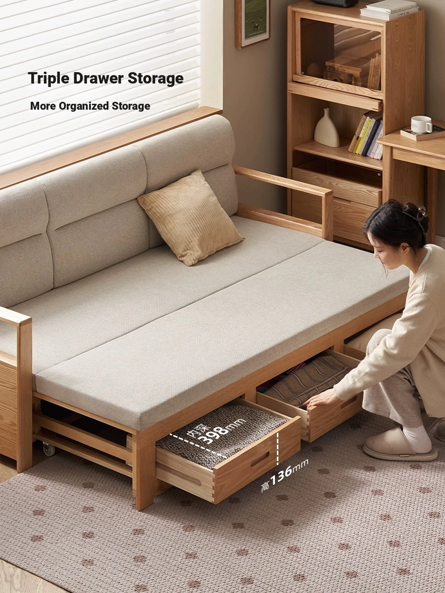 Original Element Solid Wood Sofa Bed - Foldable Dual-Use Fabric Sofa for Modern Minimalist Small Spaces, Oak Expandable Bed - Stylish and Space-Saving Solution for Your Home!