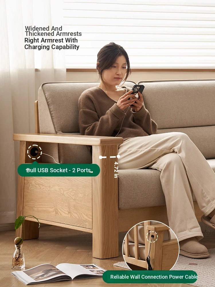 "Modern Minimalist Solid Wood Sofa Set – Versatile Nordic Oak Living Room Furniture for Small to Large Spaces, Perfect for Any Home Combination"