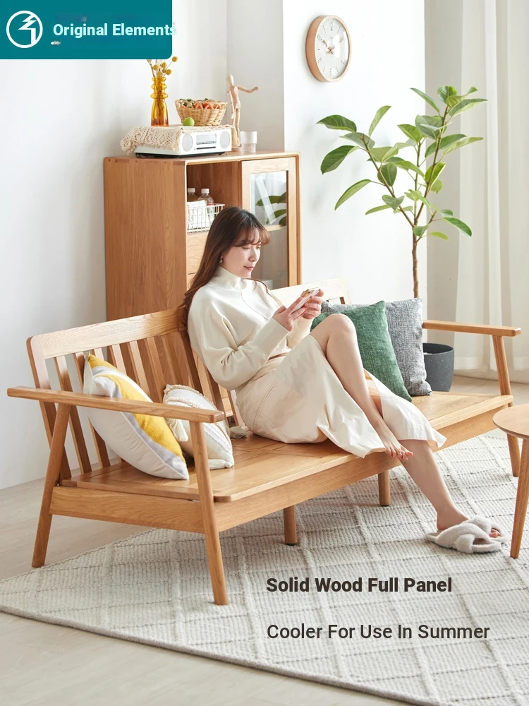 Nordic Solid Wood Sofa - Versatile Winter & Summer Use, Stylish and Compact Design for Small Living Rooms, Featuring Oak Frame and Comfortable Fabric Upholstery, Perfect for Home Use, Three-Seat Sofa.