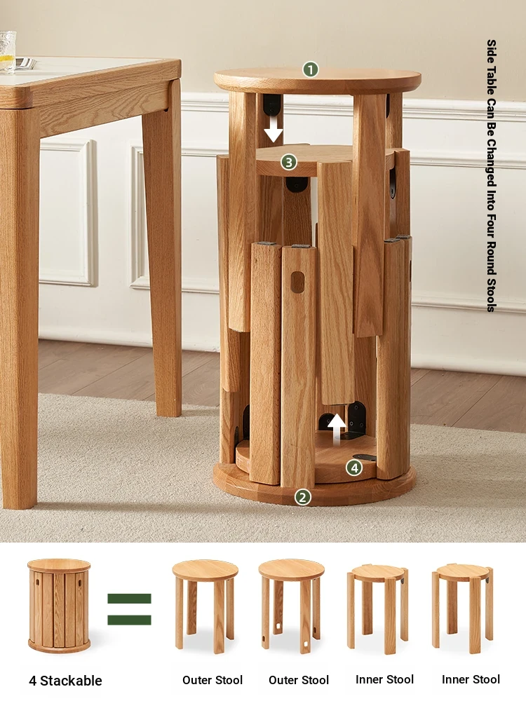 Original Elements Solid Wood Stacking Stool - Creative Round Multi-Use Stool for Home, Trendy Coffee Table Seating, Space-Saving Oak Stool for Living Room