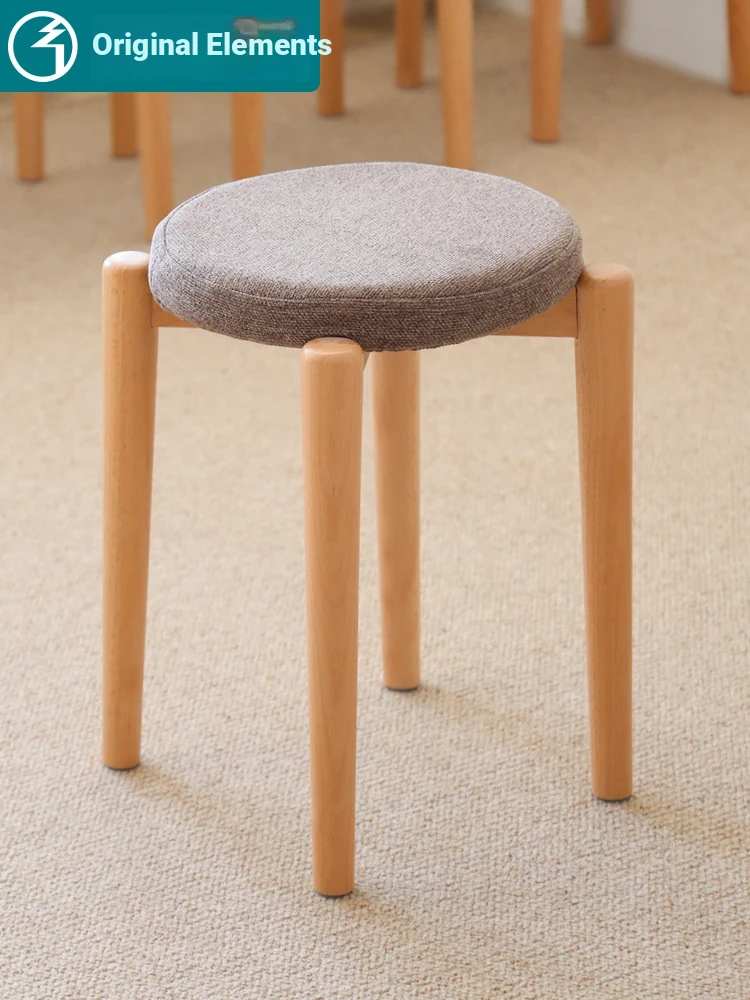 Elegant Solid Wood Stool - Compact Round Stacking Stool for Small Spaces, Made from Nordic Beech, Perfect for Living Rooms and Dressing Tables, Versatile Makeup Bench for Home Use