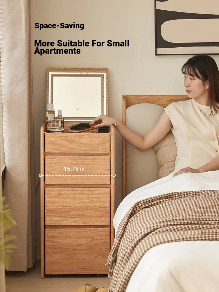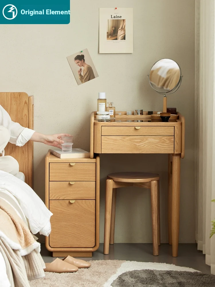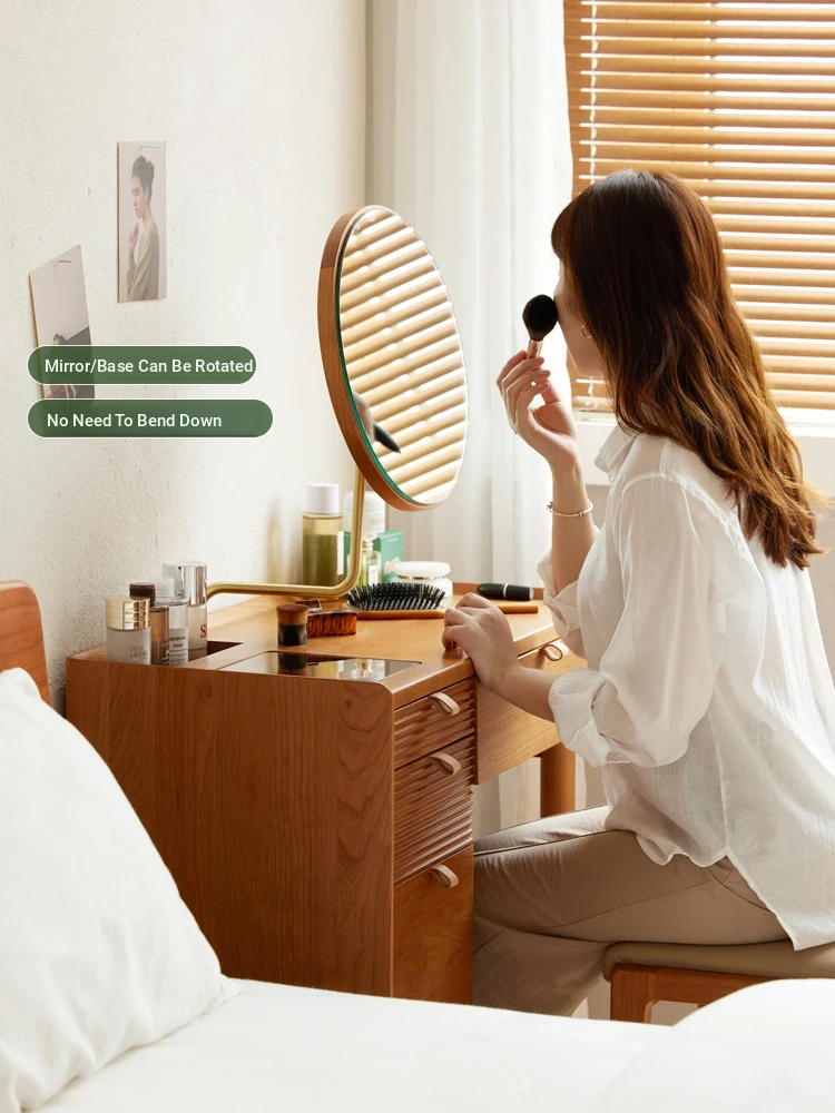 "Original Essence Solid Wood Vanity Table – Modern Minimalist Design for Small Bedrooms, Featuring an All-in-One Makeup Desk with Mirror and Drawer Storage"
