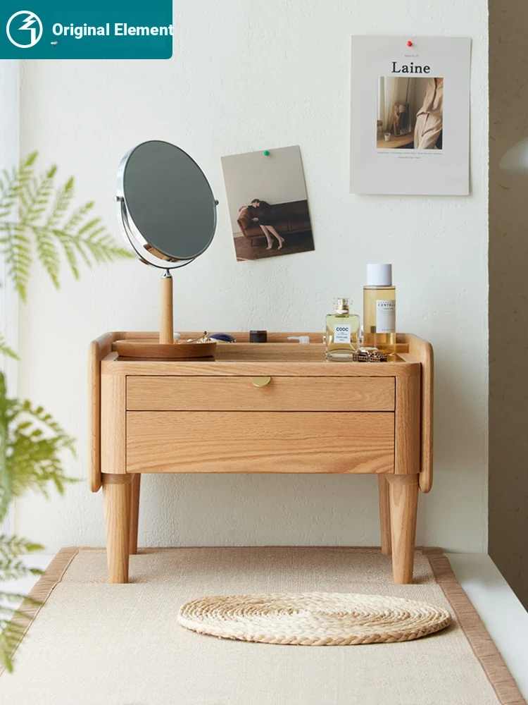 "Nordic Style Solid Wood Vanity Table – Compact Oak Dressing Desk for Small Spaces, Perfect for Your Bedroom Window Nook – Rustic Charm & Natural Elegance"