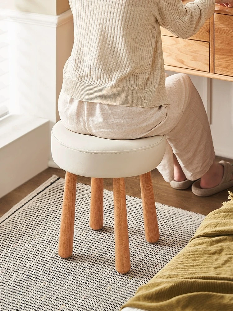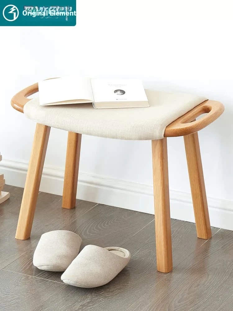 Natural Solid Wood Vanity Stool – Nordic Style Low Bench for Small Spaces, Oak Makeup Stool with Soft Padding for Home Use, Simple and Elegant Shoe Changing Stool