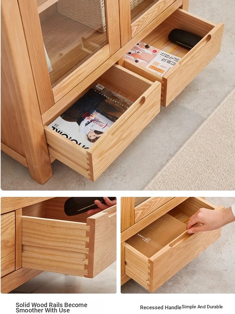 "Nordic-Japanese Style Solid Wood TV Cabinet – Perfect for Small Living Rooms, Featuring Oak Storage Solutions for Your Entertainment Needs"