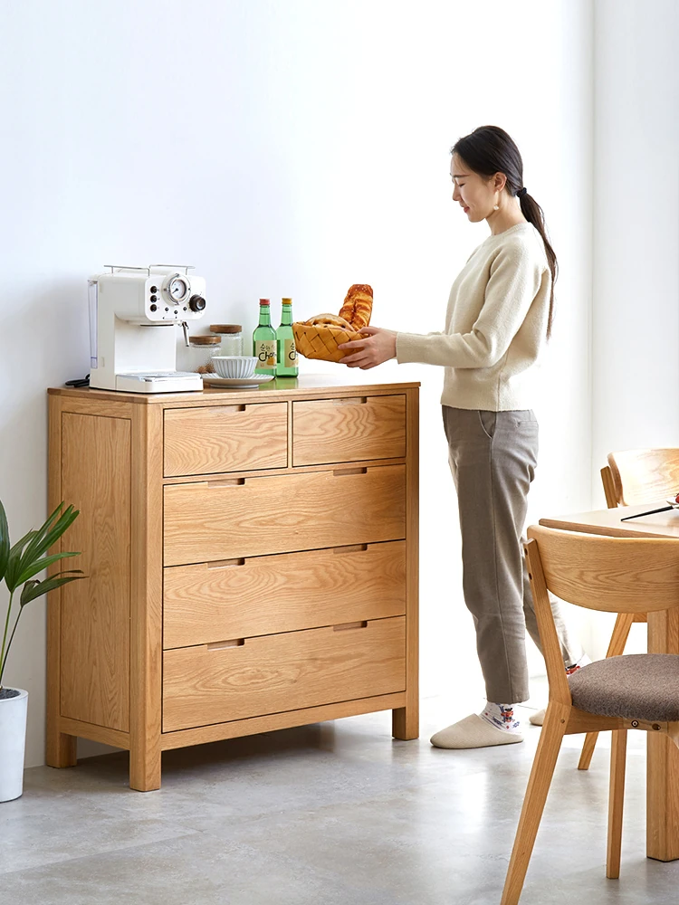 "Scandinavian Oak Solid Wood Dresser - Modern Minimalist Wall-Mounted Storage Cabinet for Bedroom Organization"