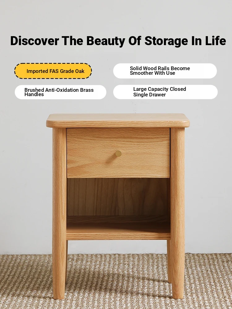 Nordic Solid Wood Nightstand for Small Bedrooms - Oak Bedside Cabinet with Single Drawer, Perfect for Home Storage & Organization