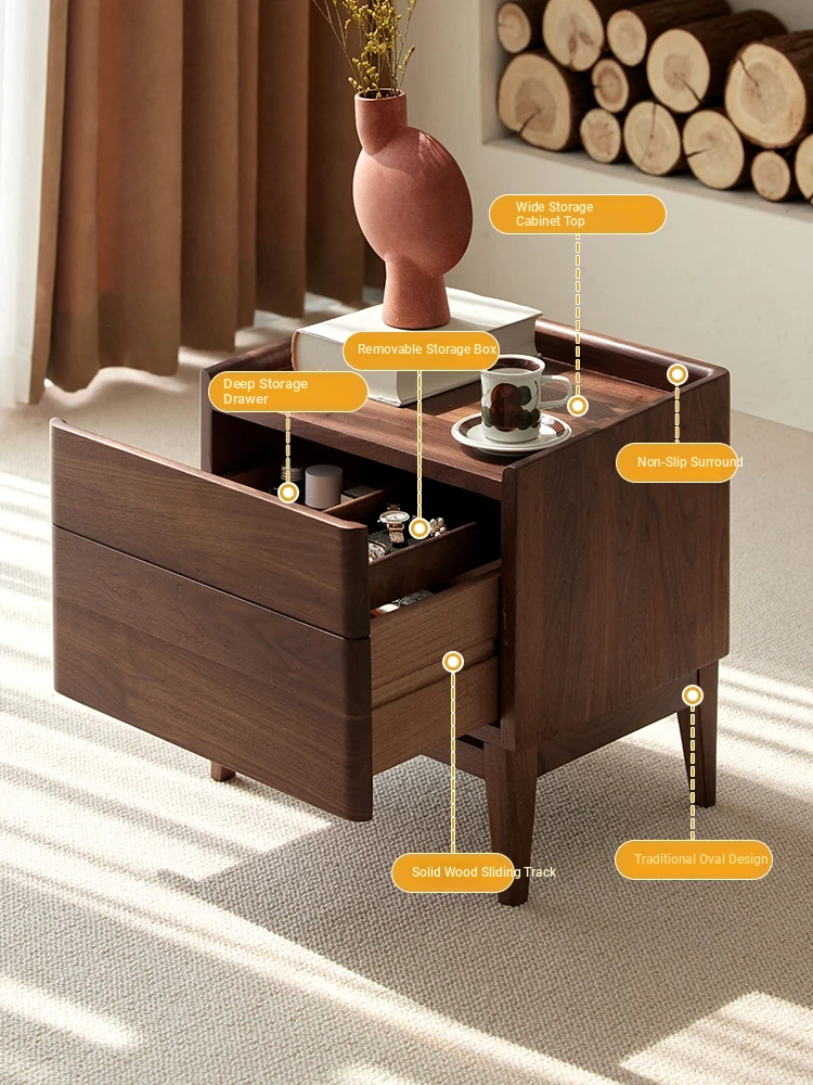 "Minimalist Solid Wood Nightstand - Scandinavian Style Bedroom Storage Cabinet in North American Black Walnut - Perfect for Your Home Décor"