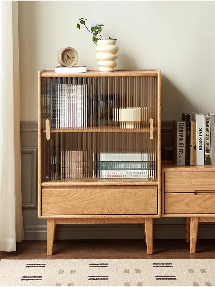 **Original Element Solid Wood Bookshelf - Scandinavian Oak Glass Door Bookcase, Minimalist Display Cabinet for Home Office**