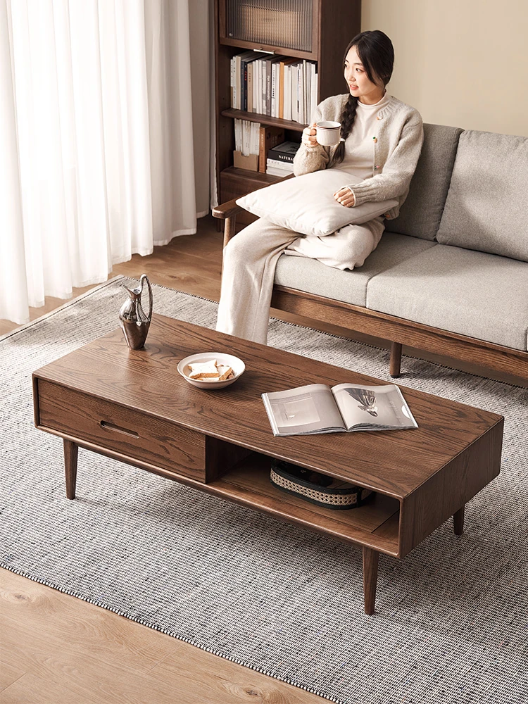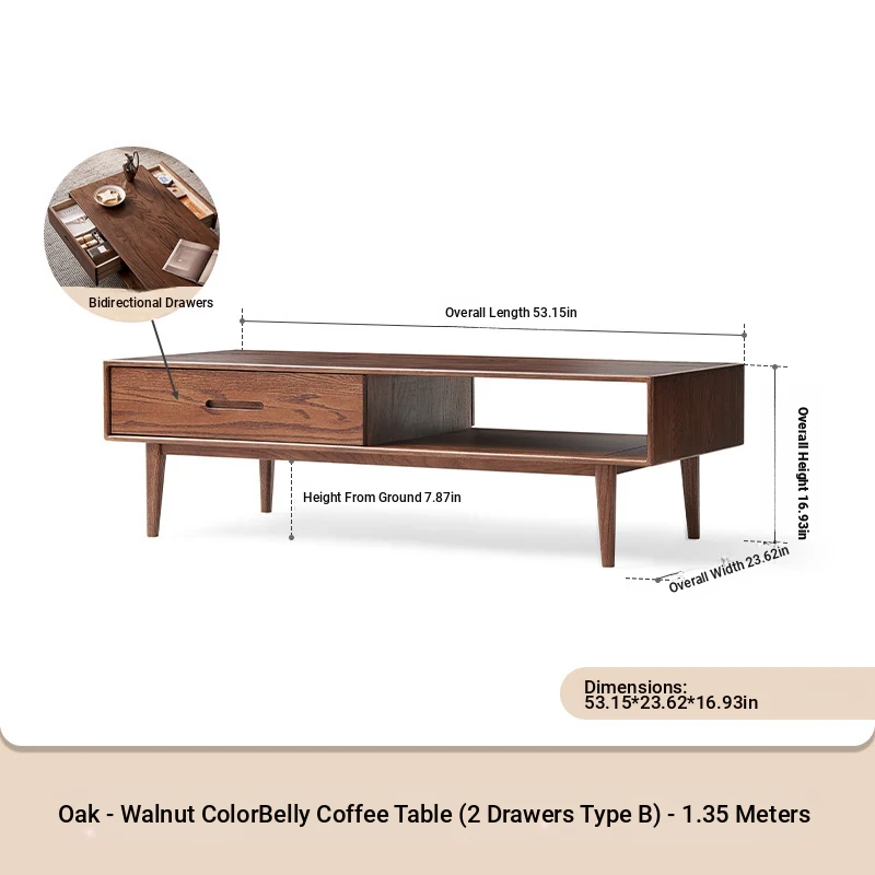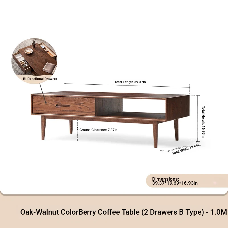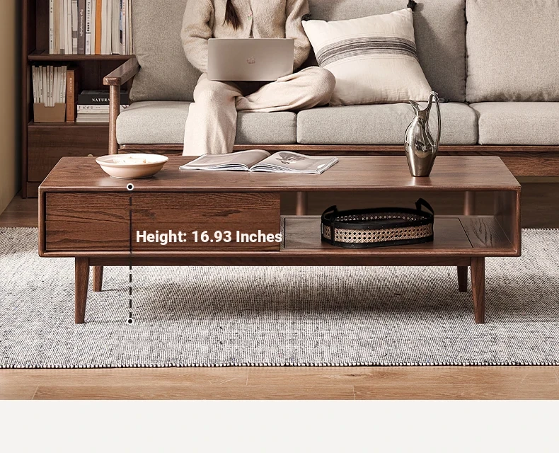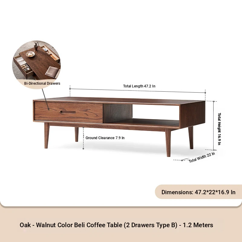 Authentic Solid Wood Coffee Table for Small Living Rooms - Oak Tea Desk in Black Walnut Finish, Perfect for Home Use and Stylish Tea Service