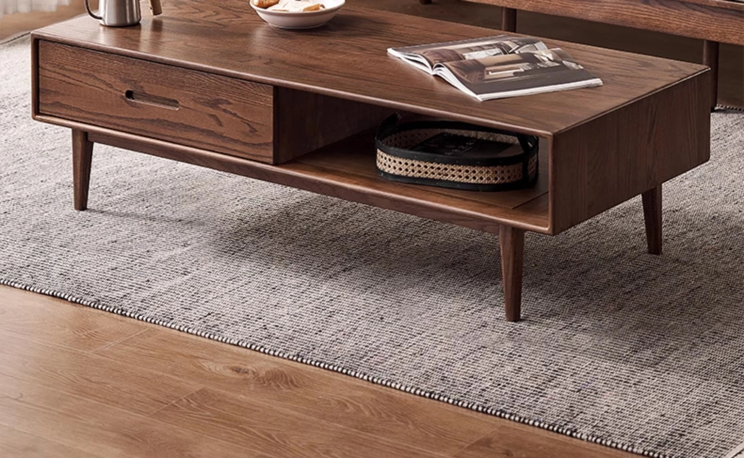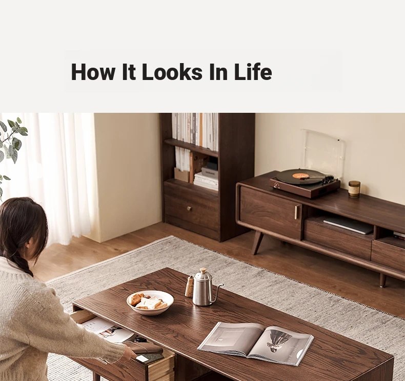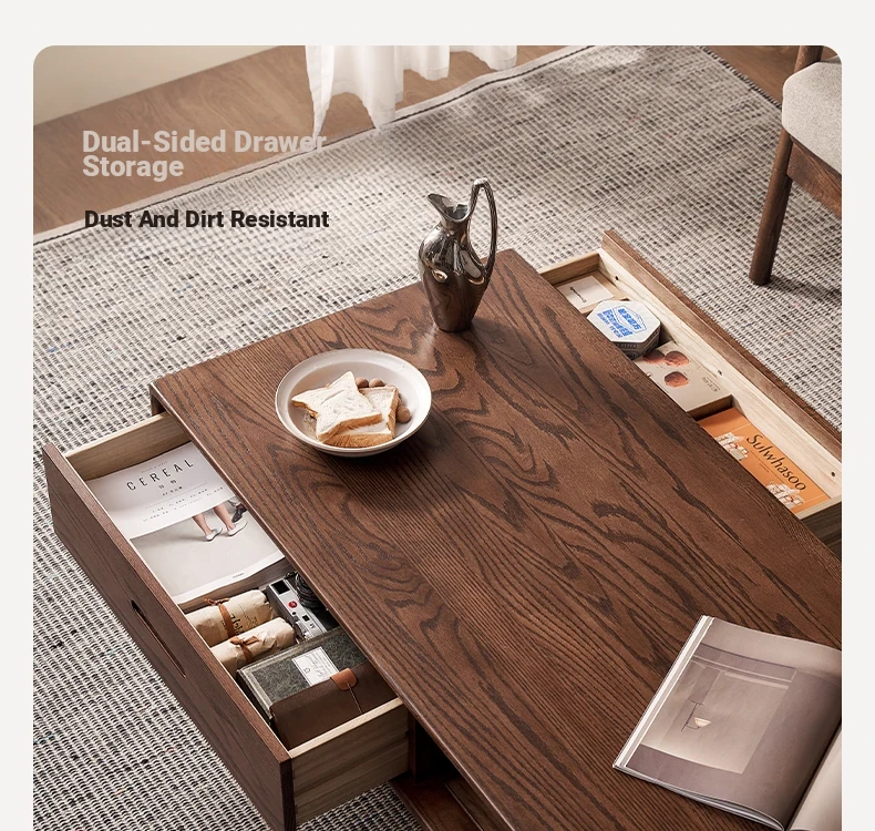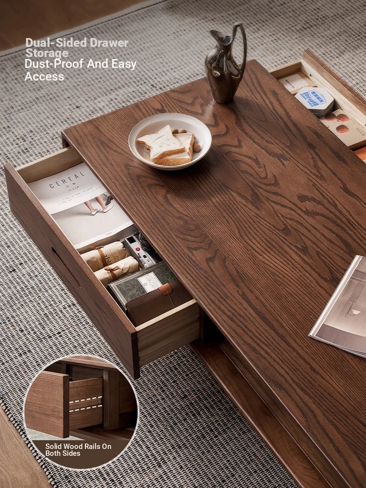 Authentic Solid Wood Coffee Table for Small Living Rooms - Oak Tea Desk in Black Walnut Finish, Perfect for Home Use and Stylish Tea Service