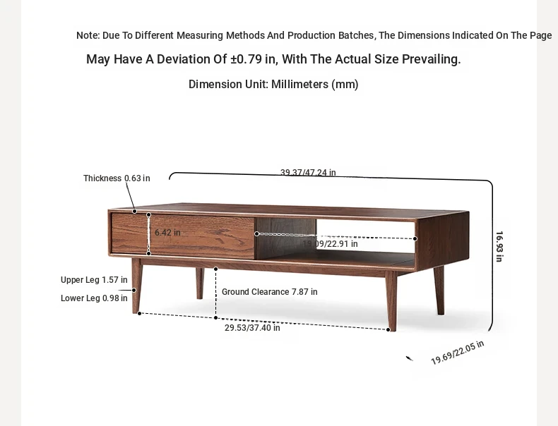 Black walnut color -39.37 ins Tea Table 2 Smoke 1 grid(39.37in * 19.69in * 16.93in)