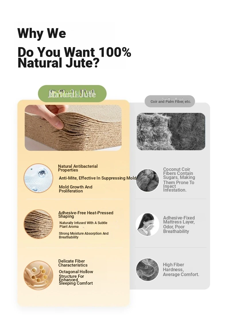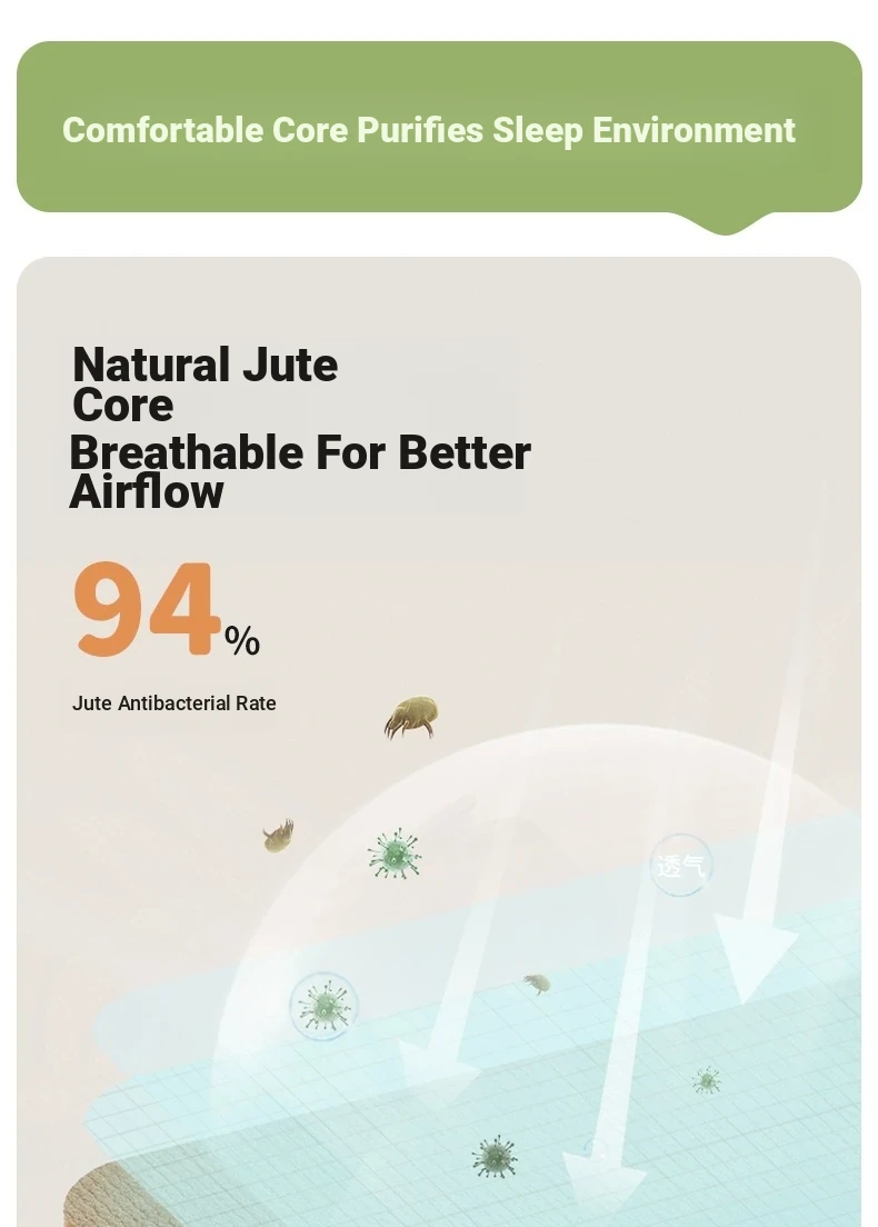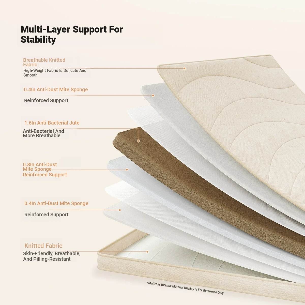 Eco-Friendly Raw Element Children's Jute Mattress - Antimicrobial, Dust Mite Resistant, Firm Support for Teens, Breathable Design for Spine Protection - Perfect for Healthy Sleep