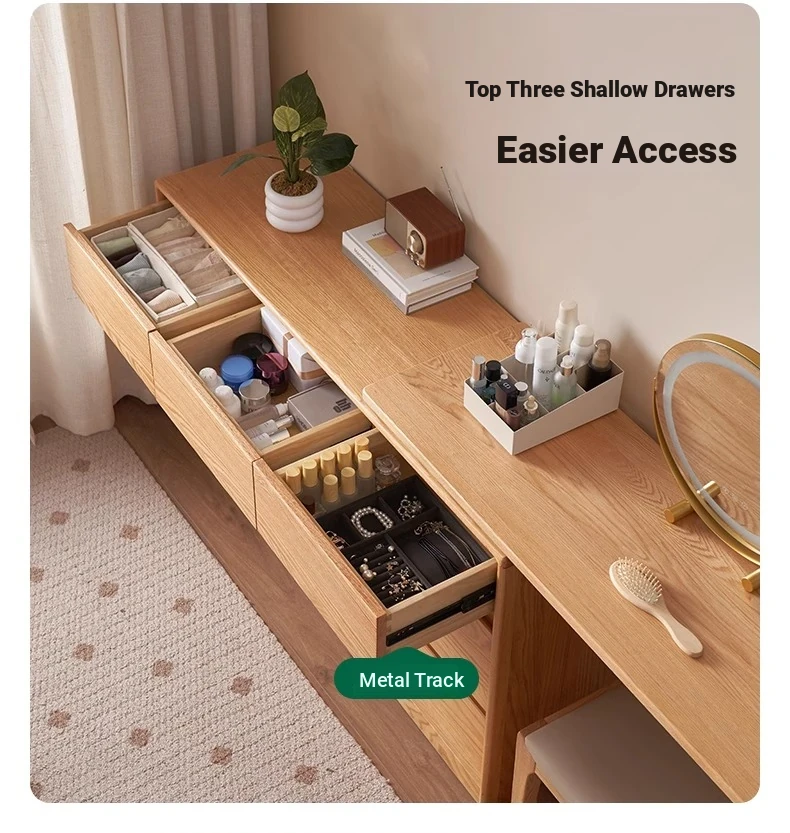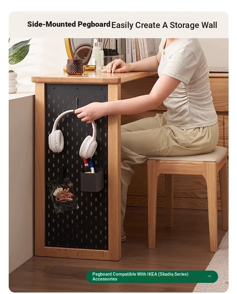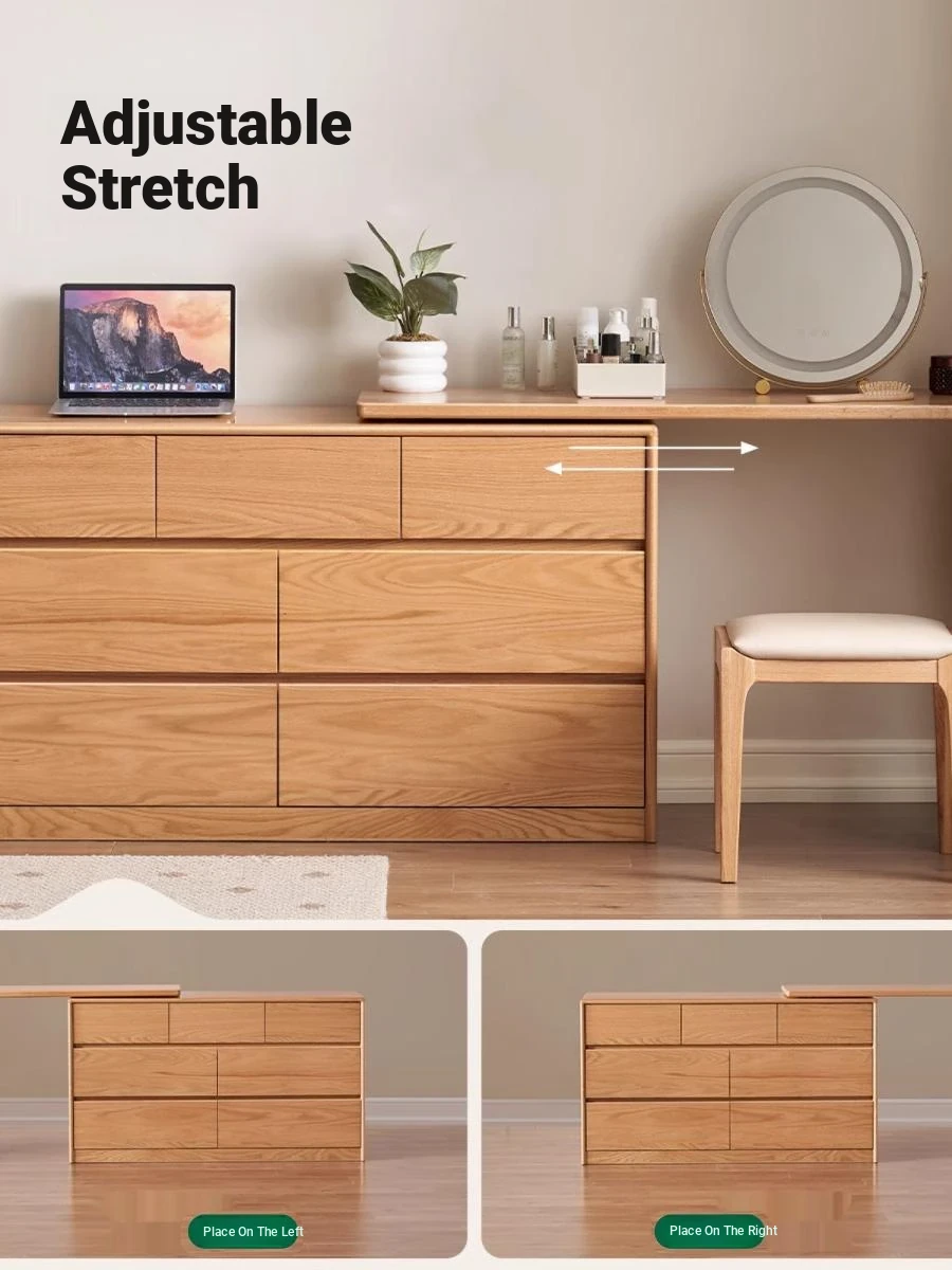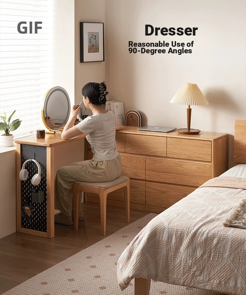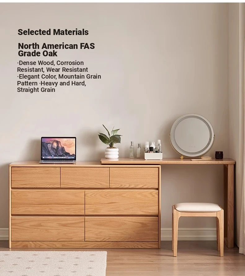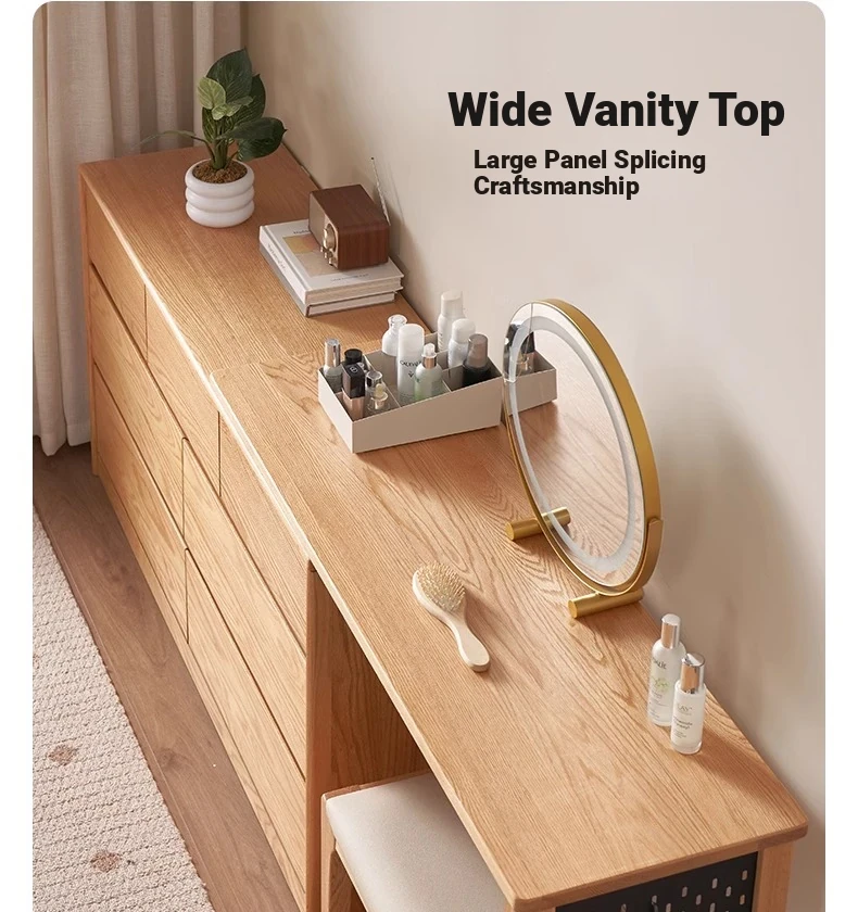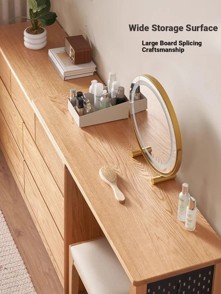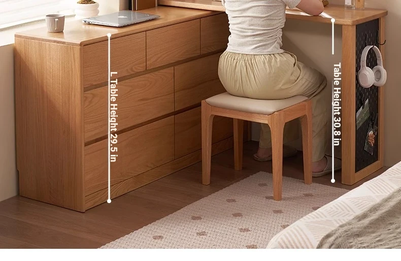 "Elegant All-Wood Dressing Table with Integrated Dresser: Versatile Oak Expandable L-Shaped Corner Vanity Desk for a Chic Makeover Experience"