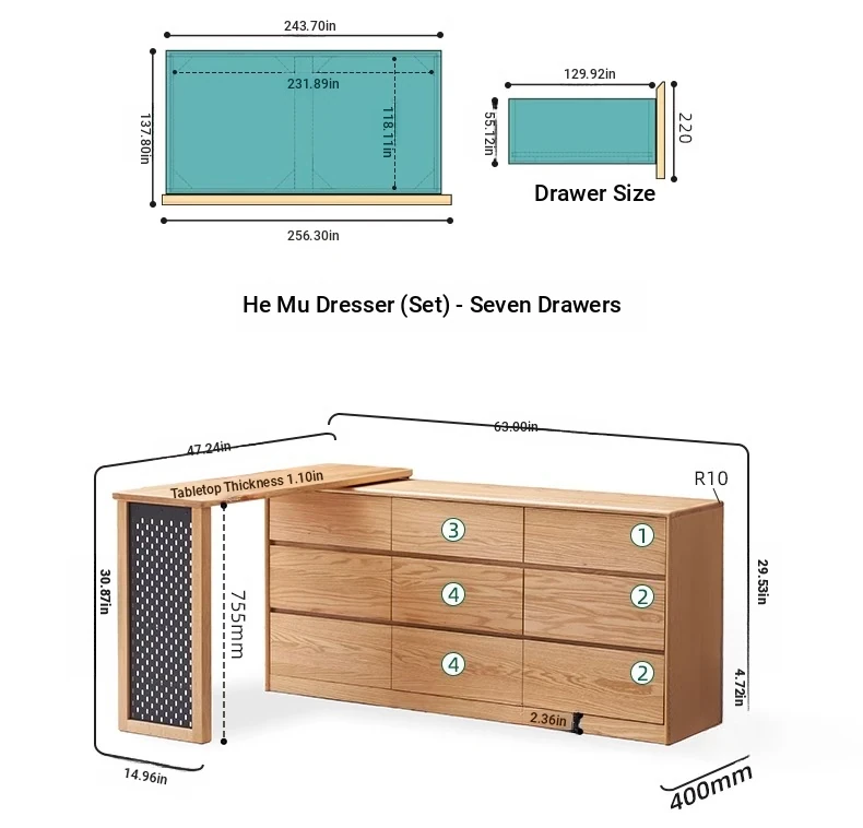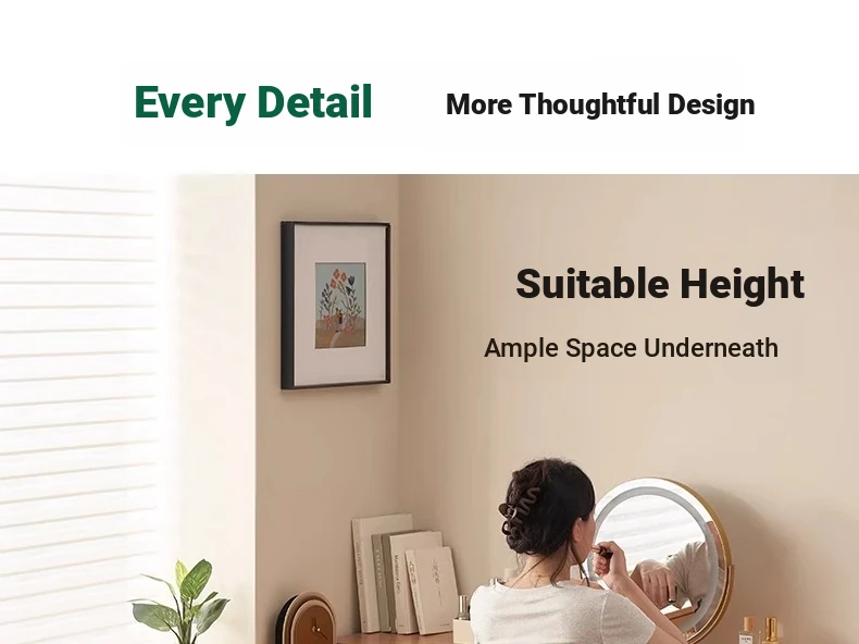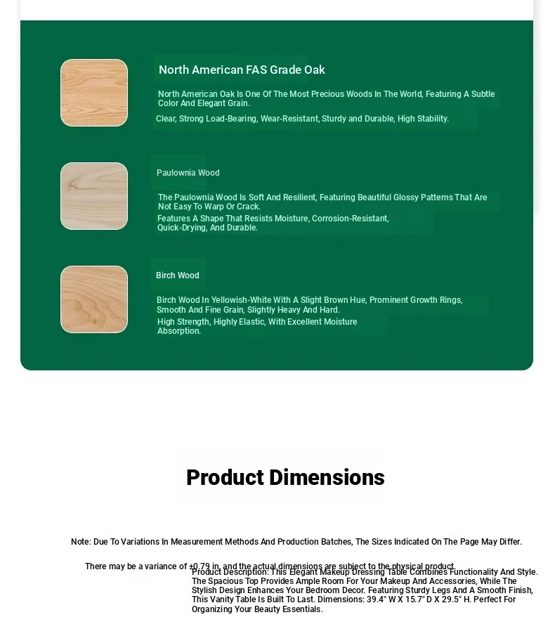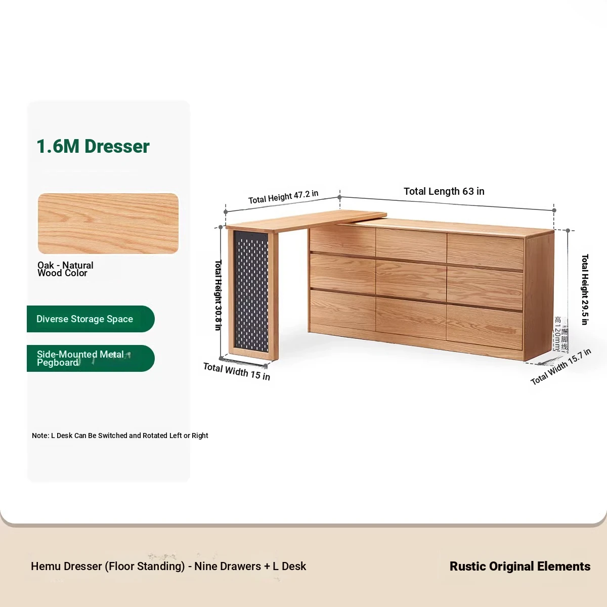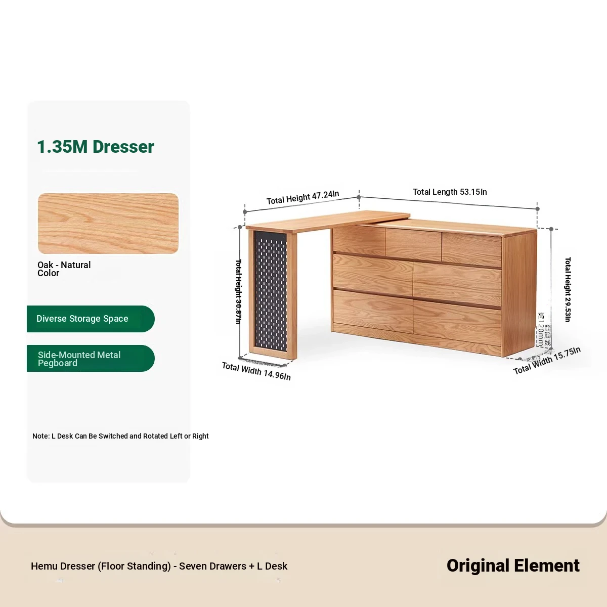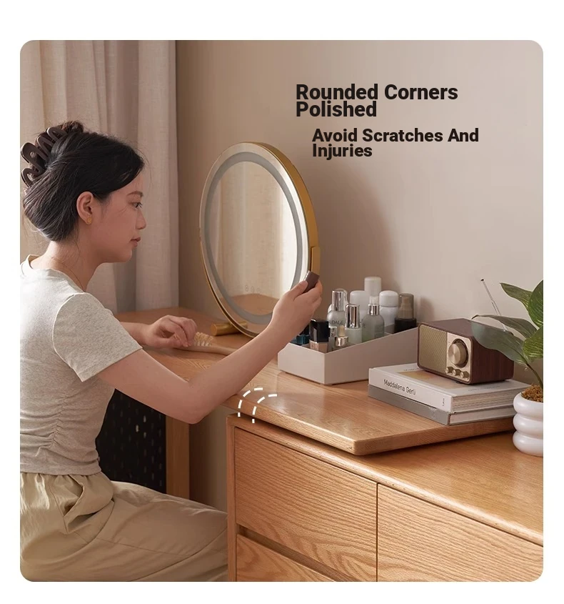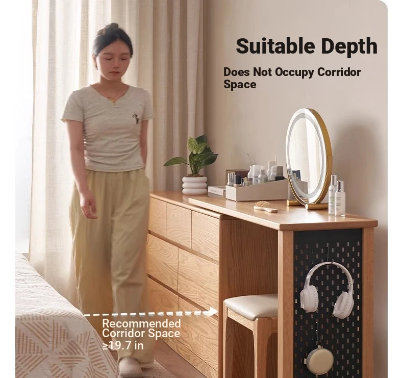 "Elegant All-Wood Dressing Table with Integrated Dresser: Versatile Oak Expandable L-Shaped Corner Vanity Desk for a Chic Makeover Experience"