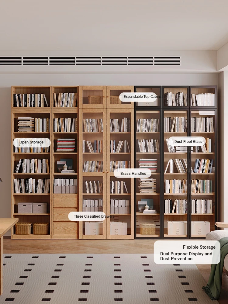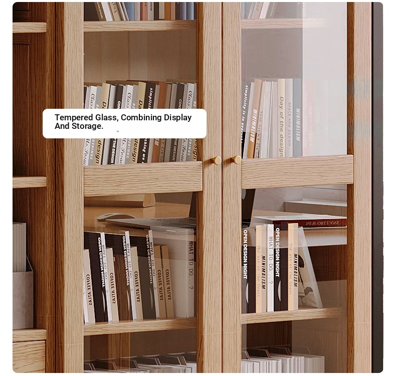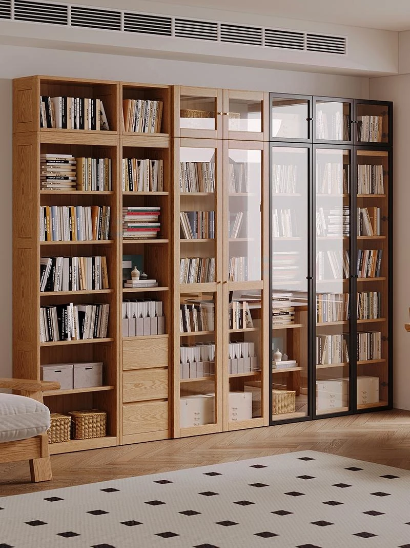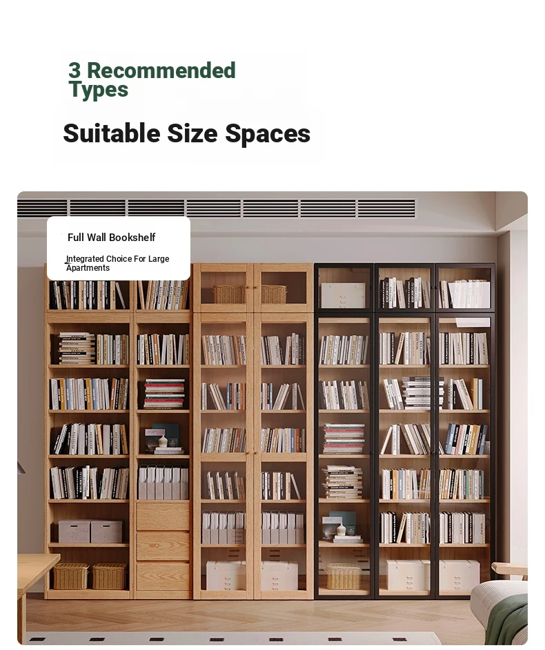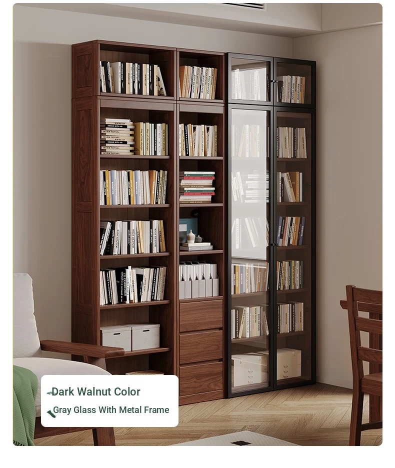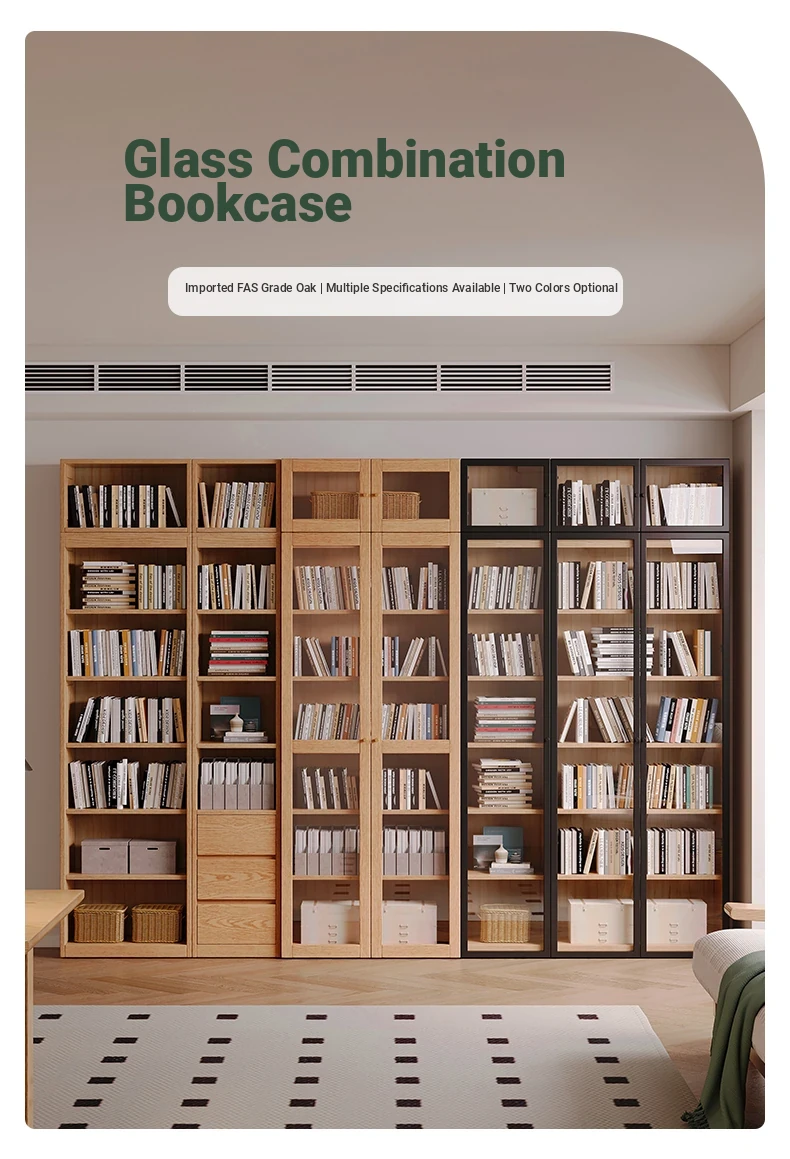 Elegant Full Solid Wood Bookcase with Glass Doors - Wall-Mounted Storage Solution with Floor-to-Ceiling Design for Maximum Style and Functionality