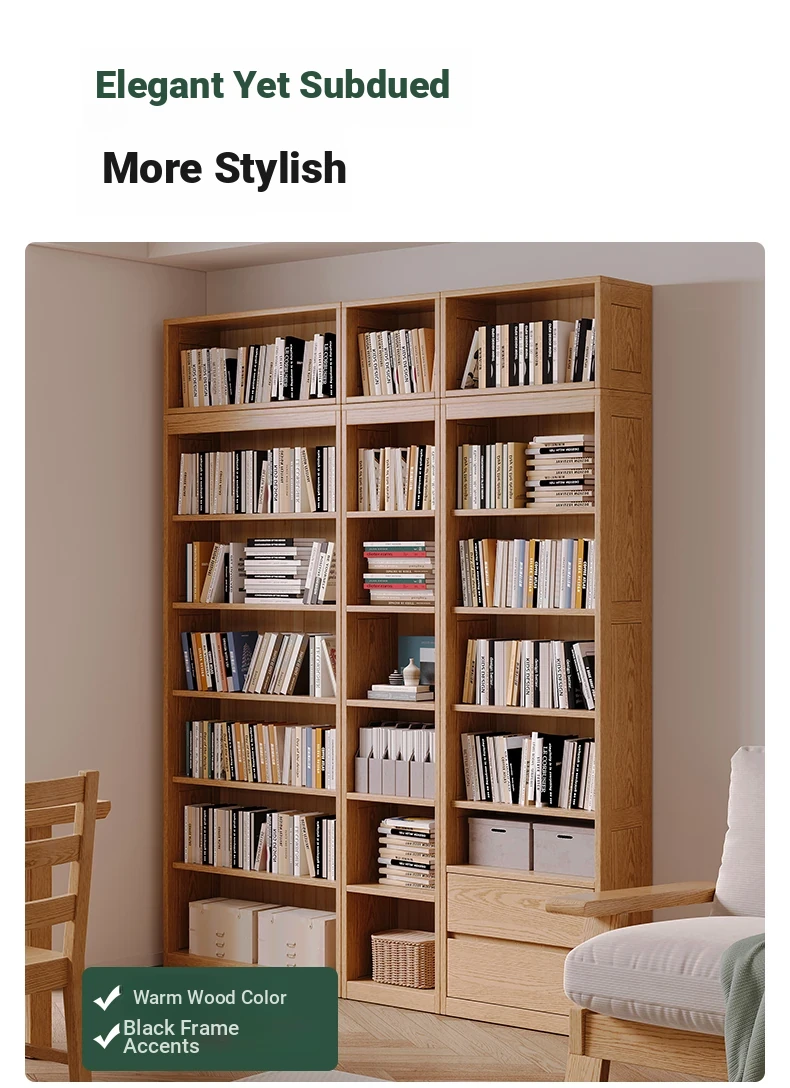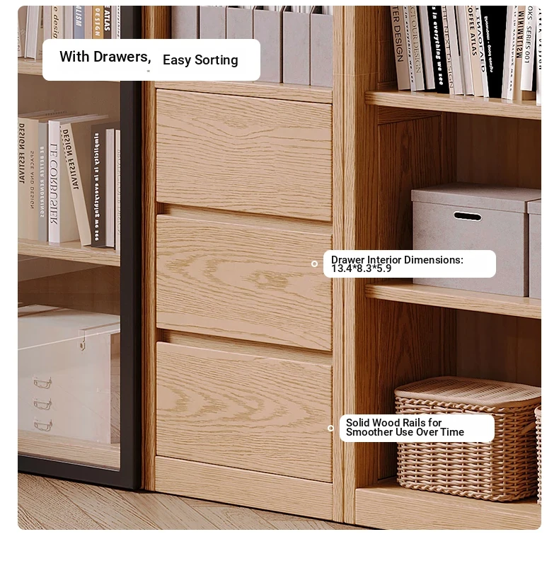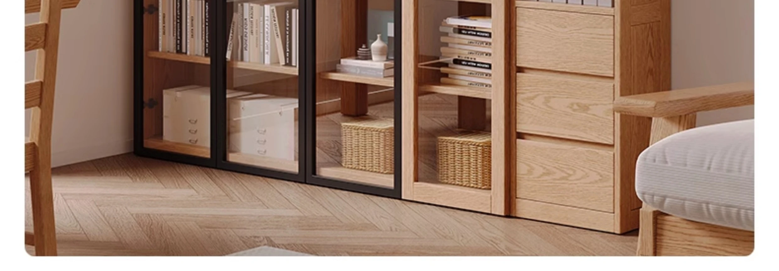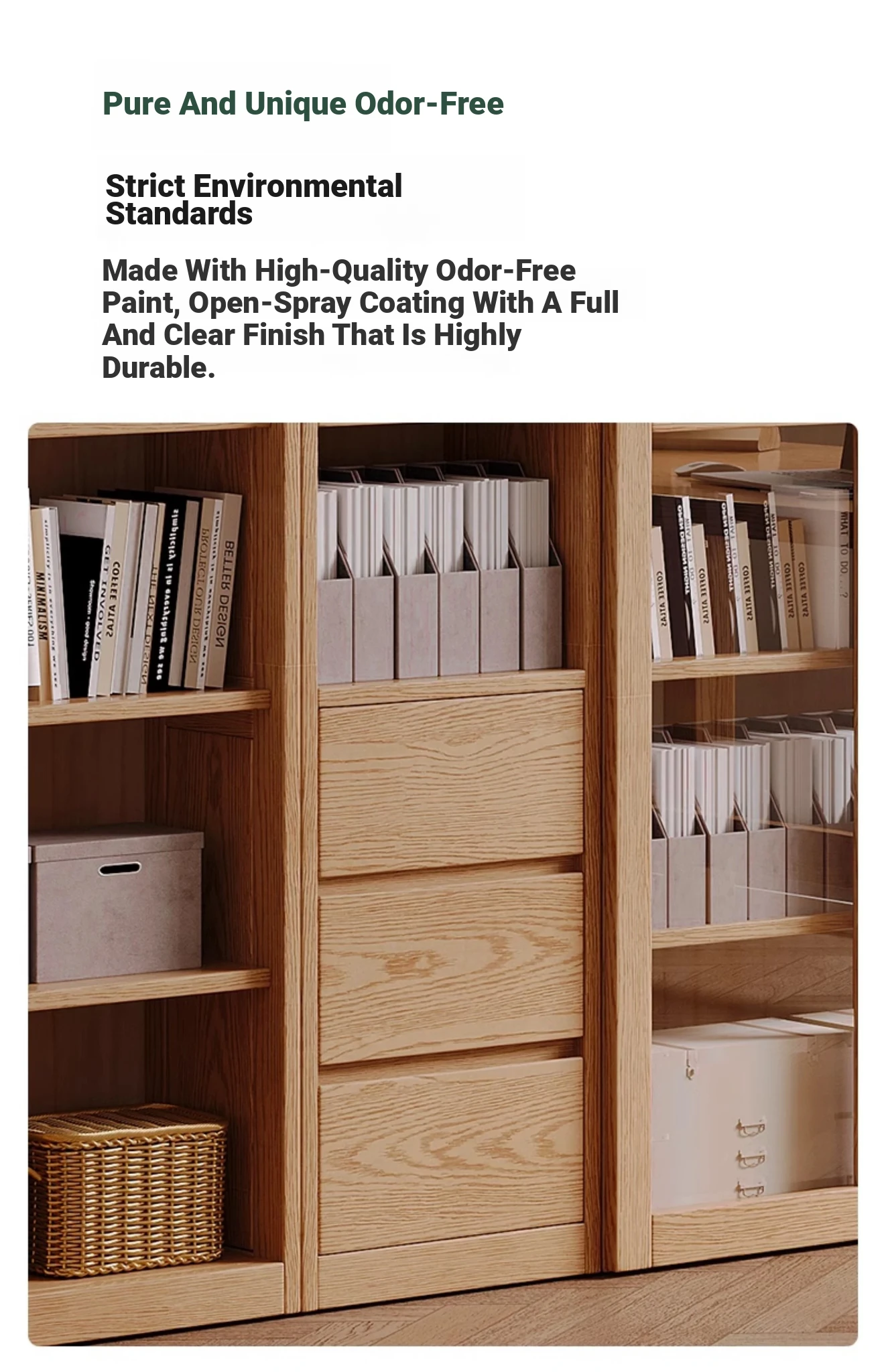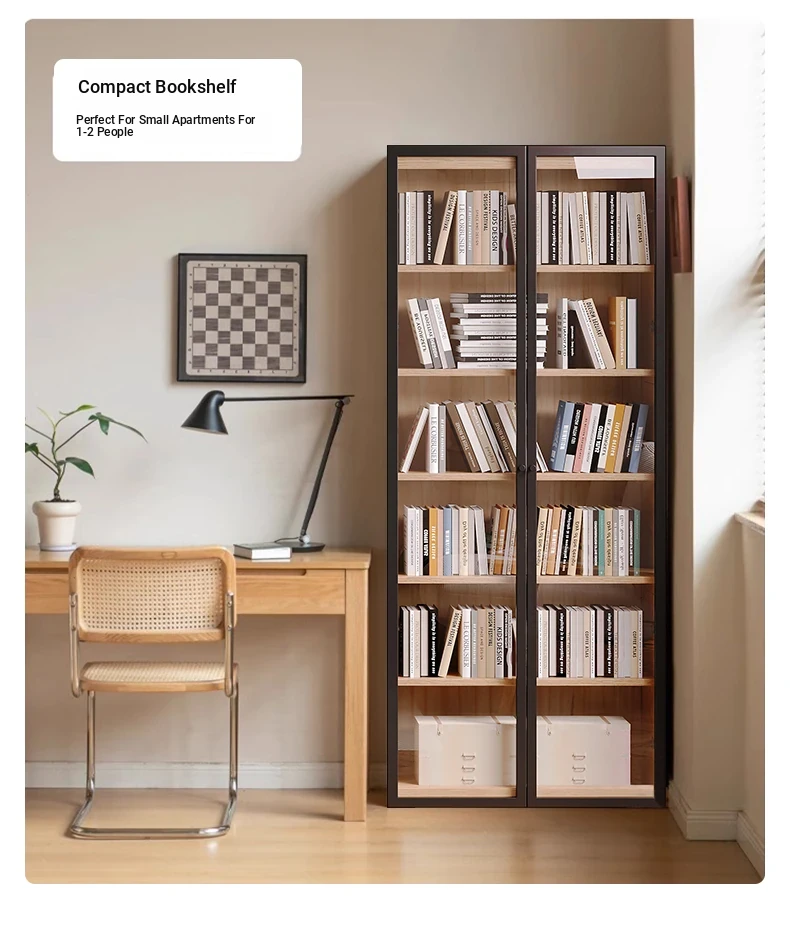 Elegant Full Solid Wood Bookcase with Glass Doors - Wall-Mounted Storage Solution with Floor-to-Ceiling Design for Maximum Style and Functionality