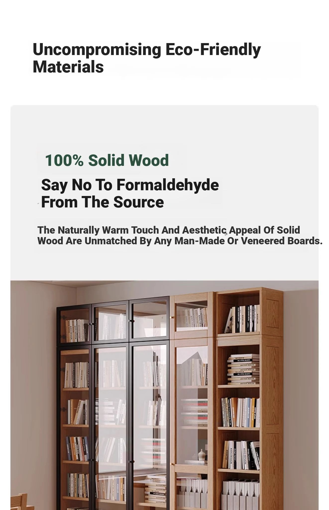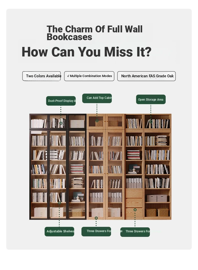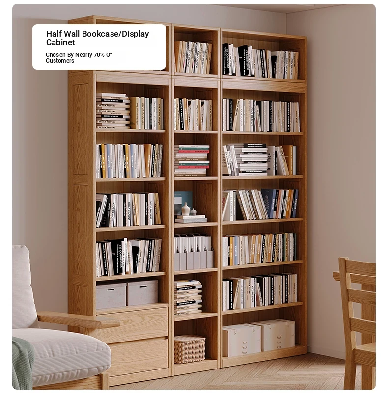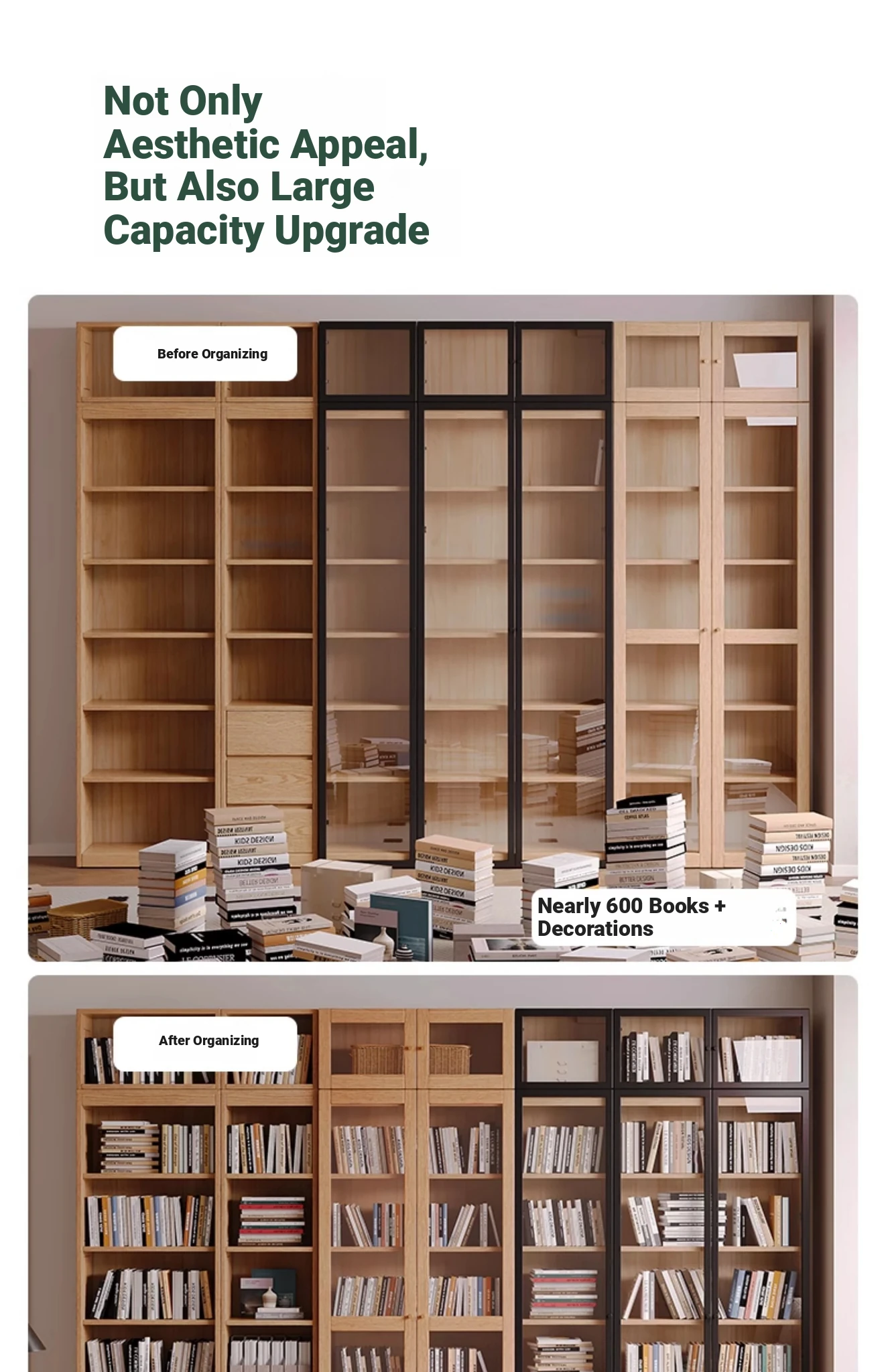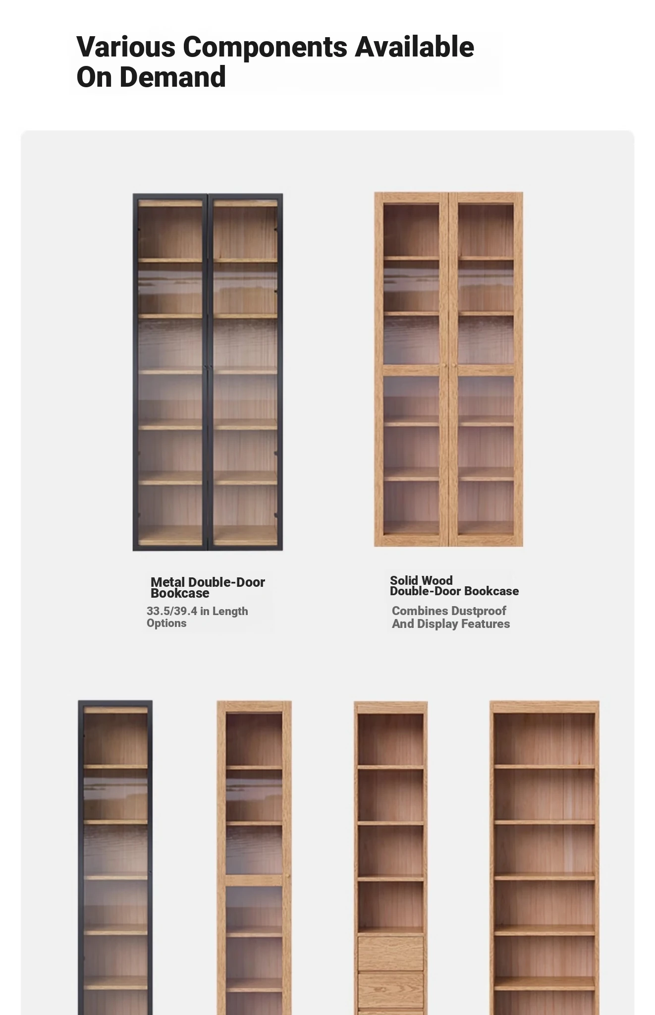 Elegant Full Solid Wood Bookcase with Glass Doors - Wall-Mounted Storage Solution with Floor-to-Ceiling Design for Maximum Style and Functionality