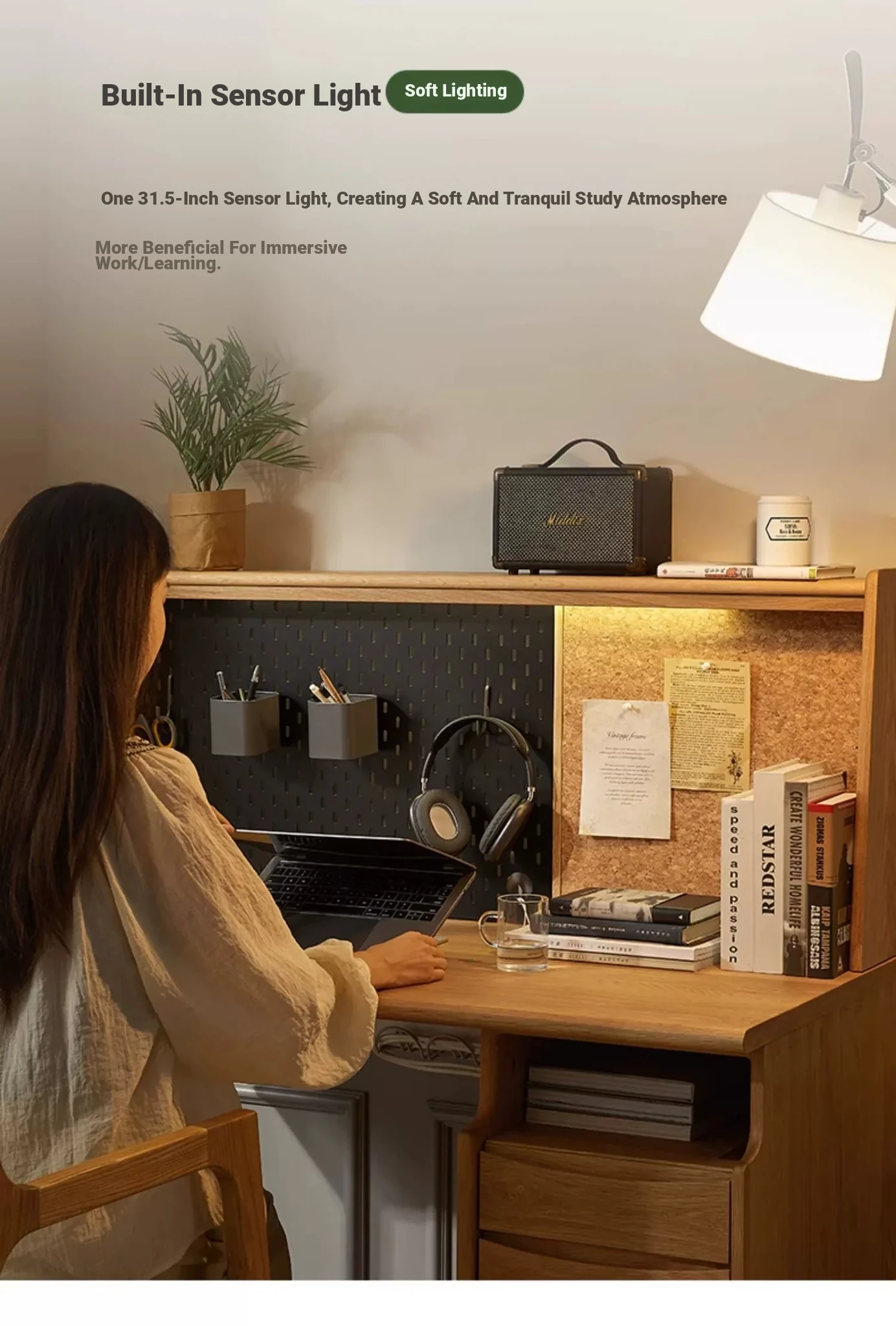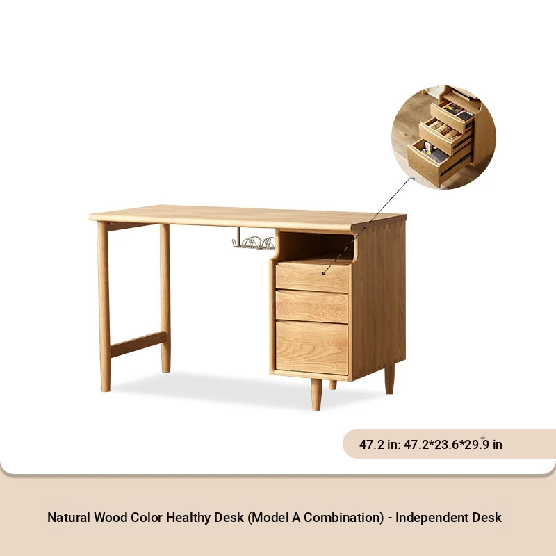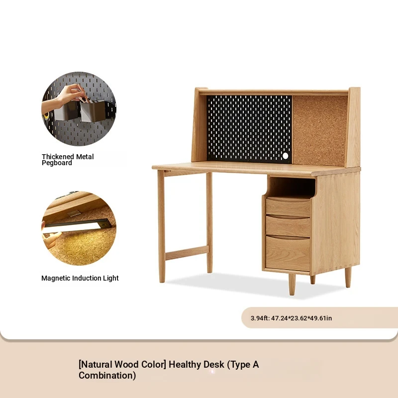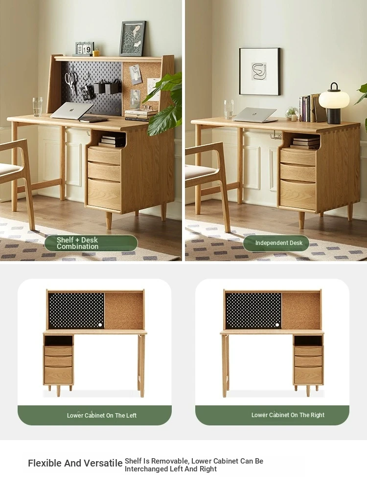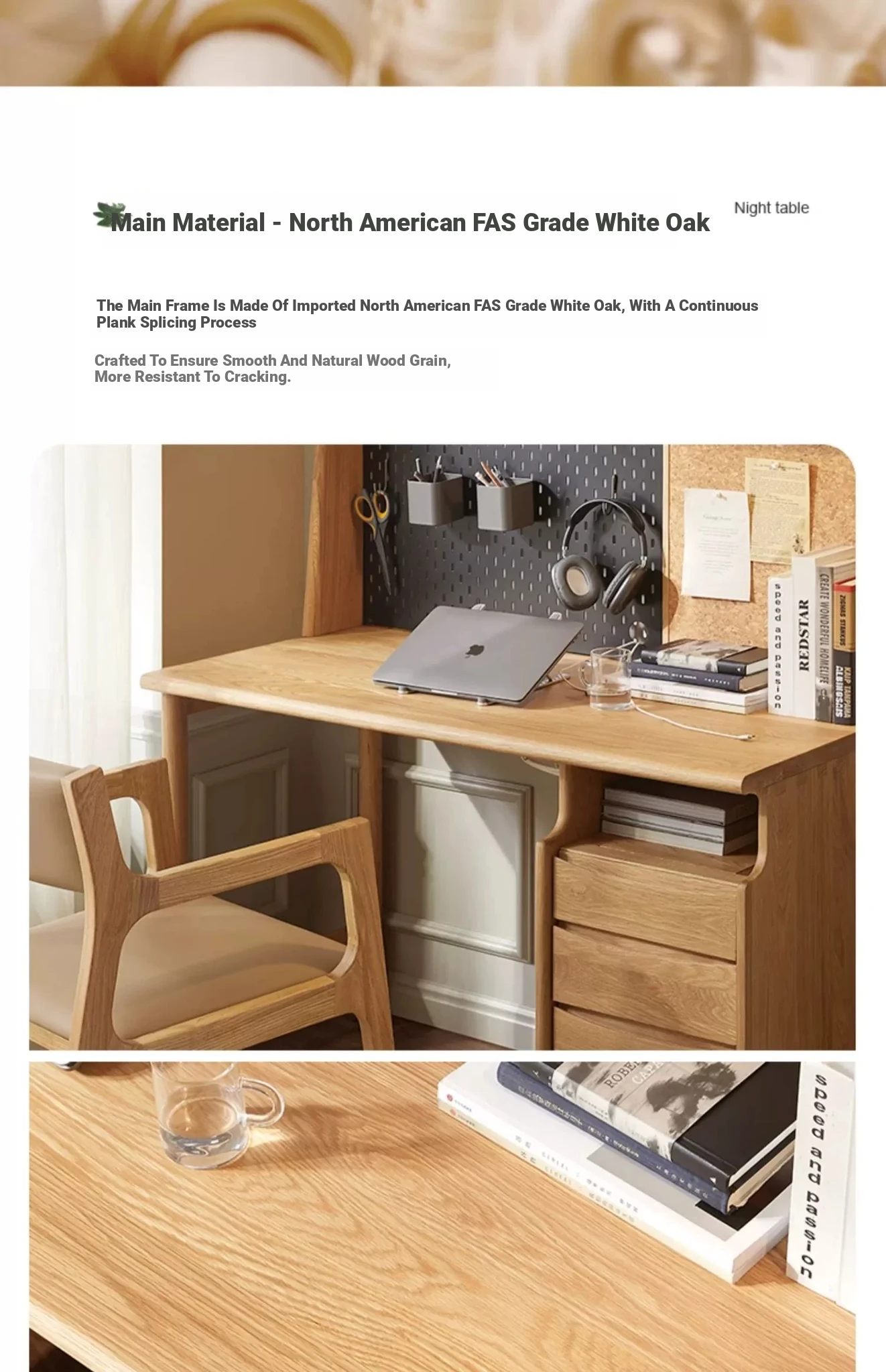 Elegant Solid Wood Desk and Bookshelf Combo - White Oak Office Study Table for Home and Work, Ideal for Both Learning and Computer Use