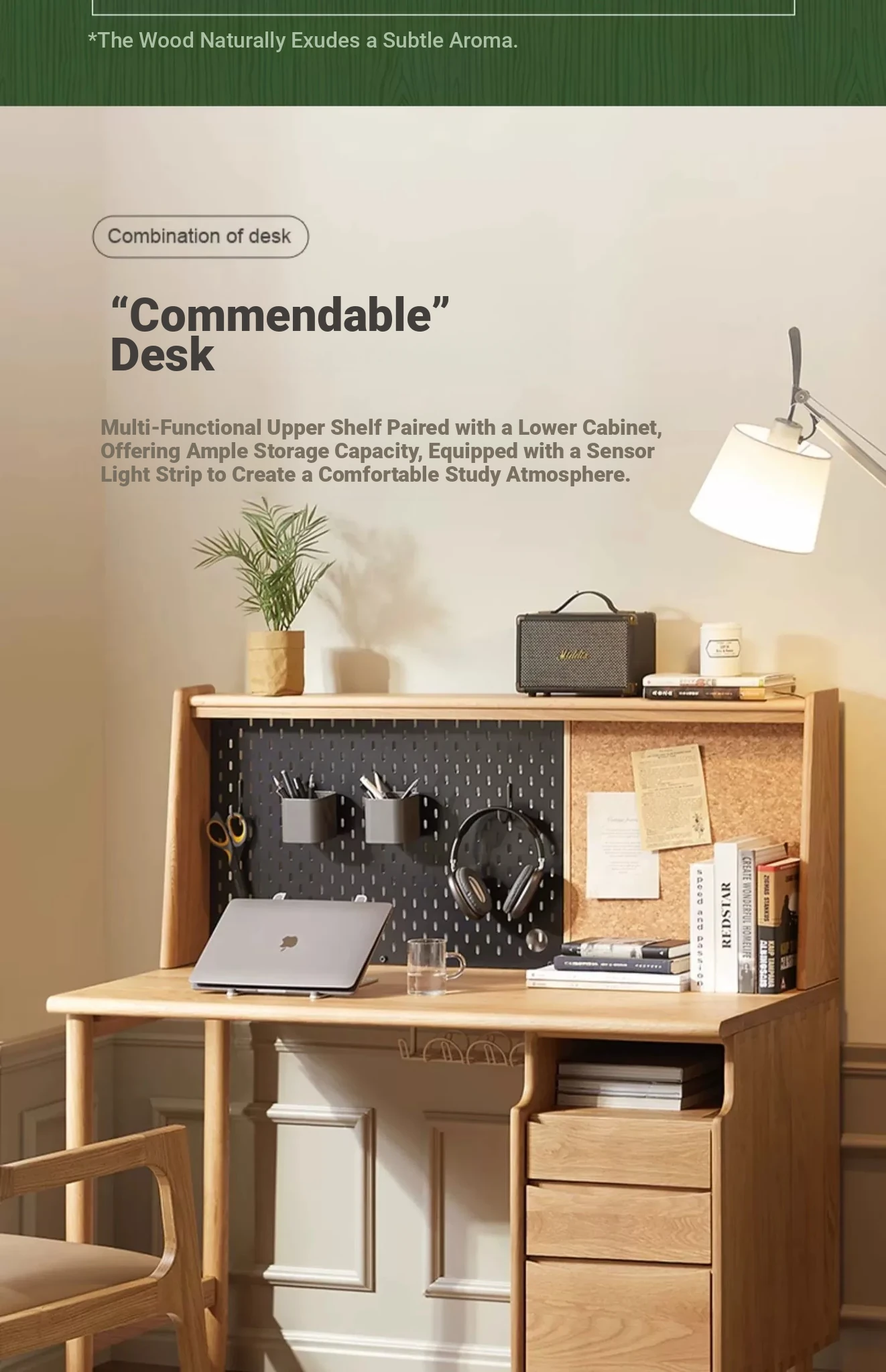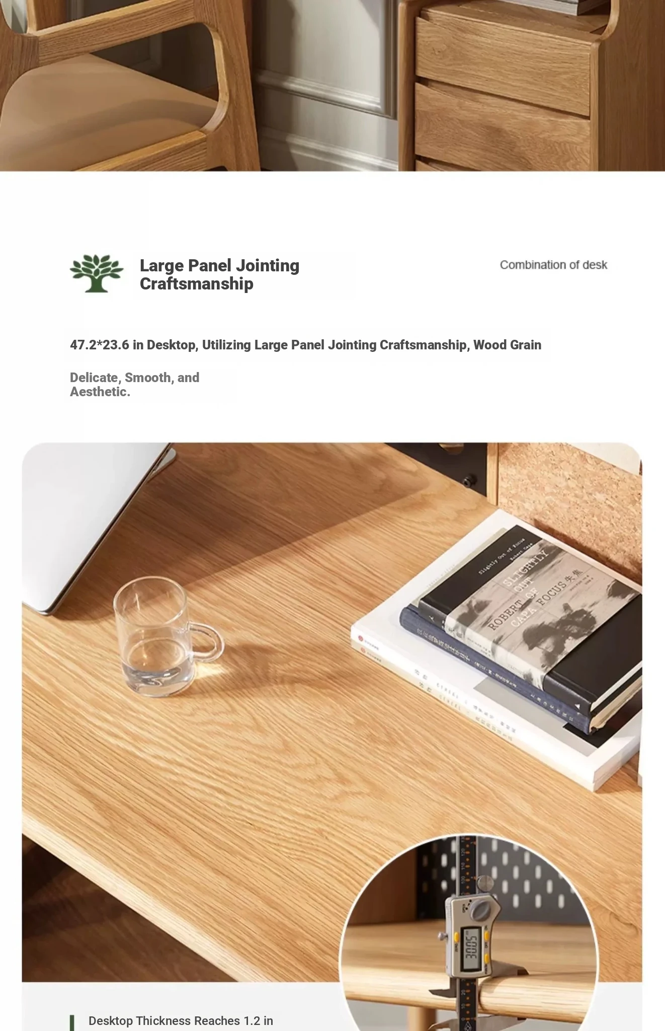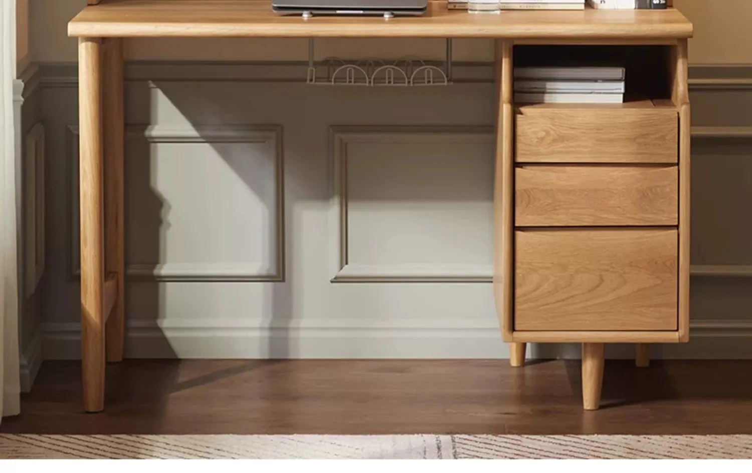 Elegant Solid Wood Desk and Bookshelf Combo - White Oak Office Study Table for Home and Work, Ideal for Both Learning and Computer Use