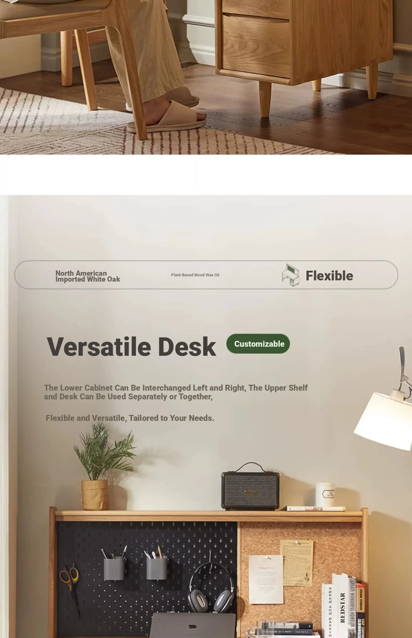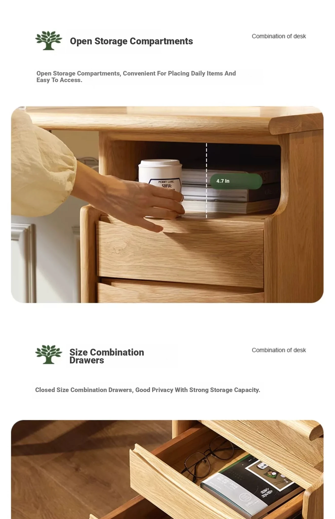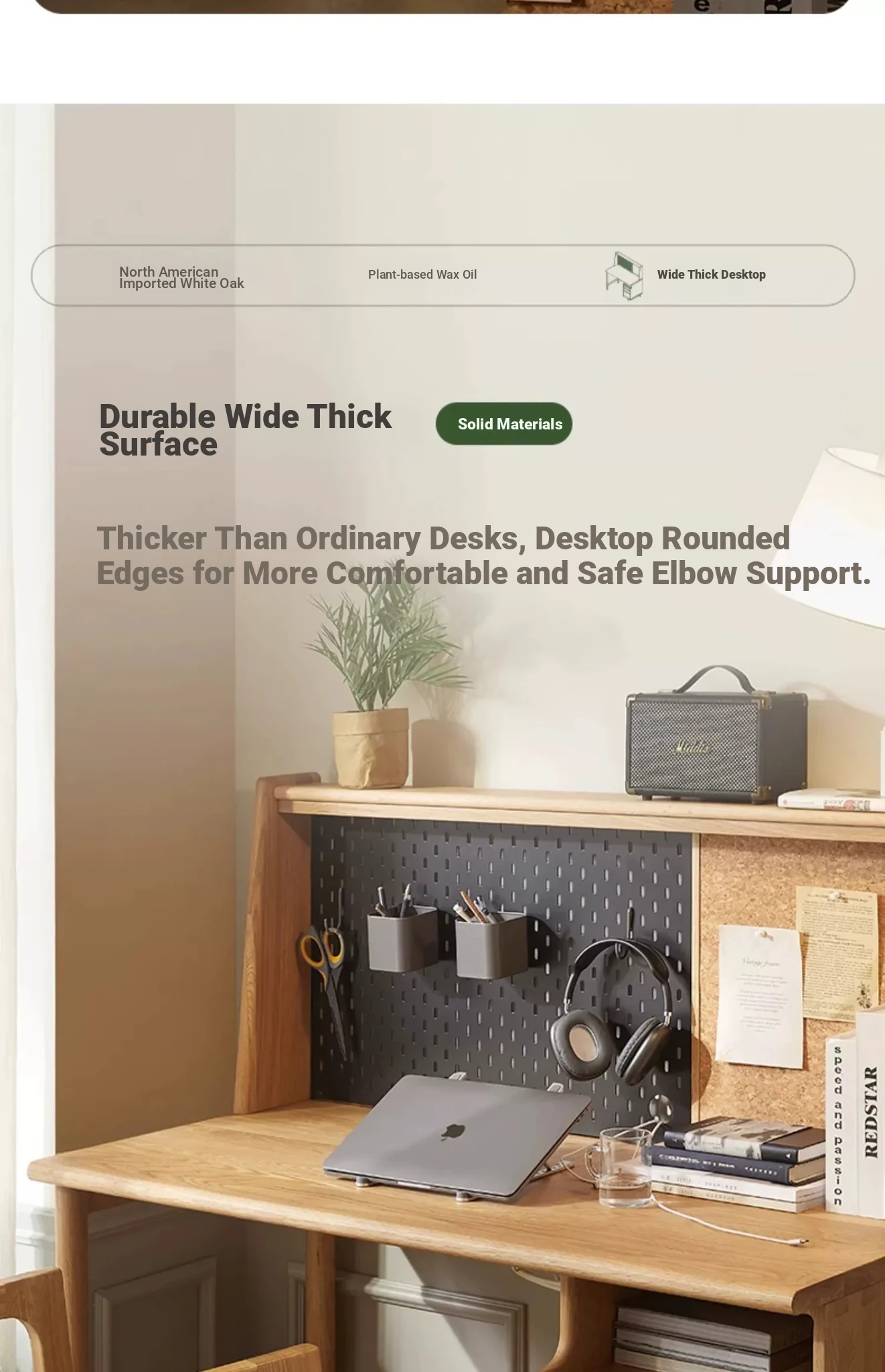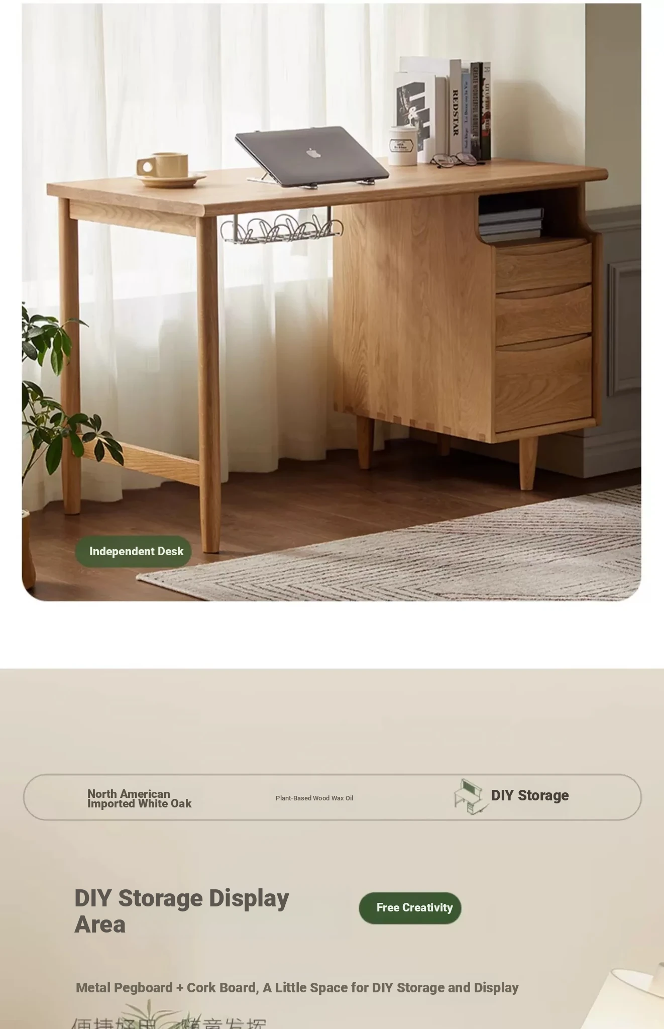 Elegant Solid Wood Desk and Bookshelf Combo - White Oak Office Study Table for Home and Work, Ideal for Both Learning and Computer Use