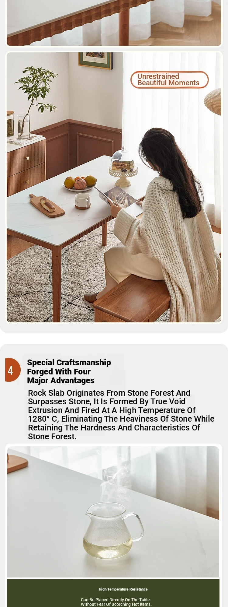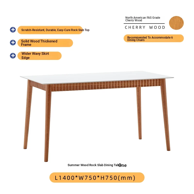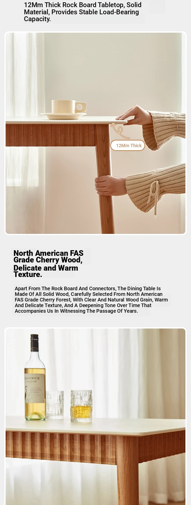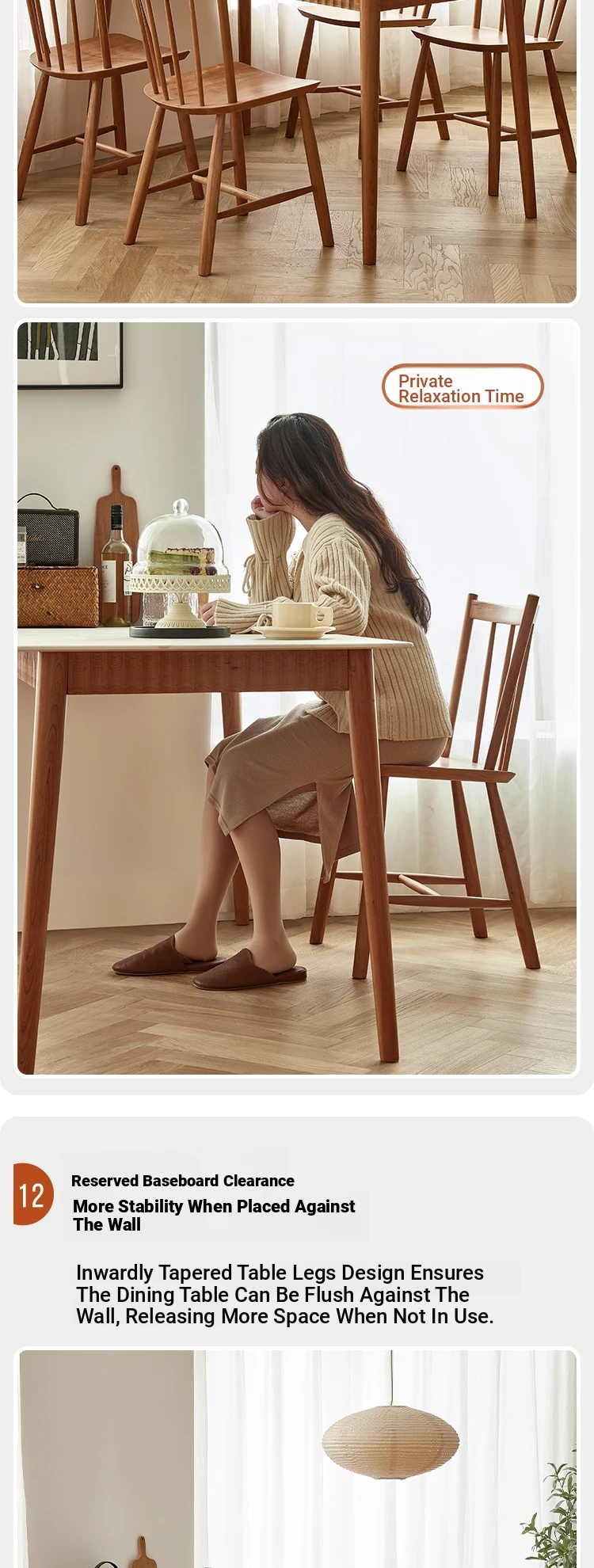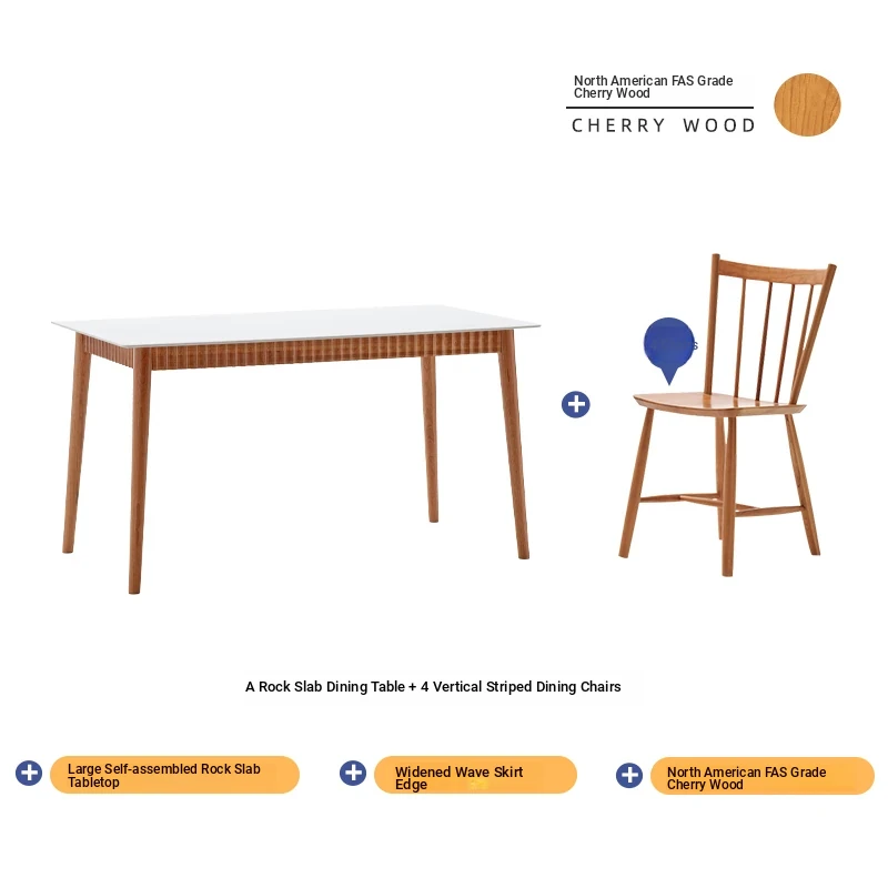 Elegant Solid Wood Dining Table Set - Modern Minimalist Cherry Wood with Rock Panel Design for Small Spaces - Perfect for Home Dining Experience