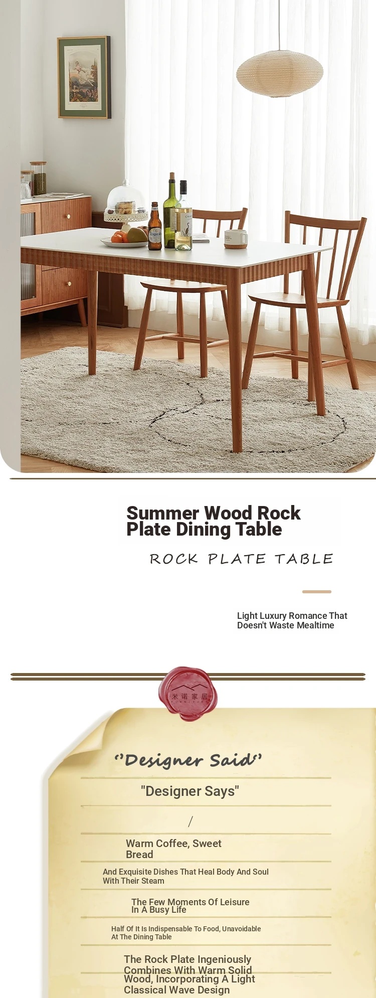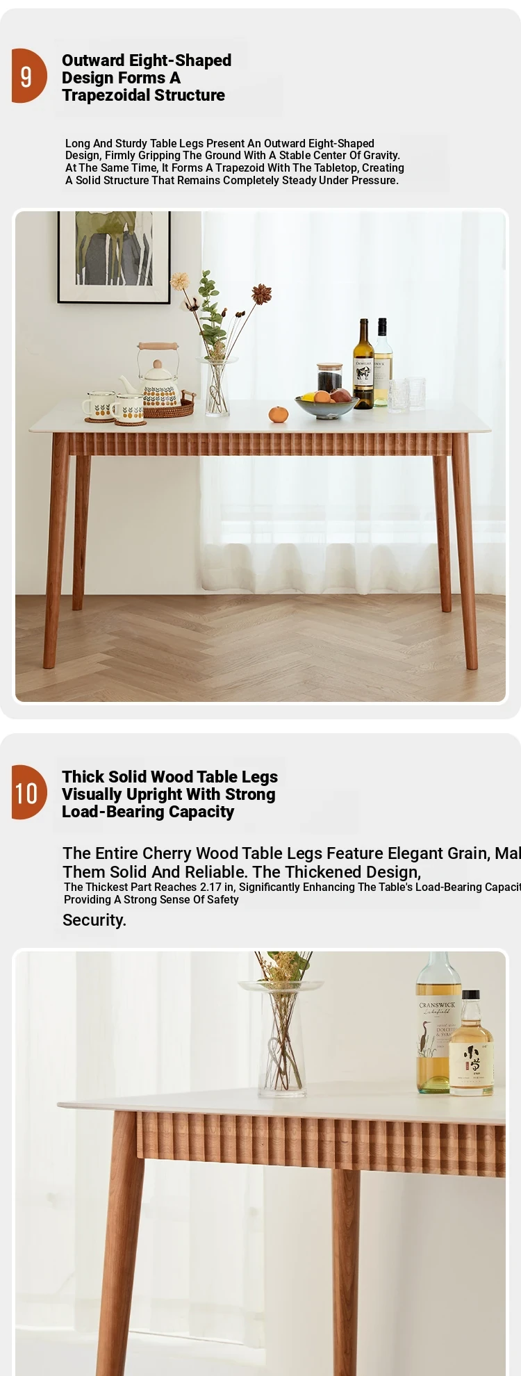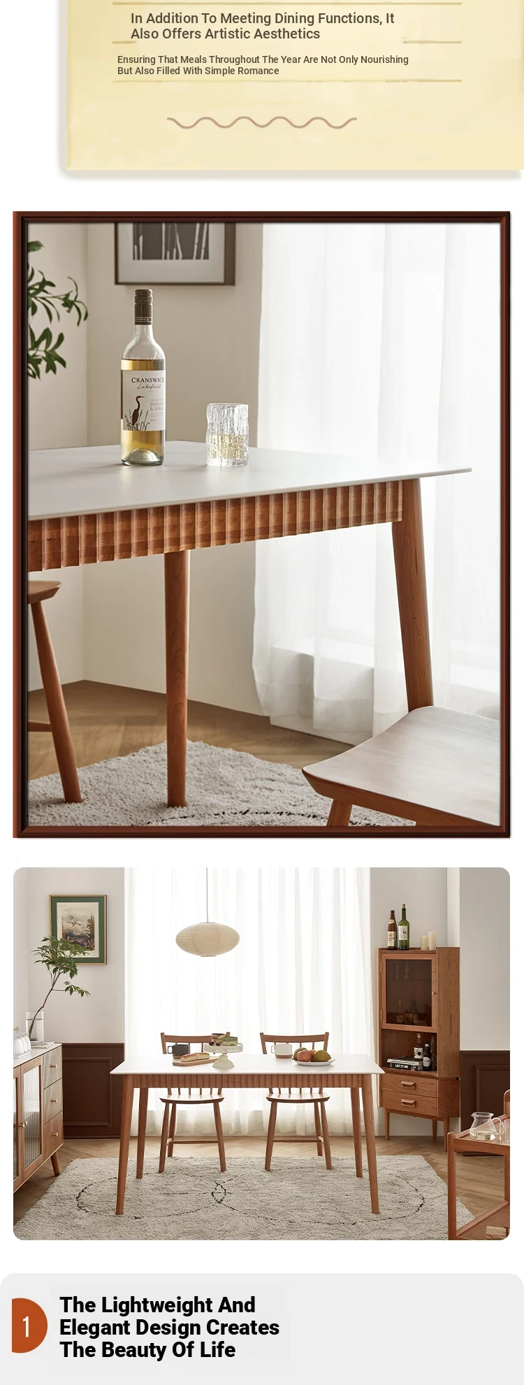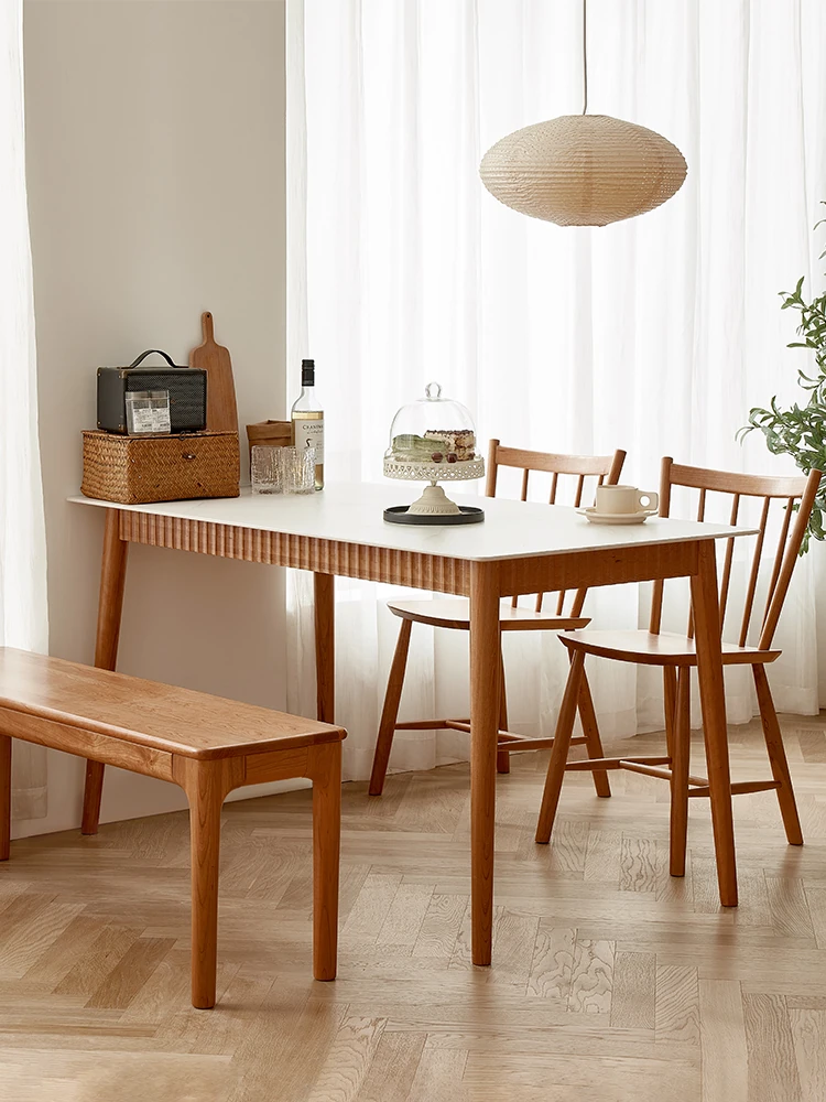 Elegant Solid Wood Dining Table Set - Modern Minimalist Cherry Wood with Rock Panel Design for Small Spaces - Perfect for Home Dining Experience