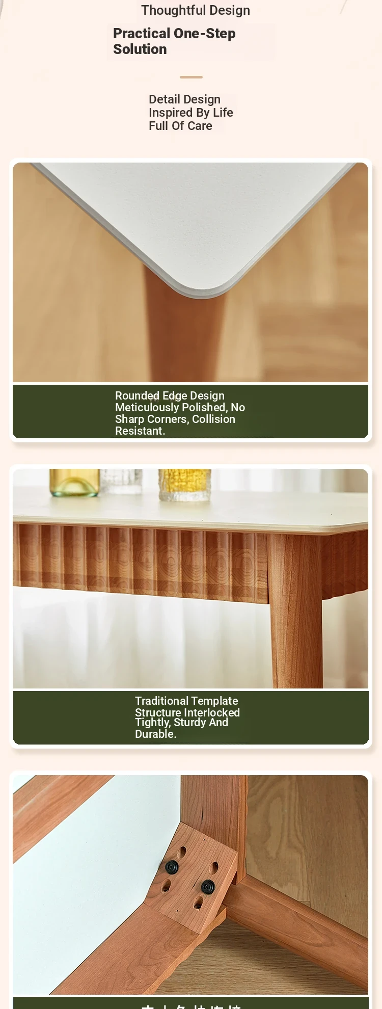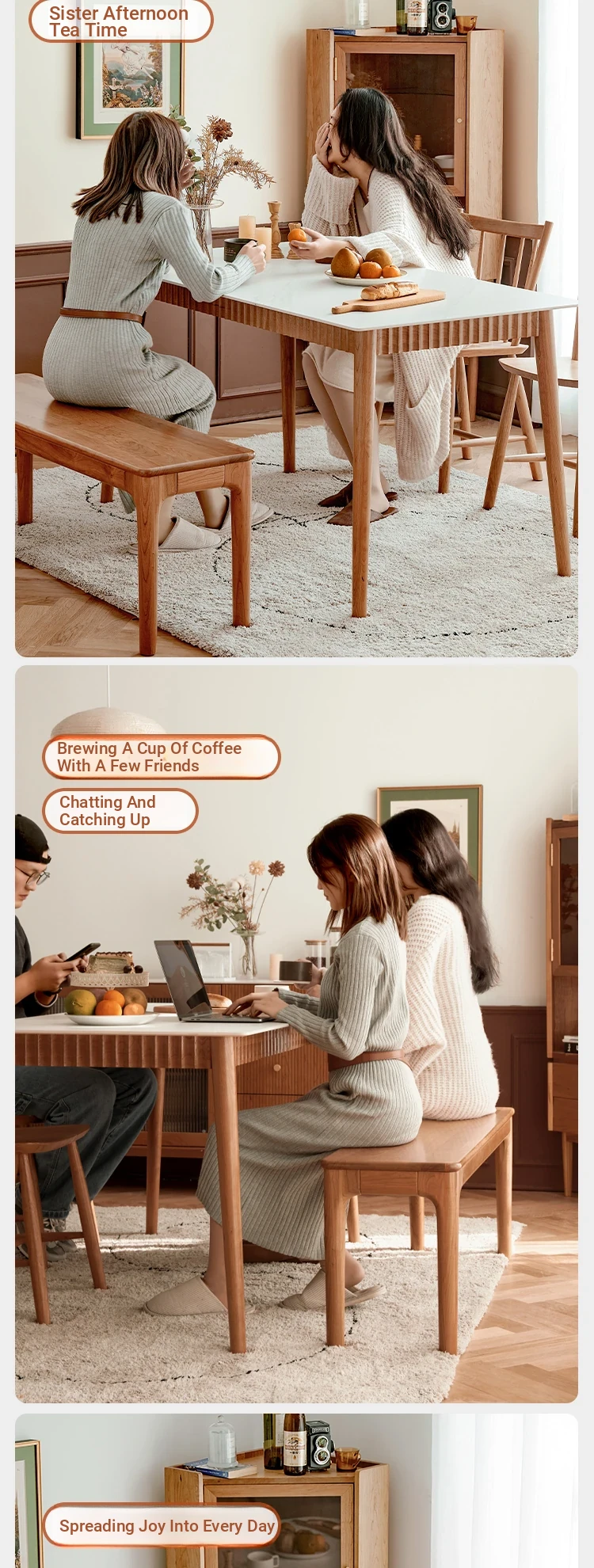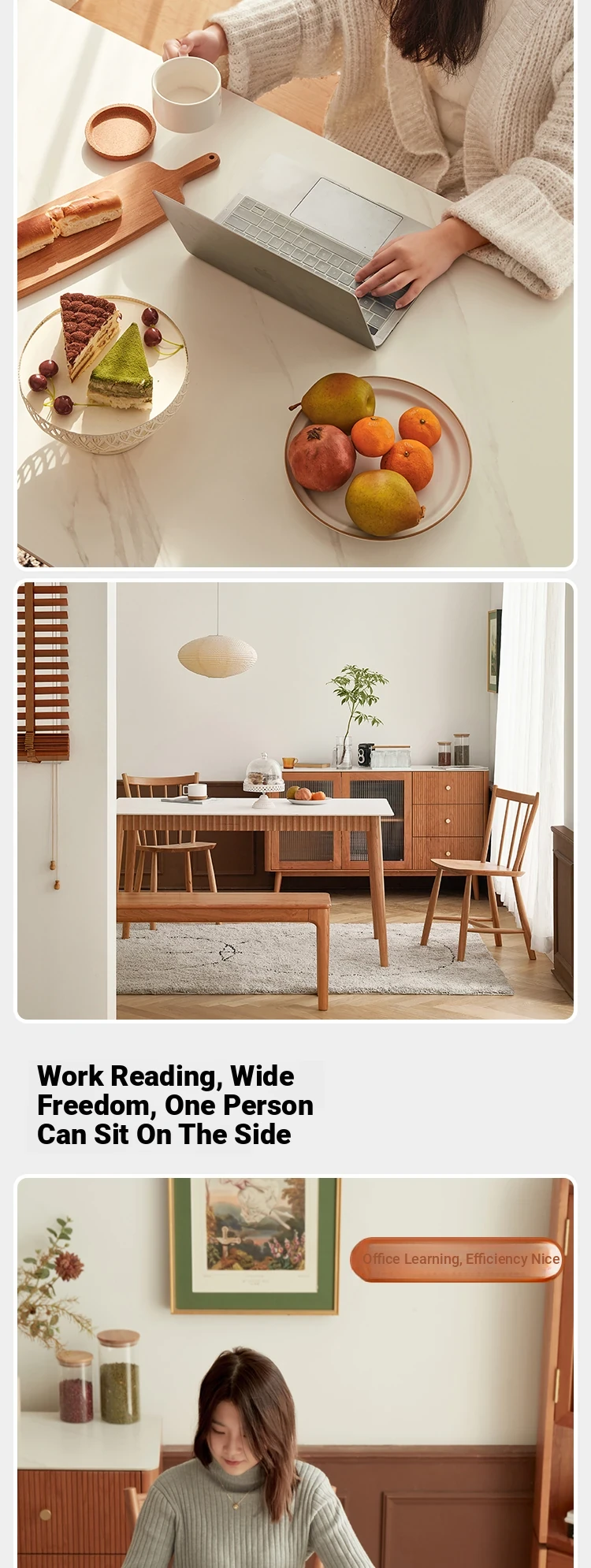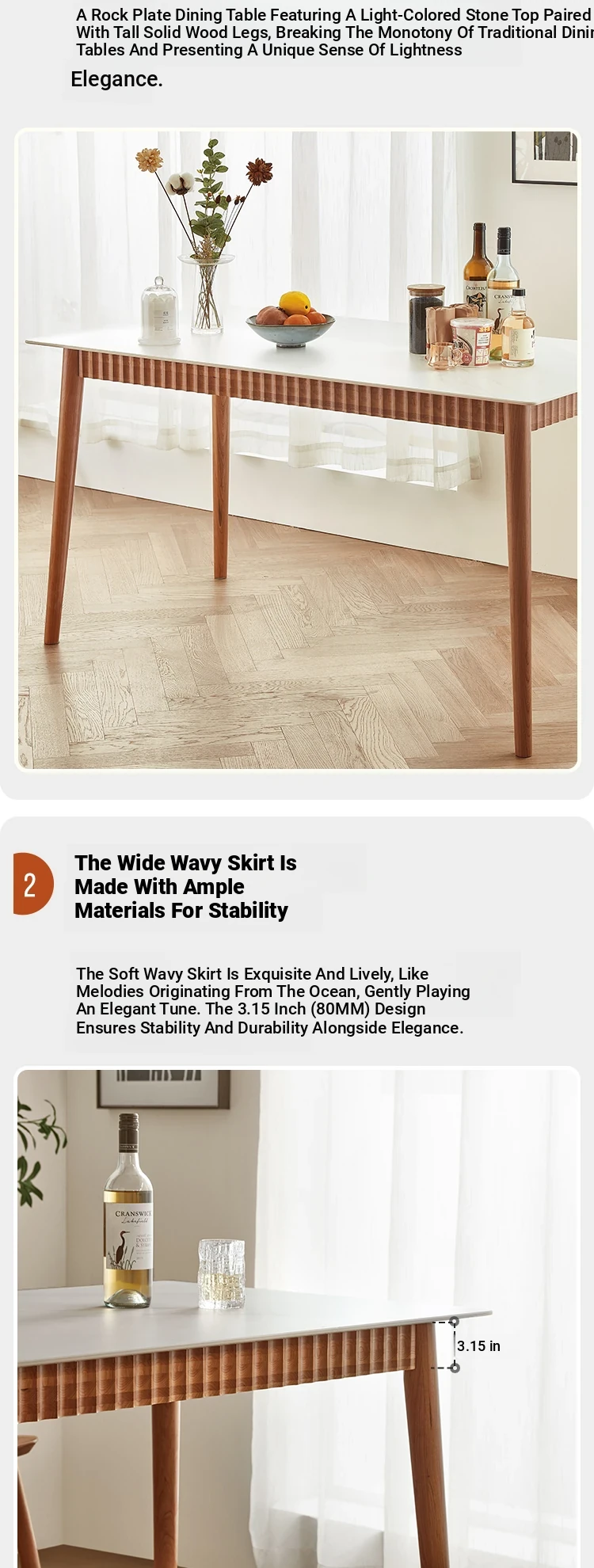 Elegant Solid Wood Dining Table Set - Modern Minimalist Cherry Wood with Rock Panel Design for Small Spaces - Perfect for Home Dining Experience
