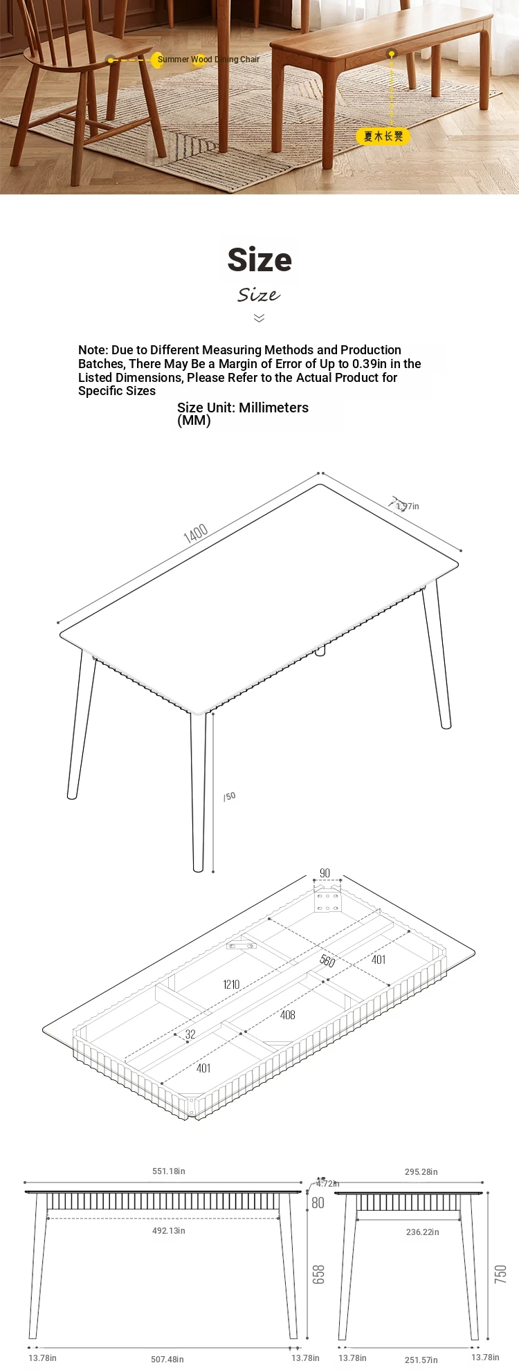 Cherry Wood Rock board dining table 55.12 in 55.12in*29.53in*29.53in