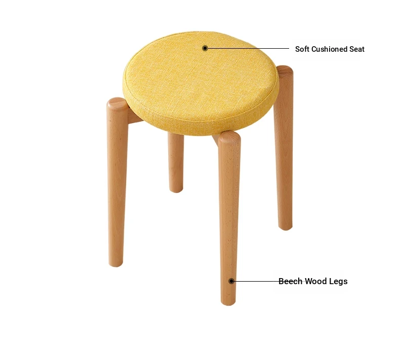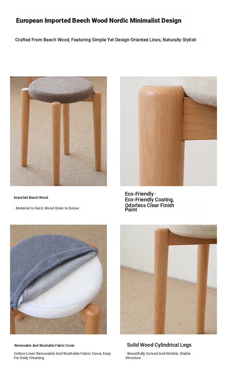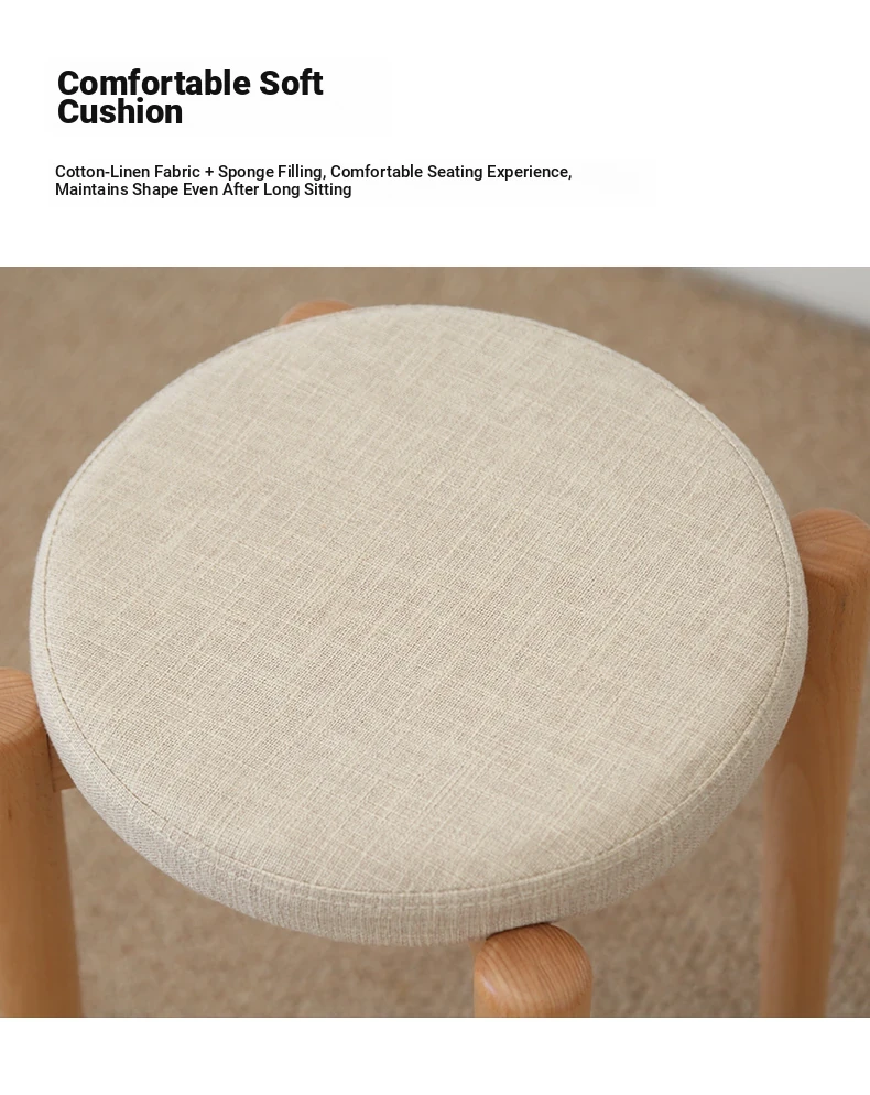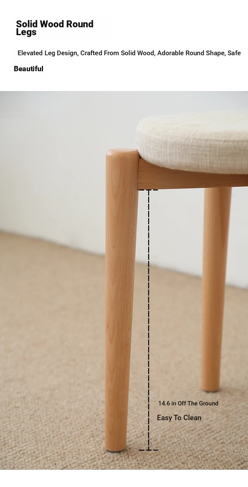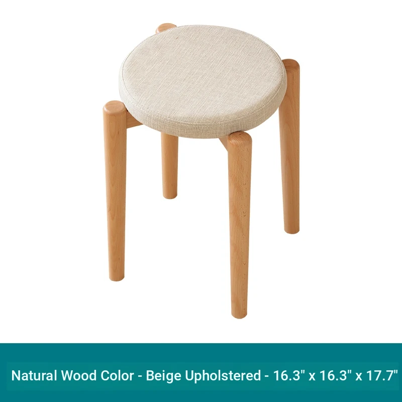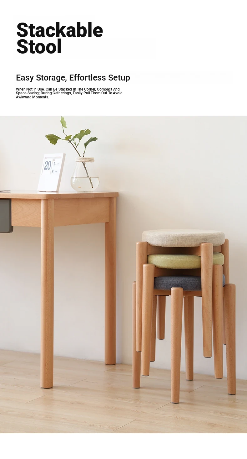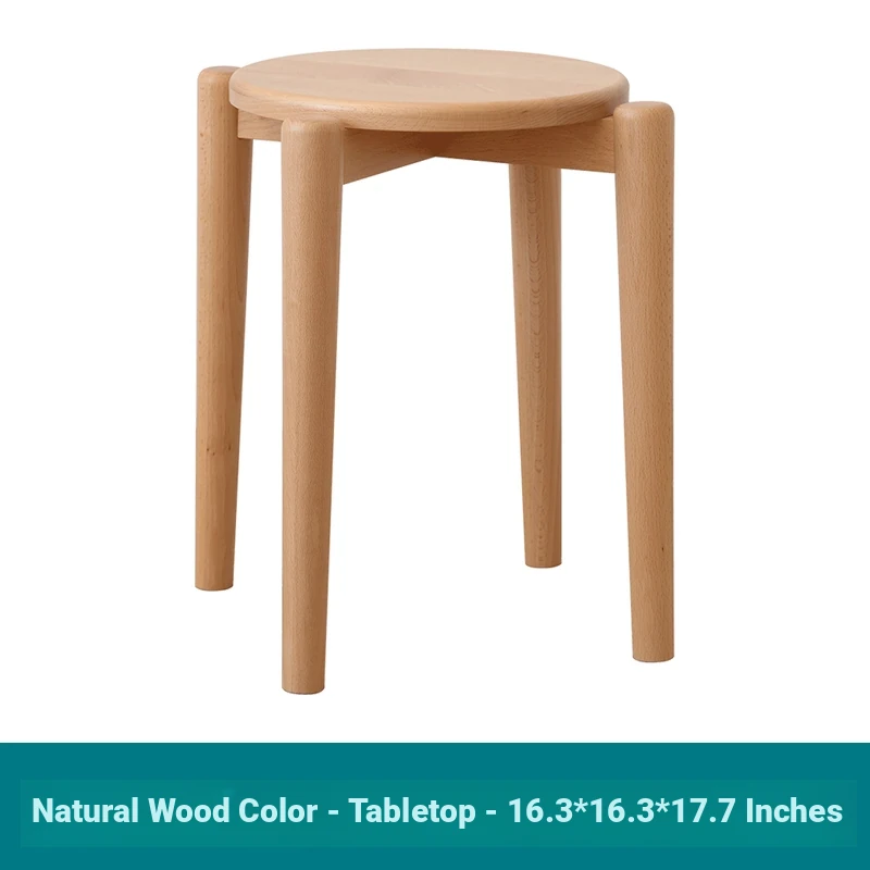 Elegant Solid Wood Stool - Compact Round Stacking Stool for Small Spaces, Made from Nordic Beech, Perfect for Living Rooms and Dressing Tables, Versatile Makeup Bench for Home Use