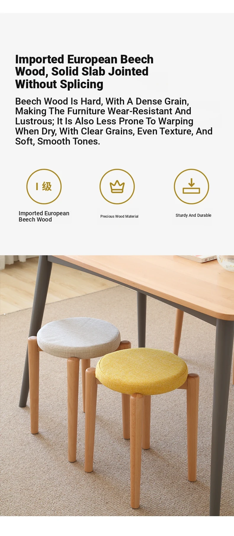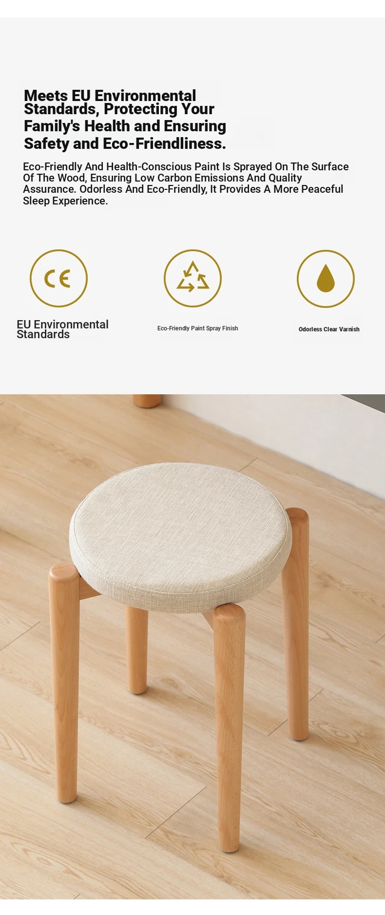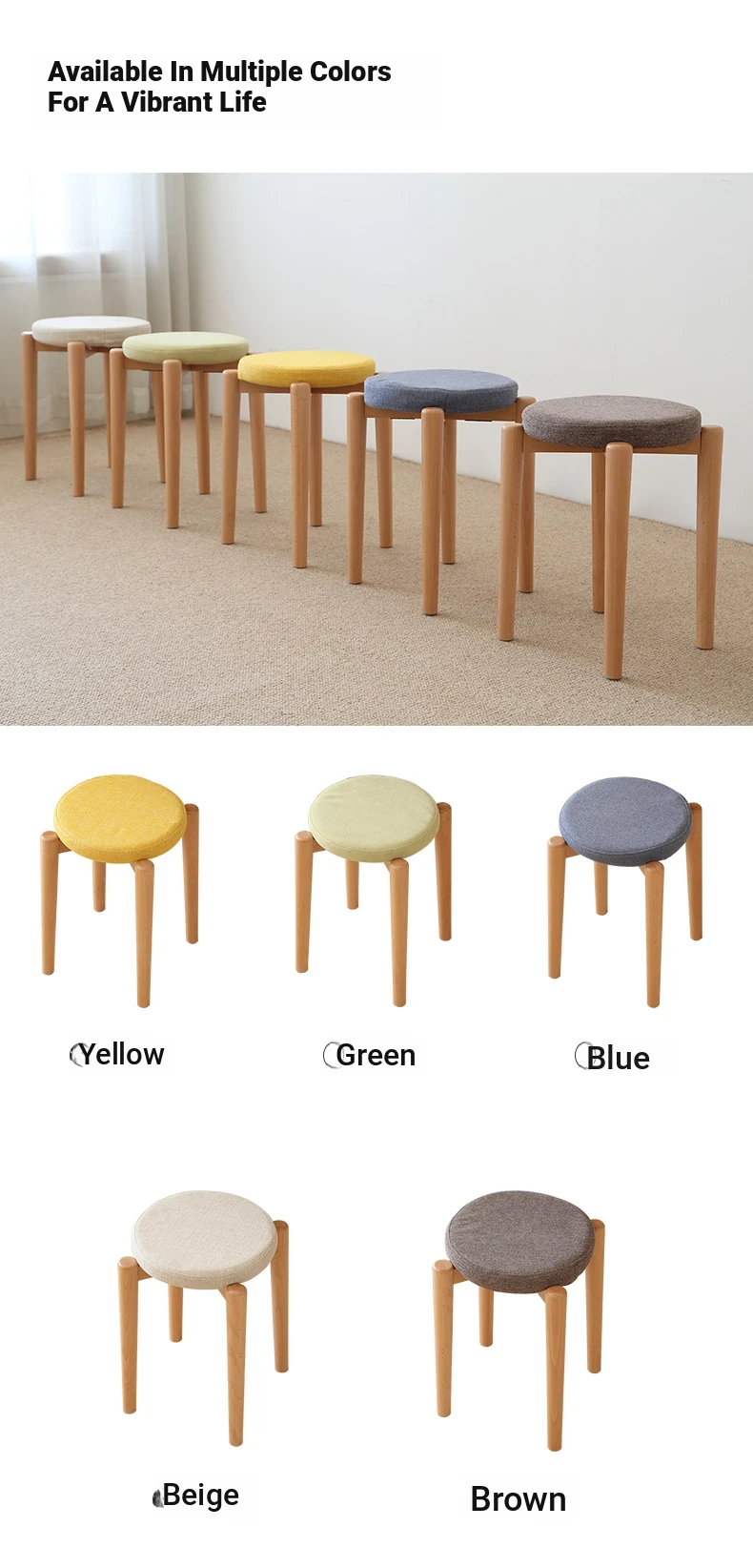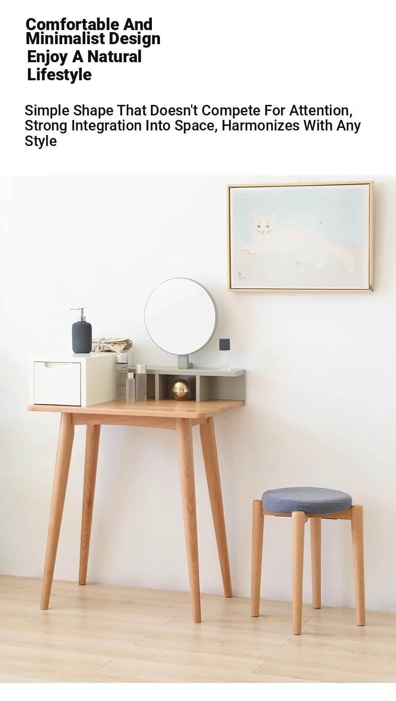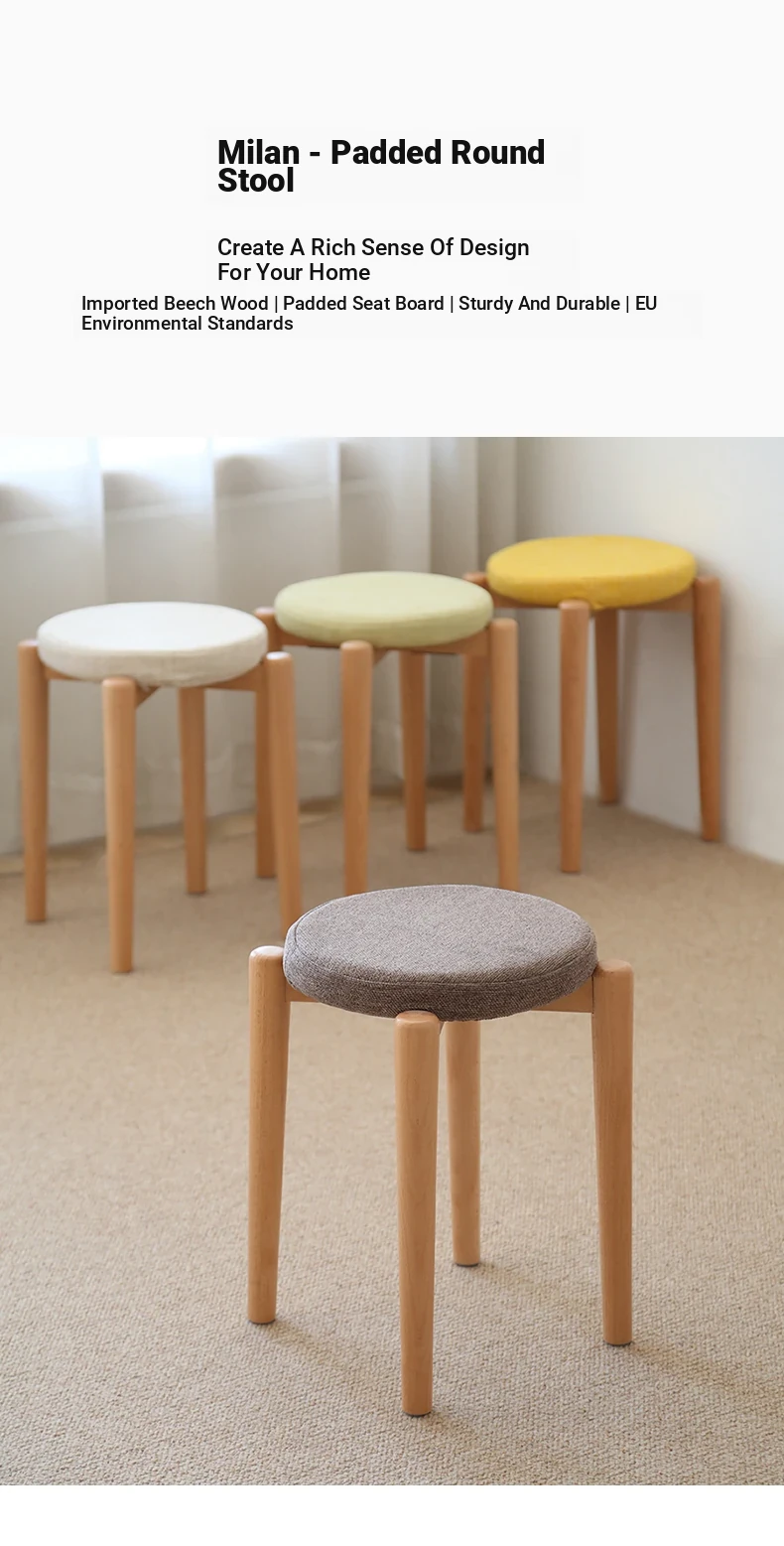 Elegant Solid Wood Stool - Compact Round Stacking Stool for Small Spaces, Made from Nordic Beech, Perfect for Living Rooms and Dressing Tables, Versatile Makeup Bench for Home Use