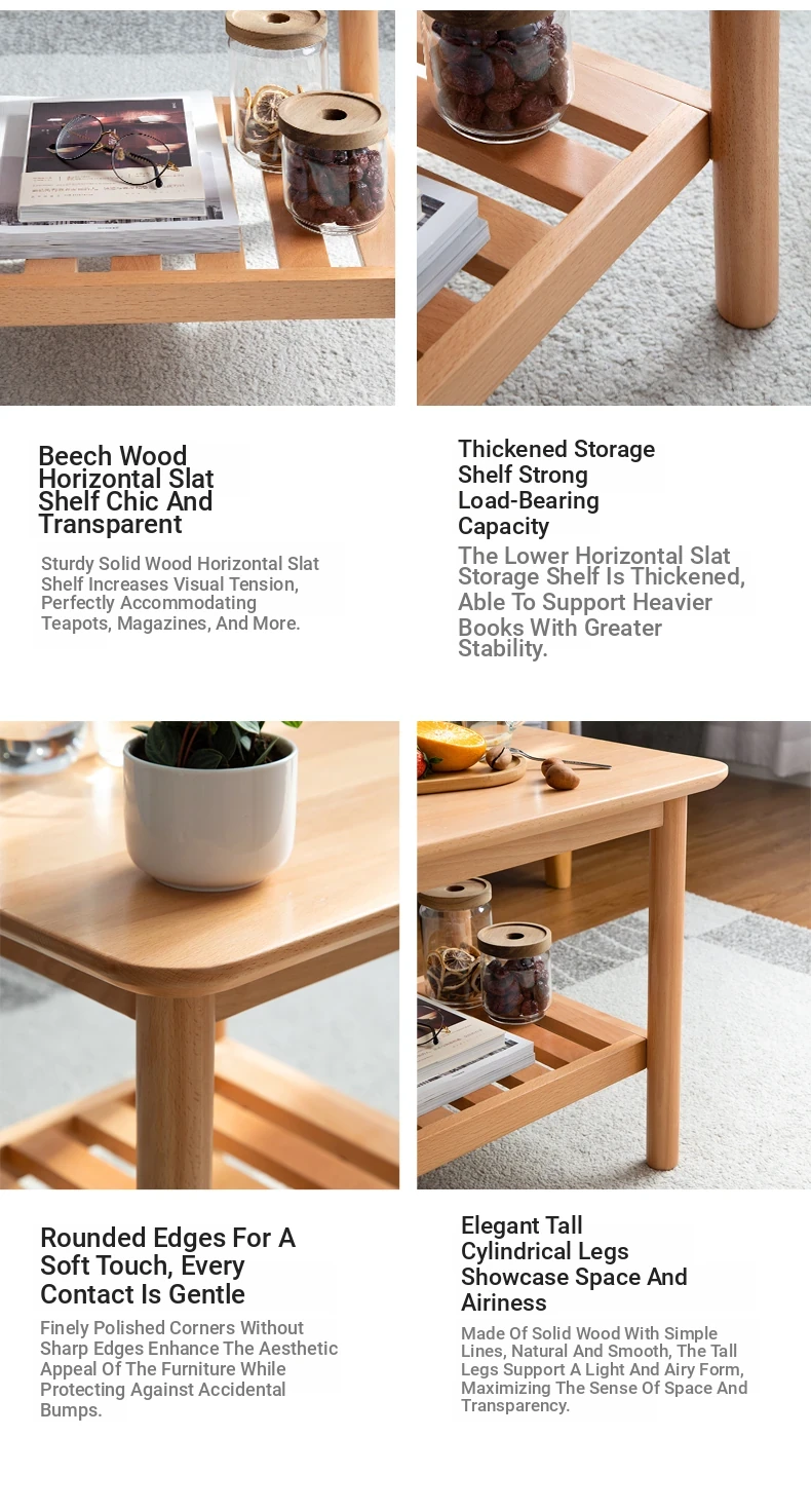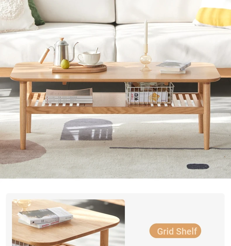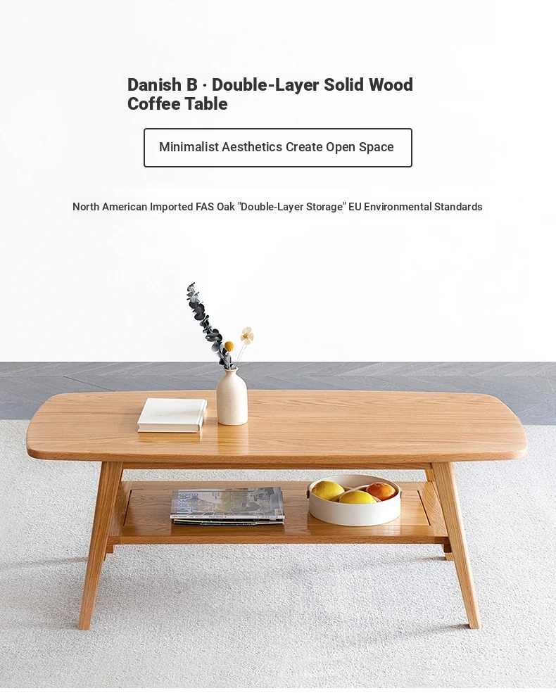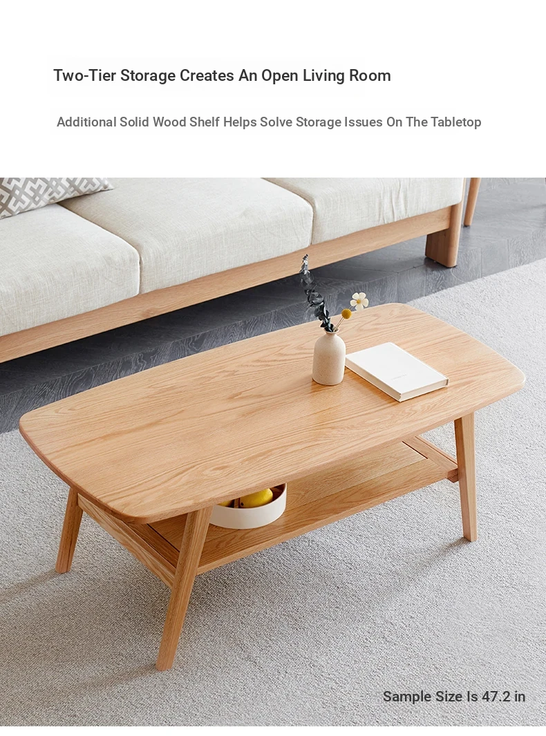 Elegant Solid Wood Tea Table – Scandinavian & Japanese Style Oak Coffee Table for Small Spaces, Modern Minimalist Design, Two-Tiered Rustic Wood Tea Stand for Your Living Room, Perfect for Cozy Homes.