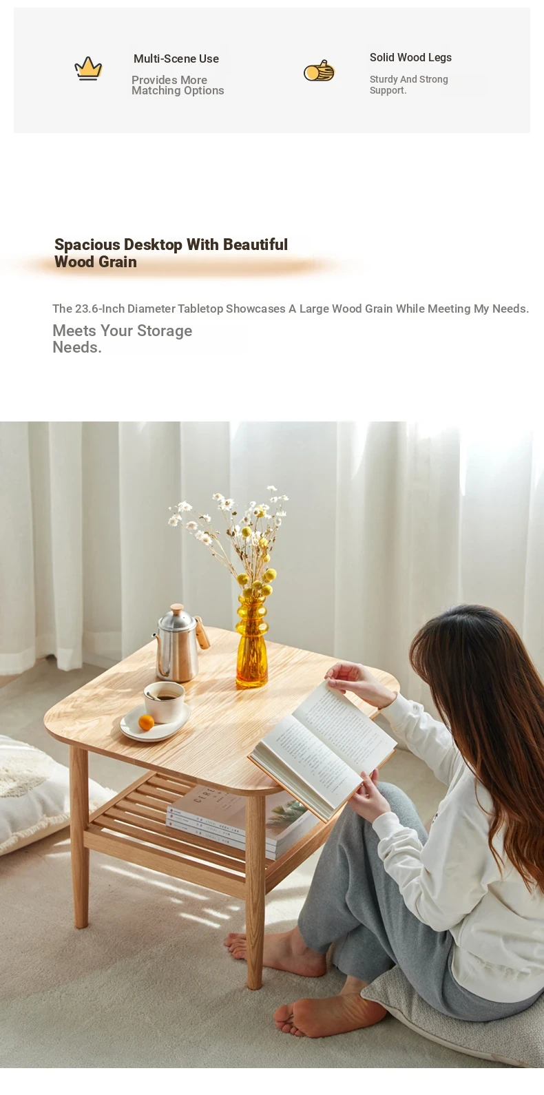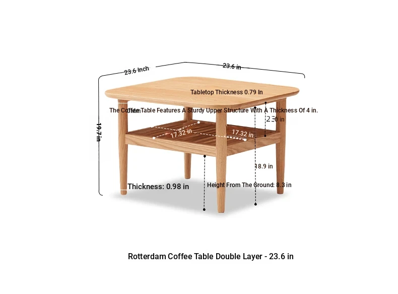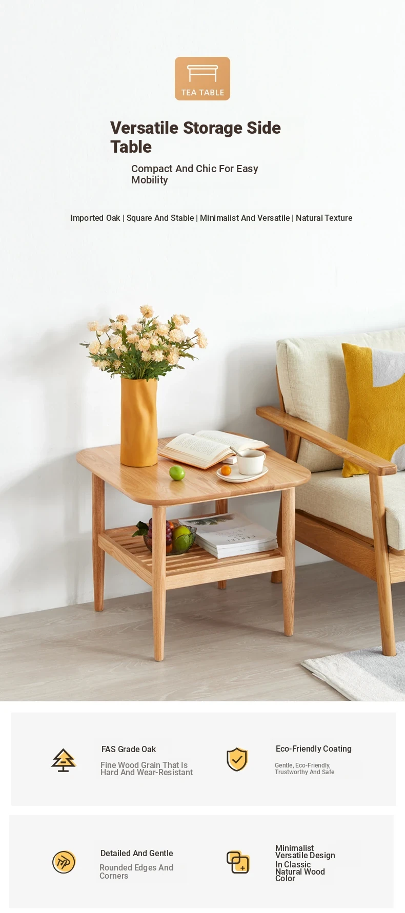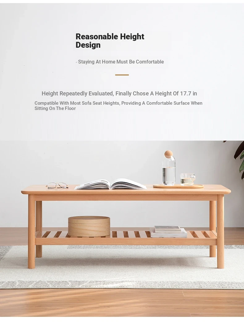 Elegant Solid Wood Tea Table – Scandinavian & Japanese Style Oak Coffee Table for Small Spaces, Modern Minimalist Design, Two-Tiered Rustic Wood Tea Stand for Your Living Room, Perfect for Cozy Homes.