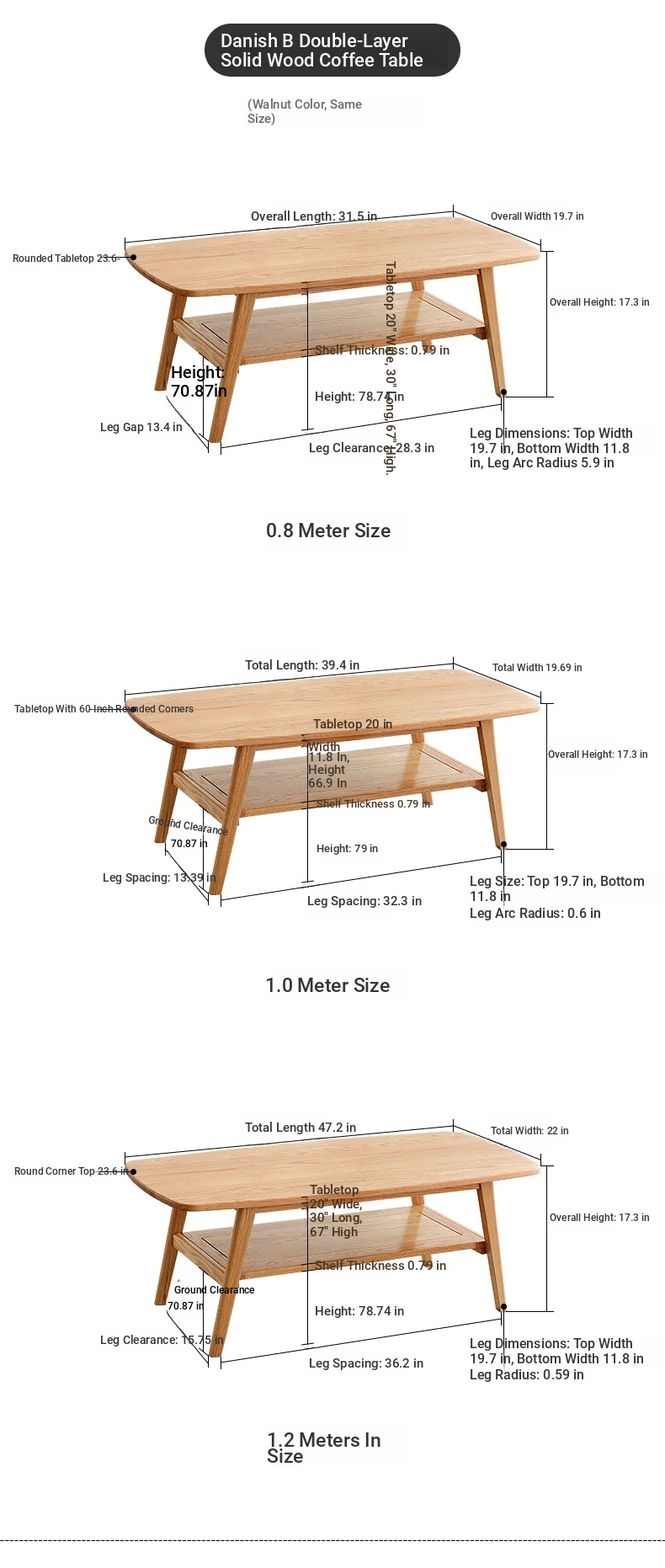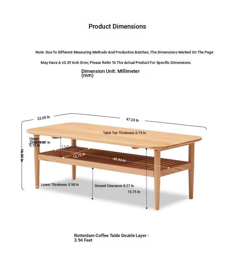 Log color-oak 39.37in double layer coffee table [B4073]