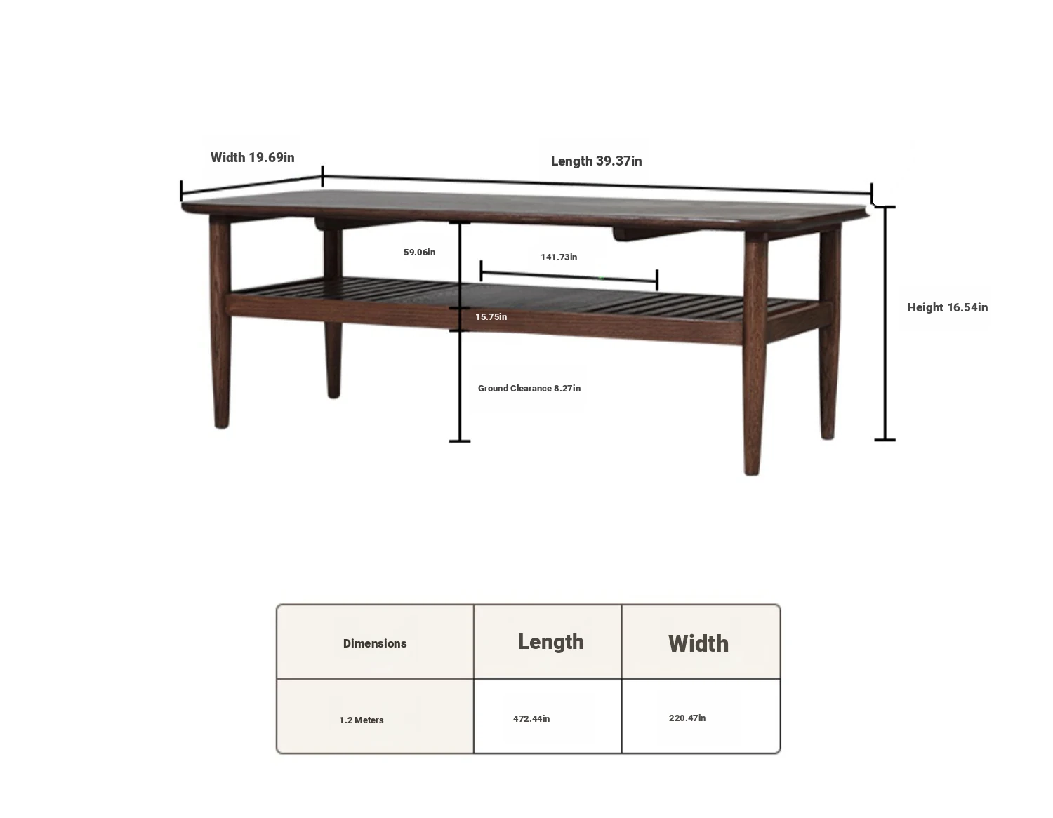 Black walnut -47.24in double tea table (A8072)