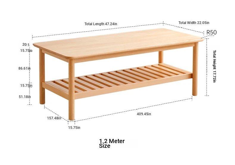 Log color-Beech Polish 47.24in coffee table [F6073]