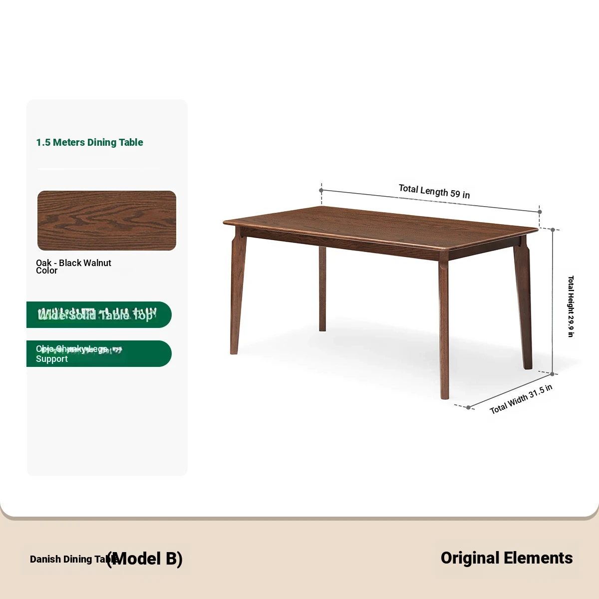 [Oak-Black Walnut] 59.06 in Dining Table (59.06in*31.50in*29.92in)