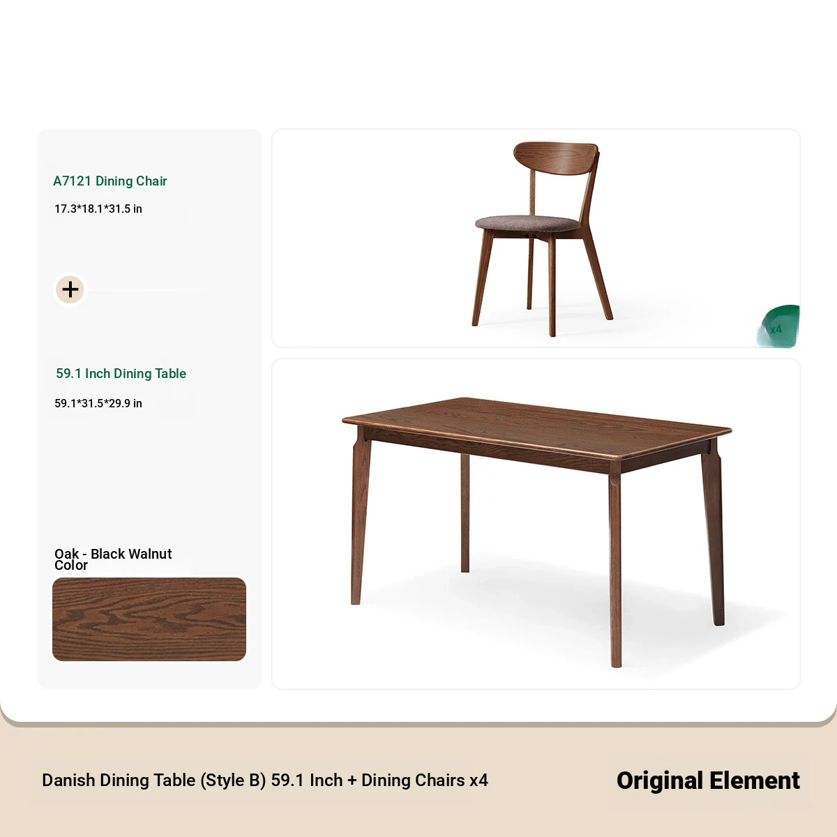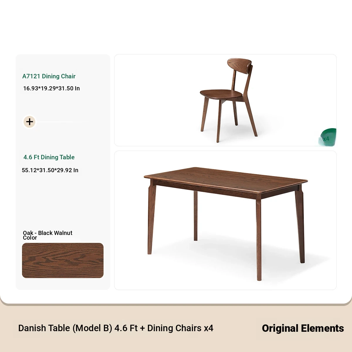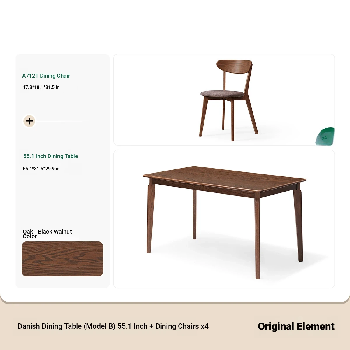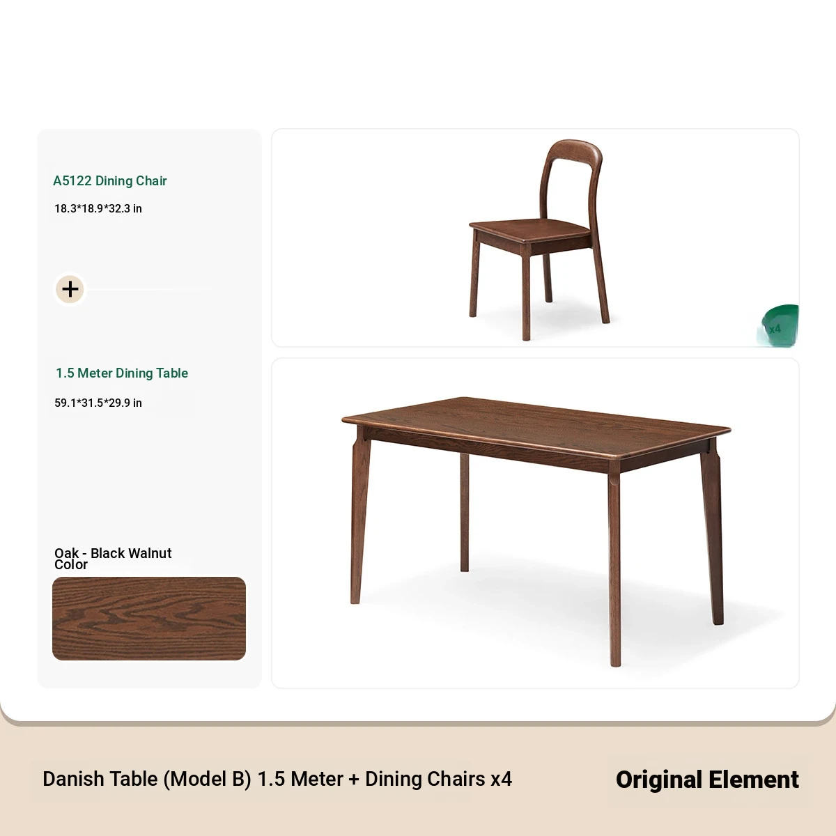 [Oak-Black Walnut] 45.67 ins per table and 4 chairs (A5122)