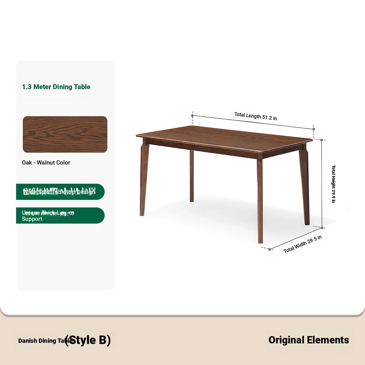 [Oak-Black Walnut] 51.18 in Dining Table (51.18in*29.53in*29.92in)