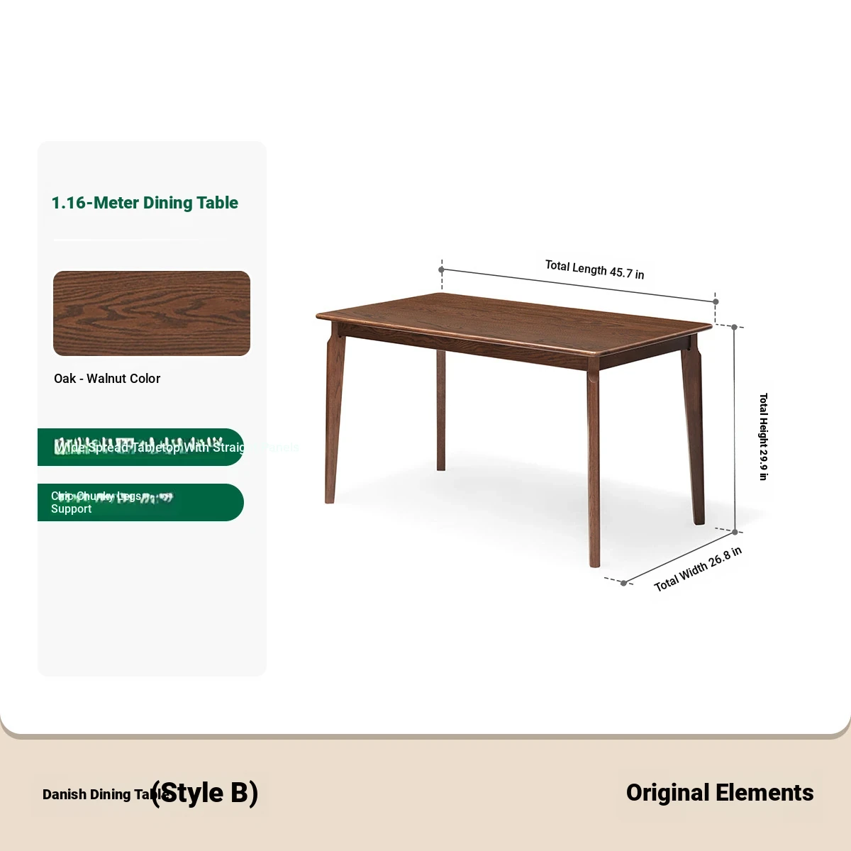 [Oak-Black Walnut] 45.67 in Dining Table (45.67in*26.77in*29.92in)