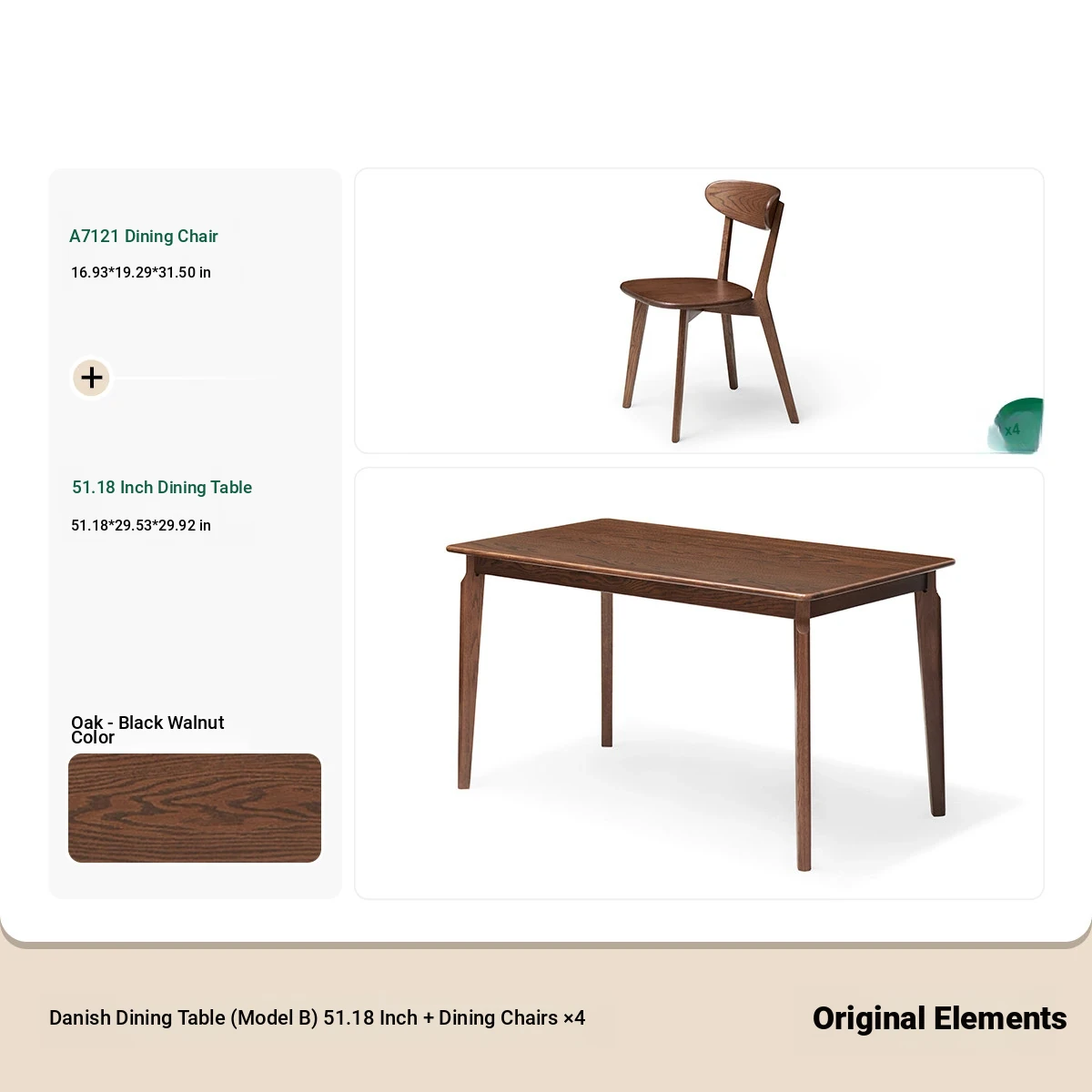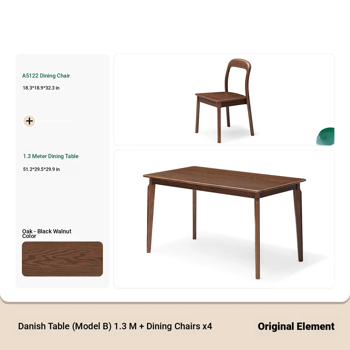 [Oak-Black Walnut] 51.18 ins per table and 4 chairs (A5122)