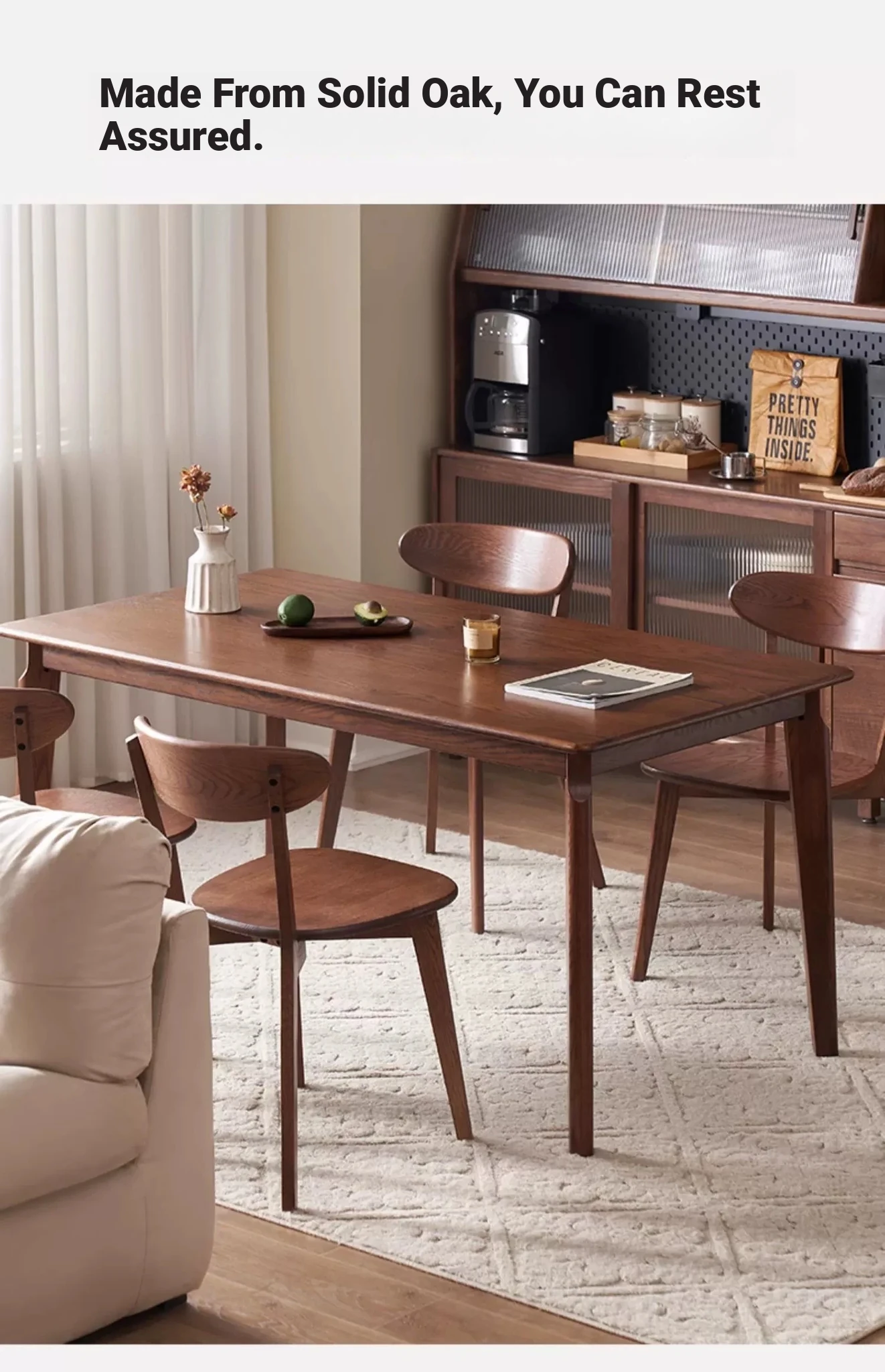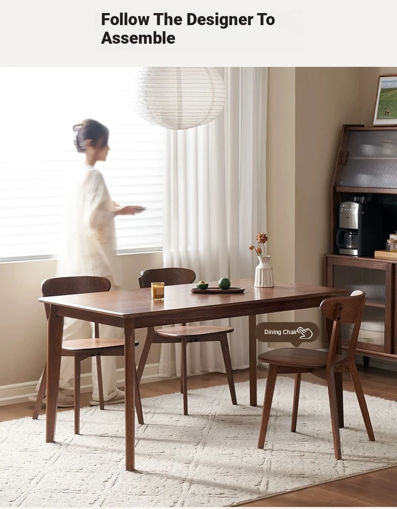 Elevate Your Dining Experience with Our Solid Wood Dining Table and Chair Set - Featuring Nordic Oak and Walnut Finish, Perfect for Modern Minimalist Homes.
