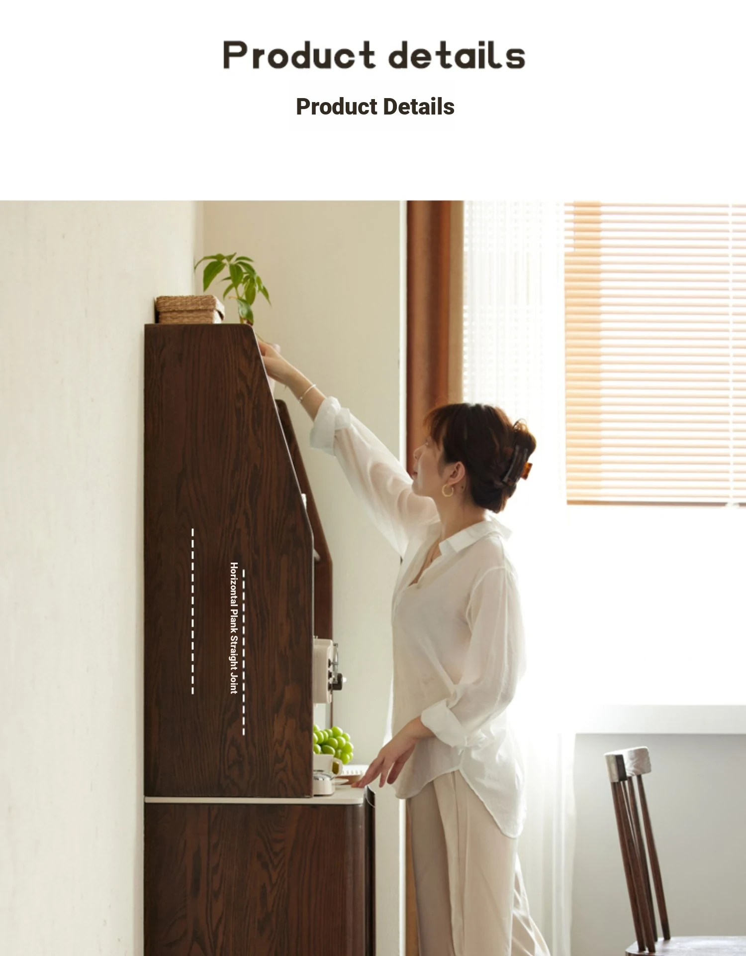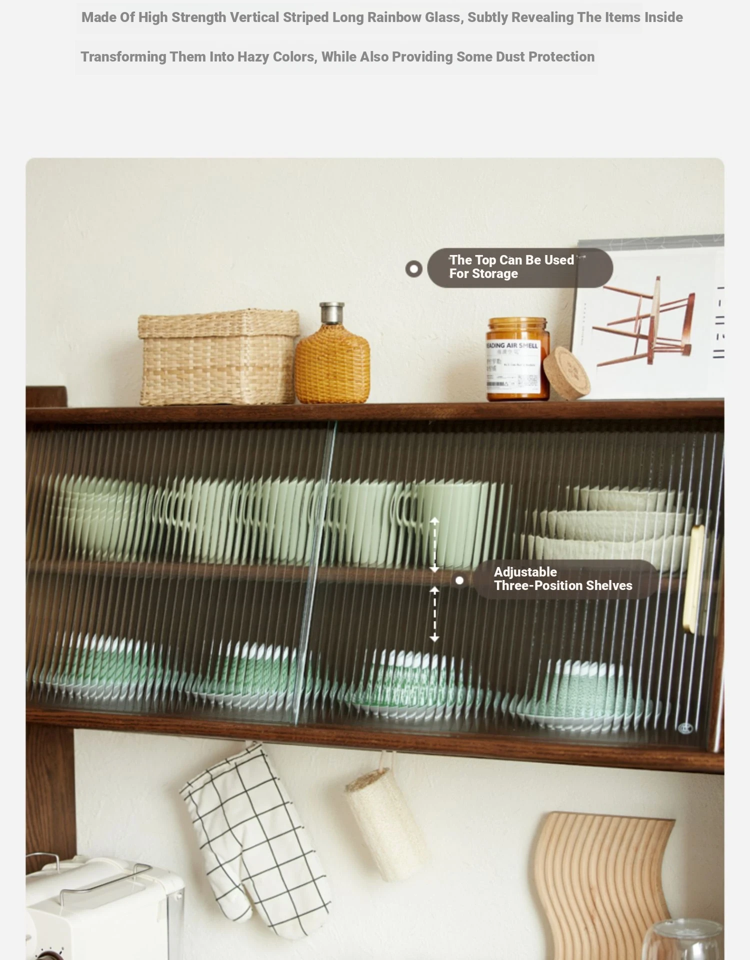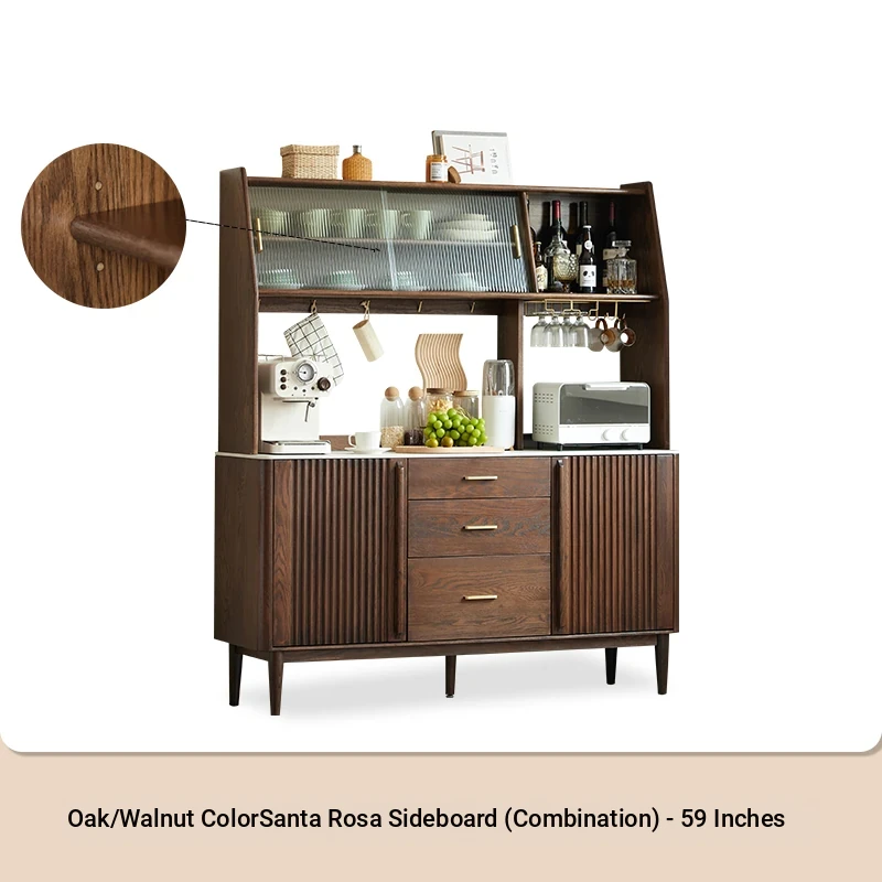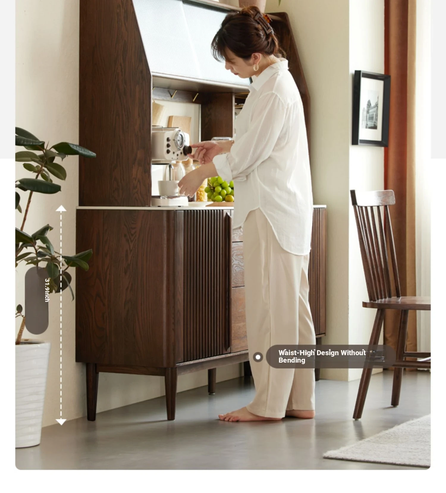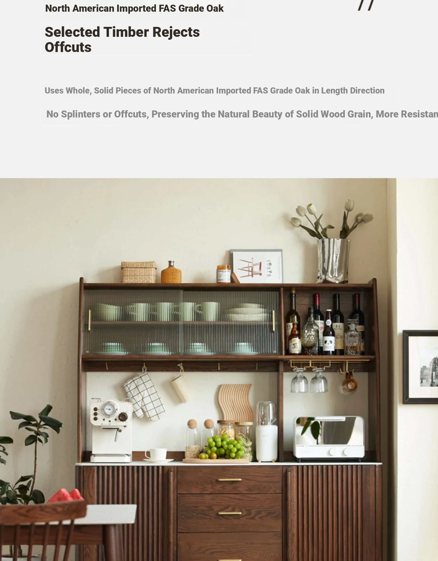 "Mid-Century Solid Wood Rock Slab Sideboard Cabinet - Wall-Mounted High Storage for Small Spaces, Featuring Oak Finish Perfect for Tea and Snack Organization"