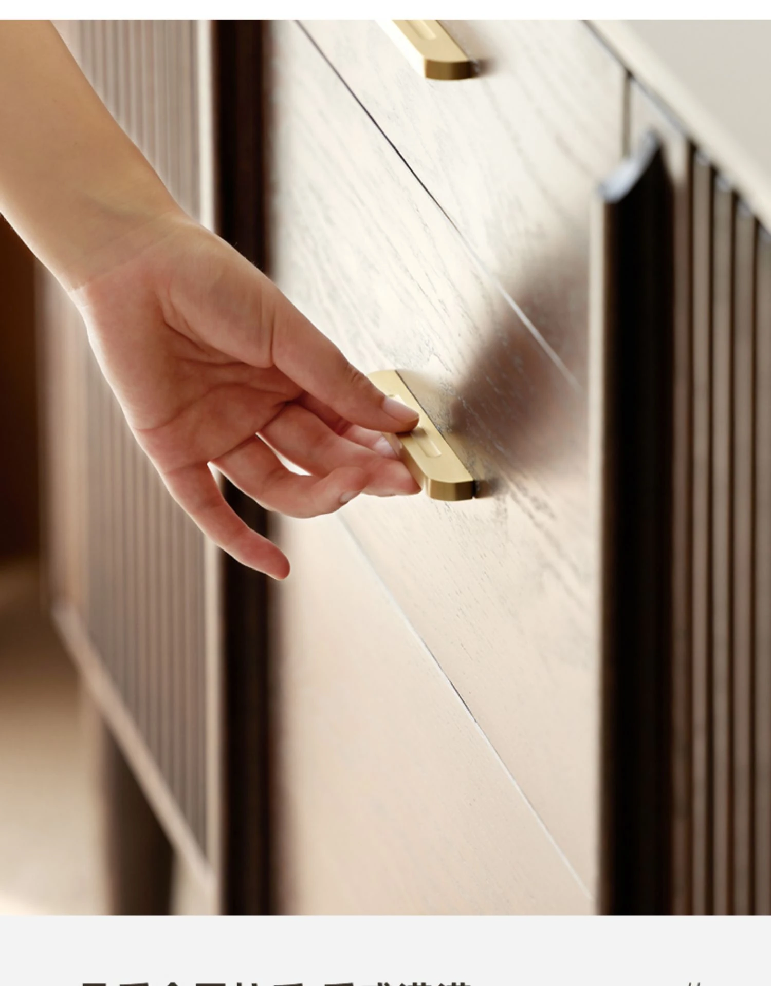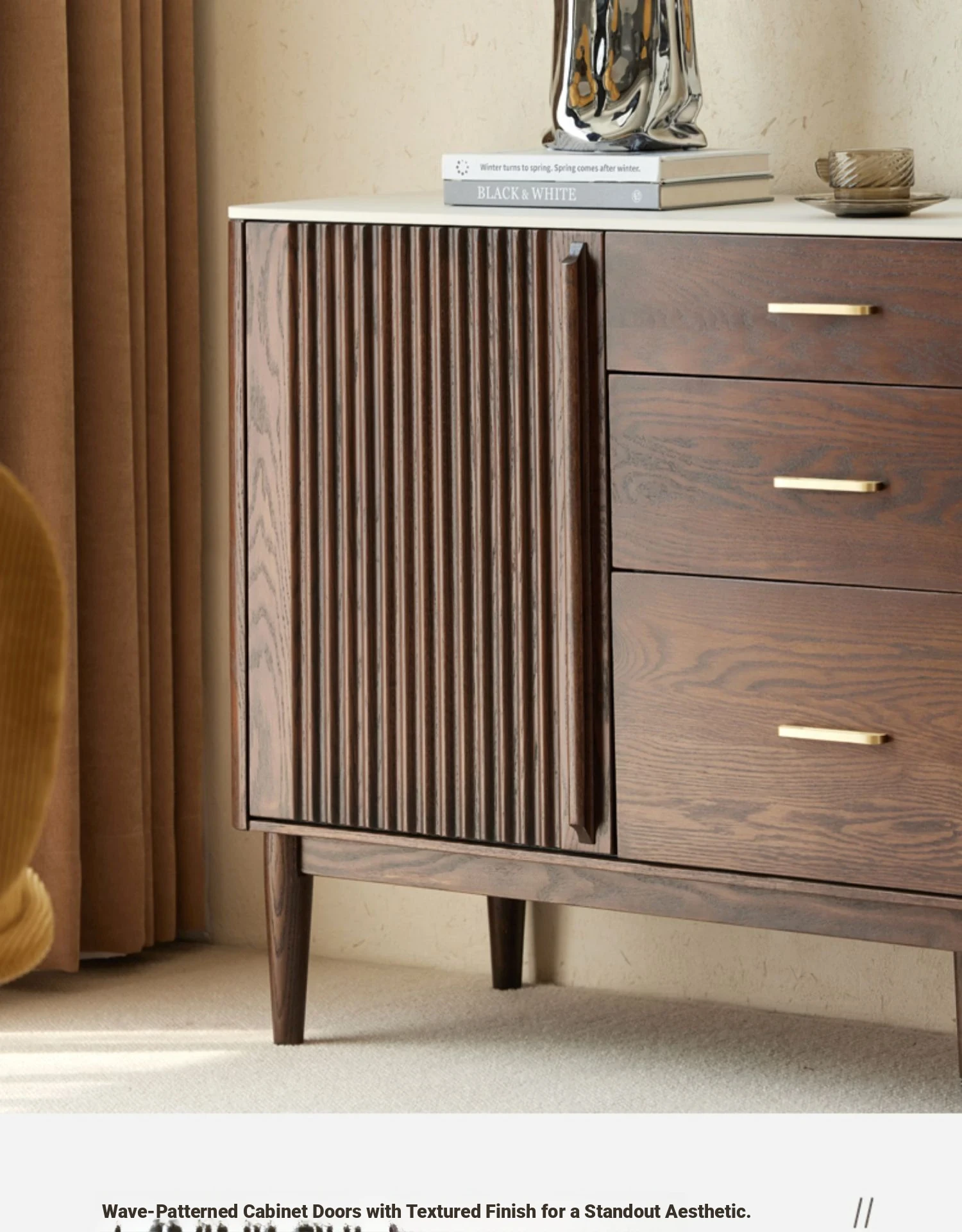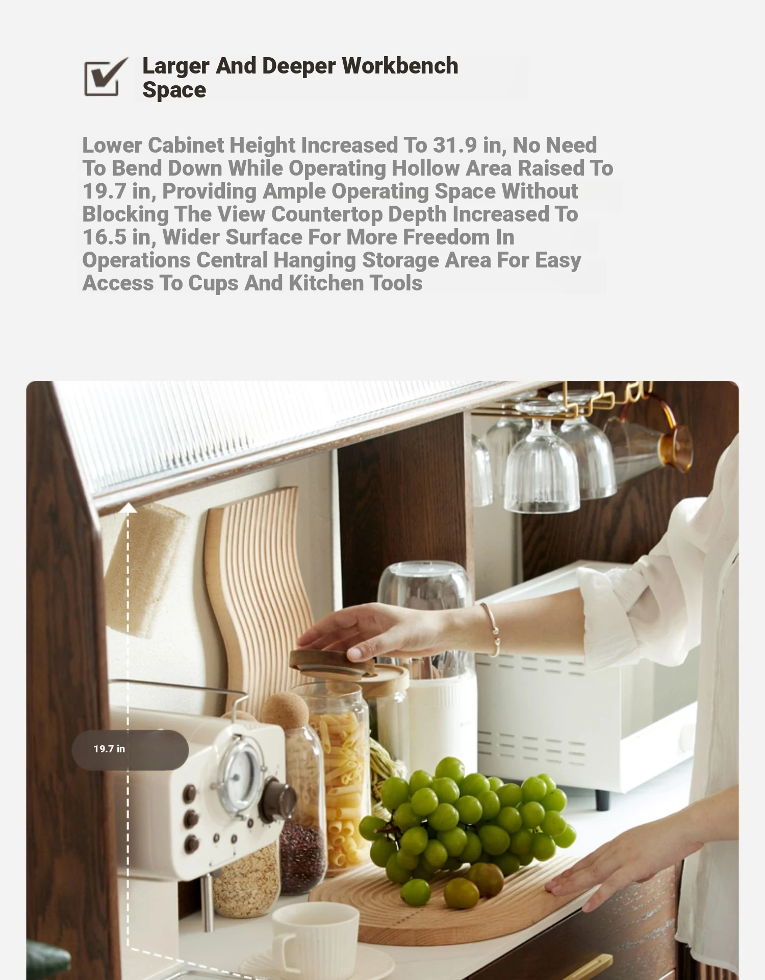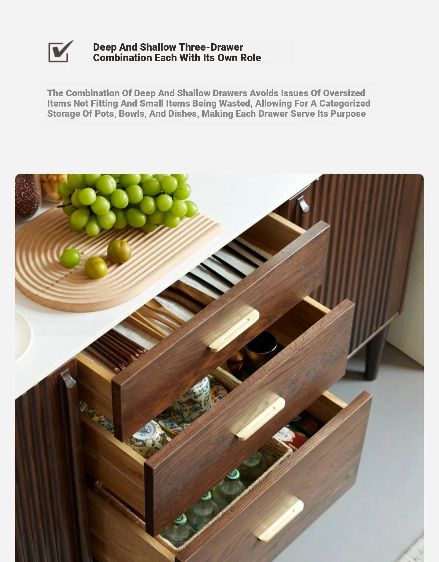 "Mid-Century Solid Wood Rock Slab Sideboard Cabinet - Wall-Mounted High Storage for Small Spaces, Featuring Oak Finish Perfect for Tea and Snack Organization"