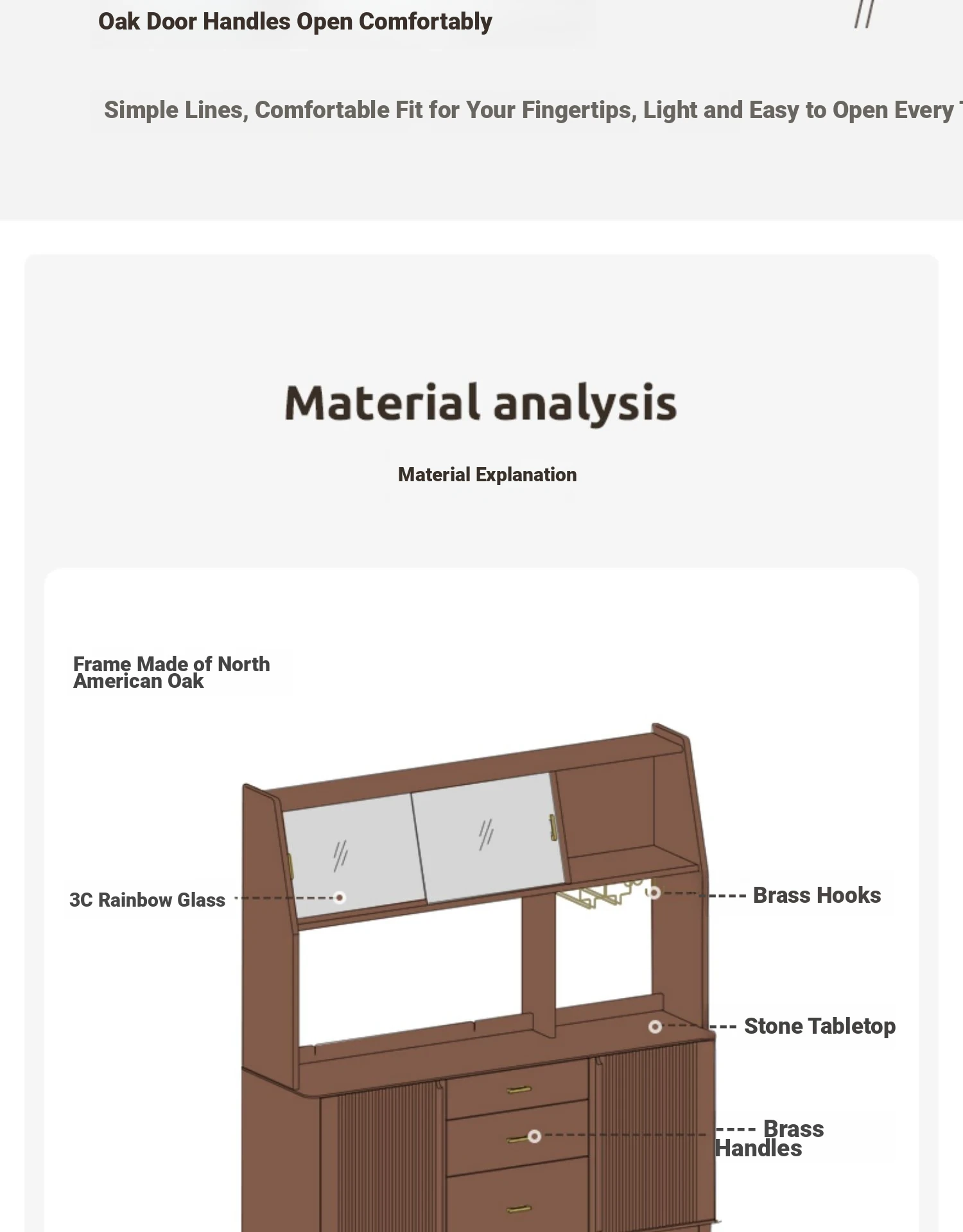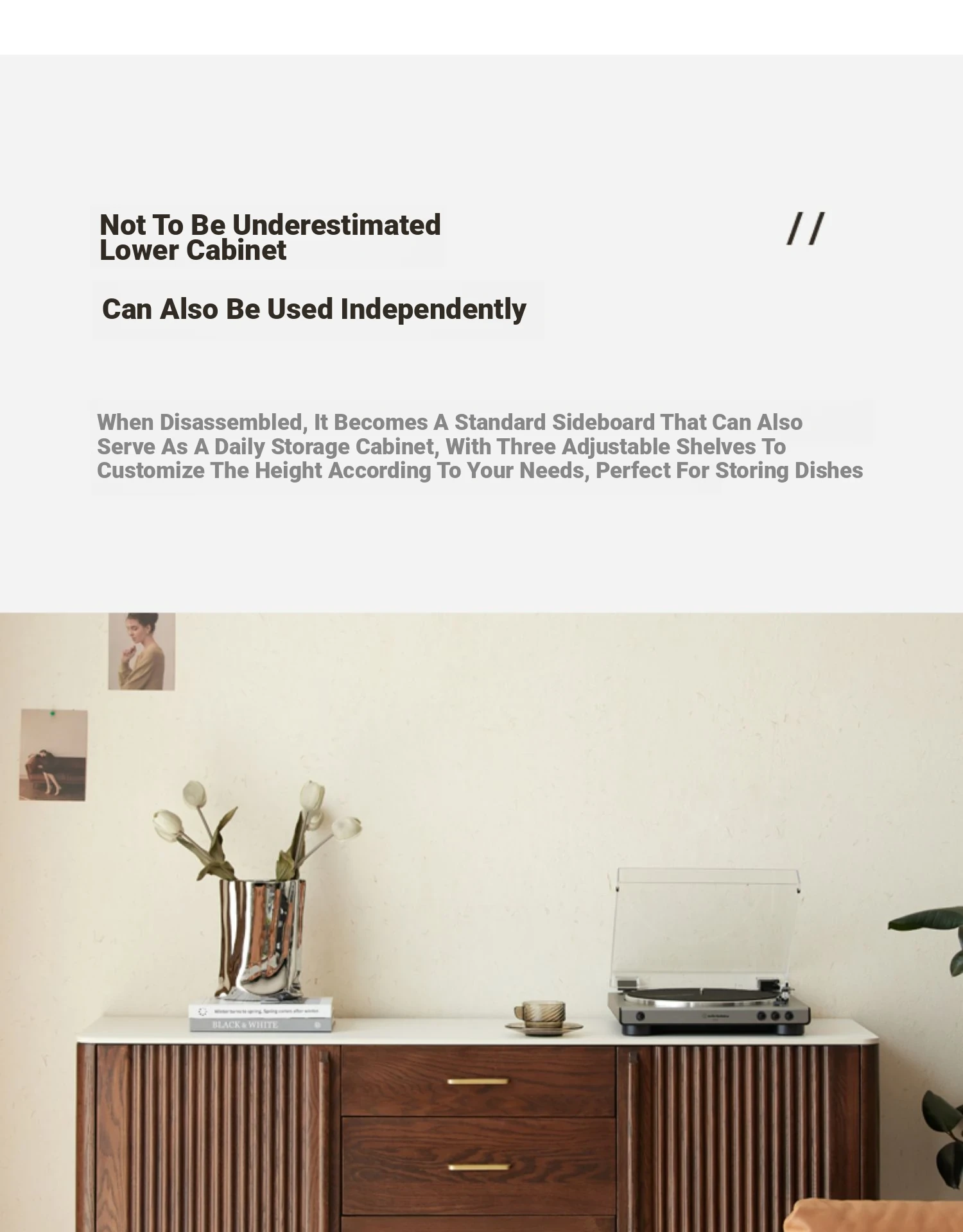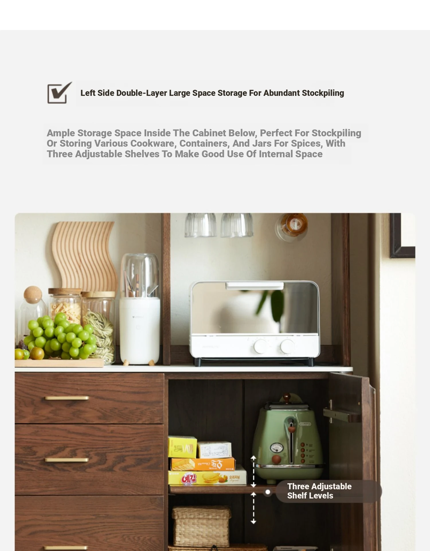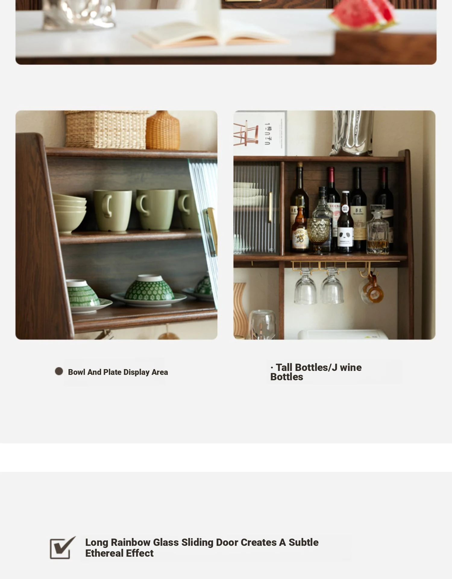 "Mid-Century Solid Wood Rock Slab Sideboard Cabinet - Wall-Mounted High Storage for Small Spaces, Featuring Oak Finish Perfect for Tea and Snack Organization"