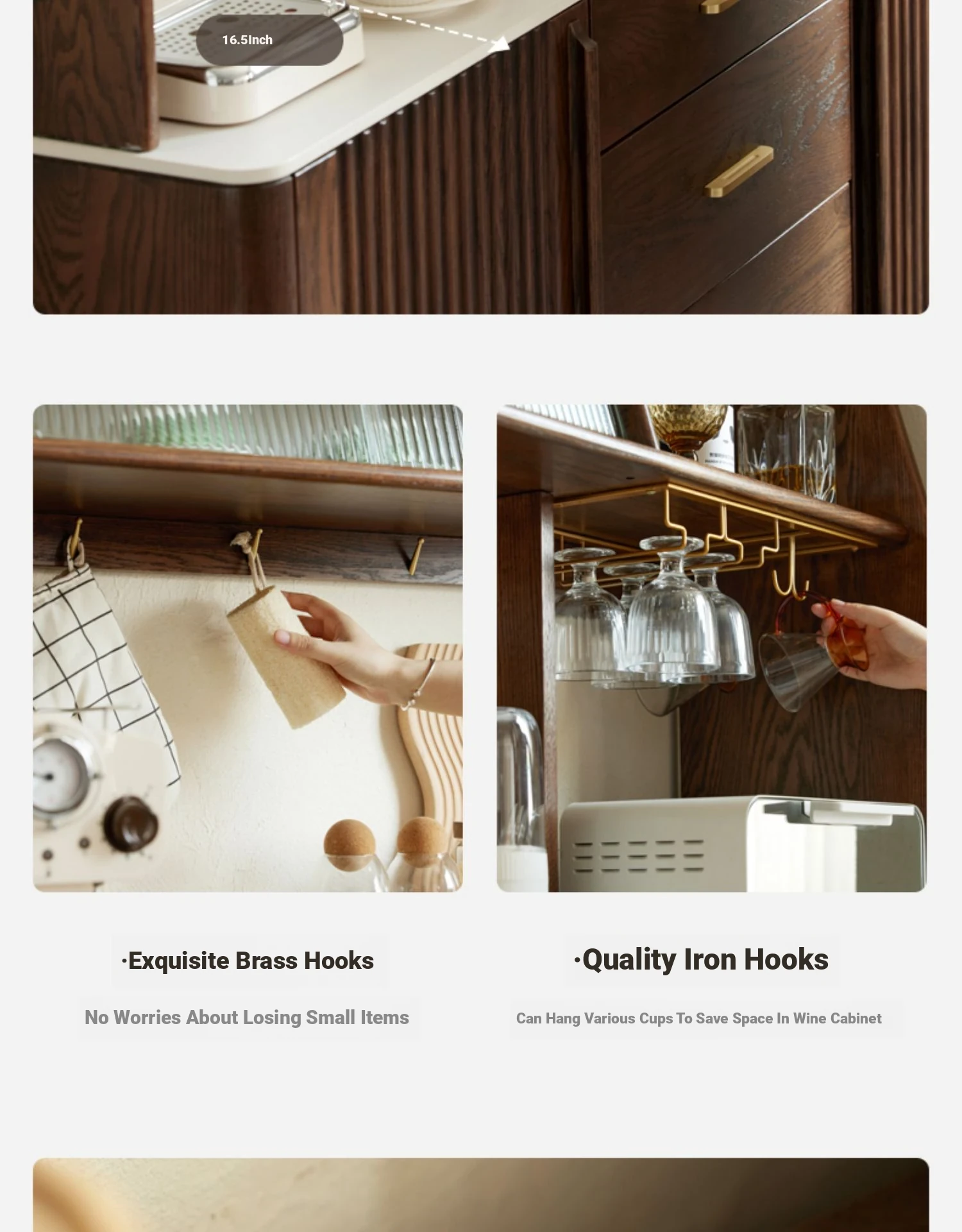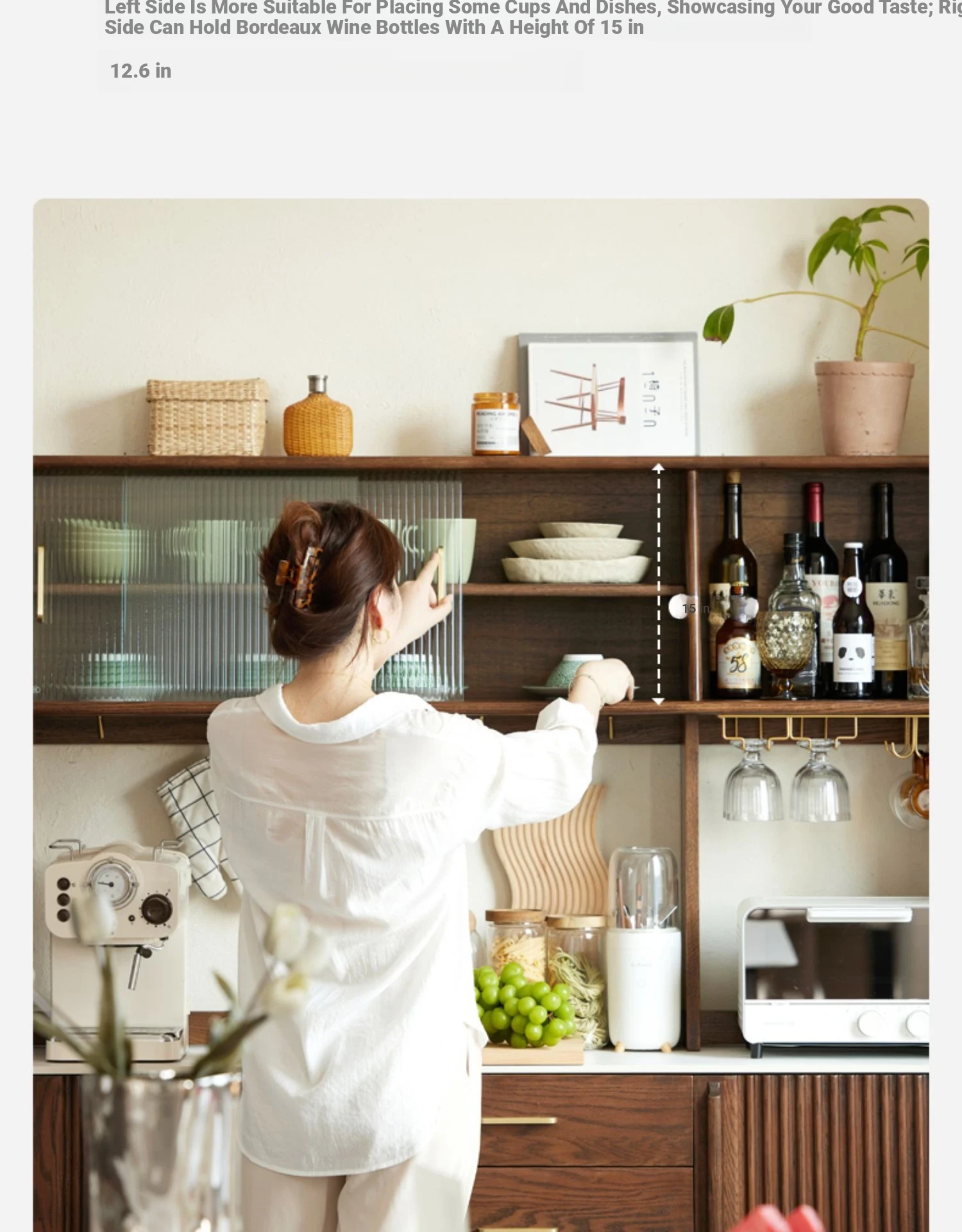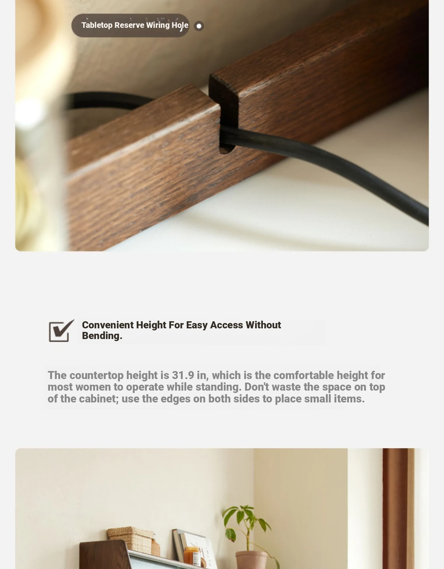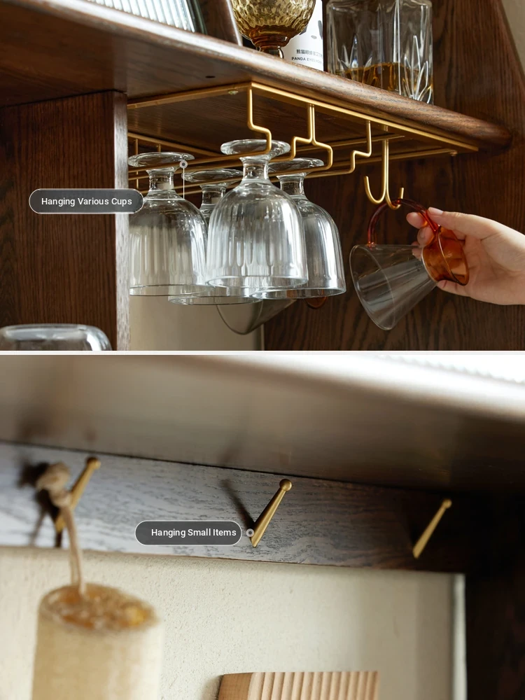 "Mid-Century Solid Wood Rock Slab Sideboard Cabinet - Wall-Mounted High Storage for Small Spaces, Featuring Oak Finish Perfect for Tea and Snack Organization"