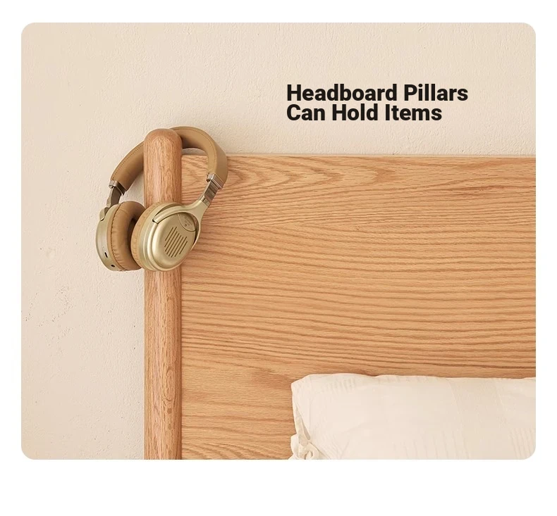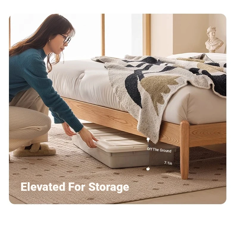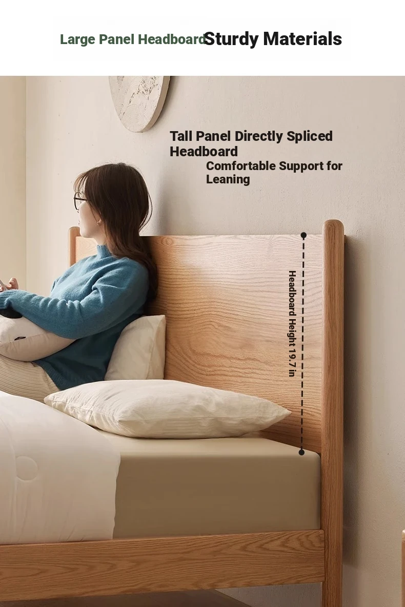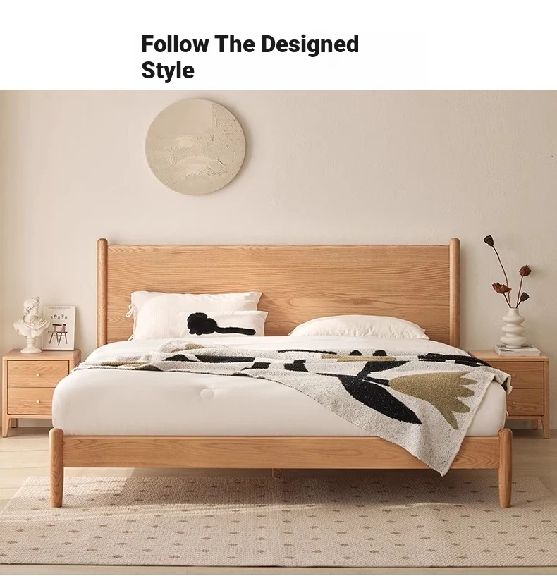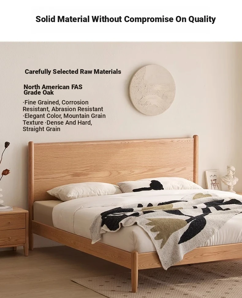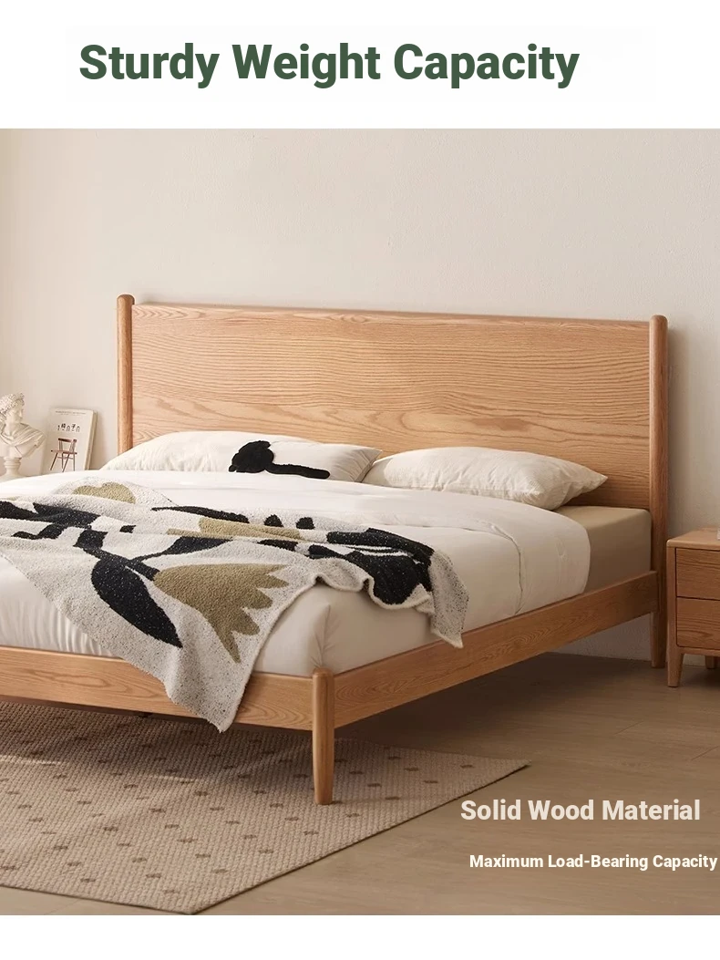 "Modern Minimalist Solid Oak Bed - 1.8m Double Bed with Natural Wood Finish for Master Bedroom - Stylish and Durable Design"
